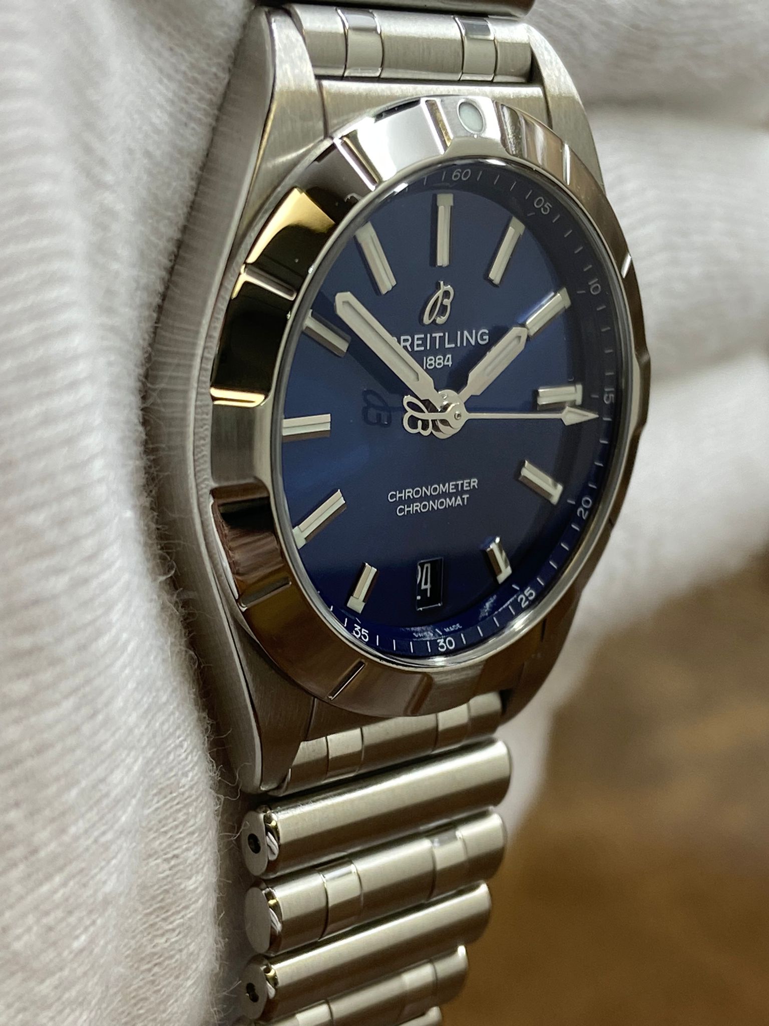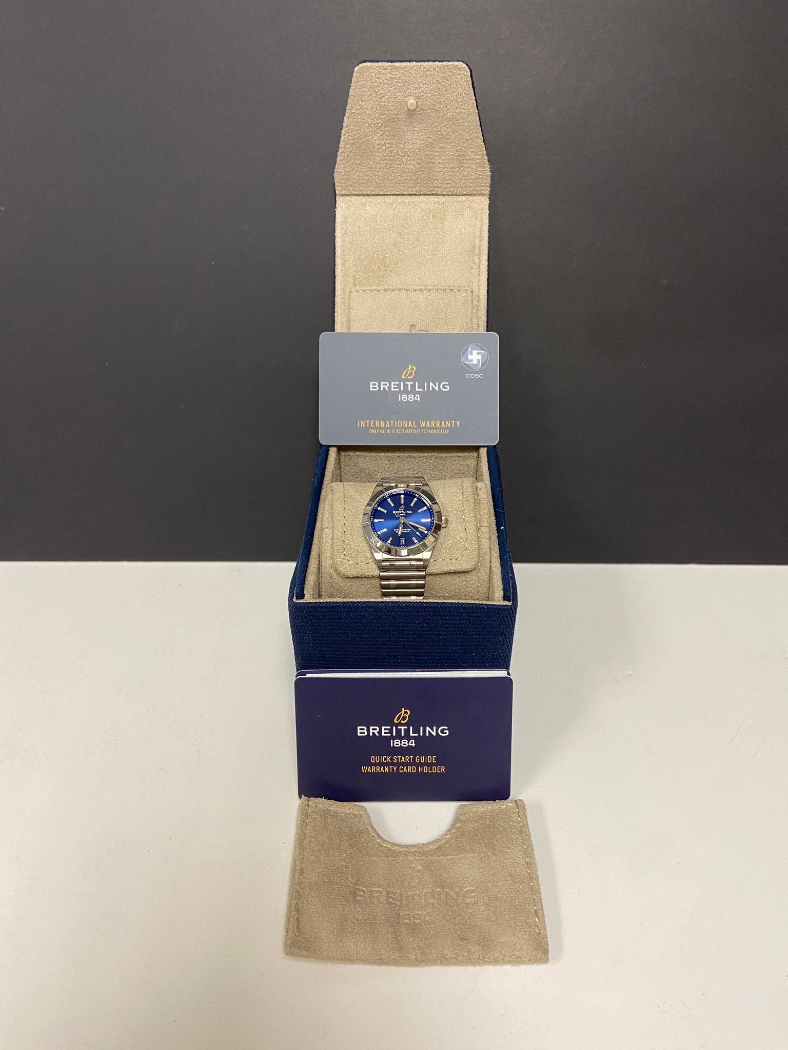 - original Breitling box, booklet and matching warranty card with activated factory warranty dated Aug 2023