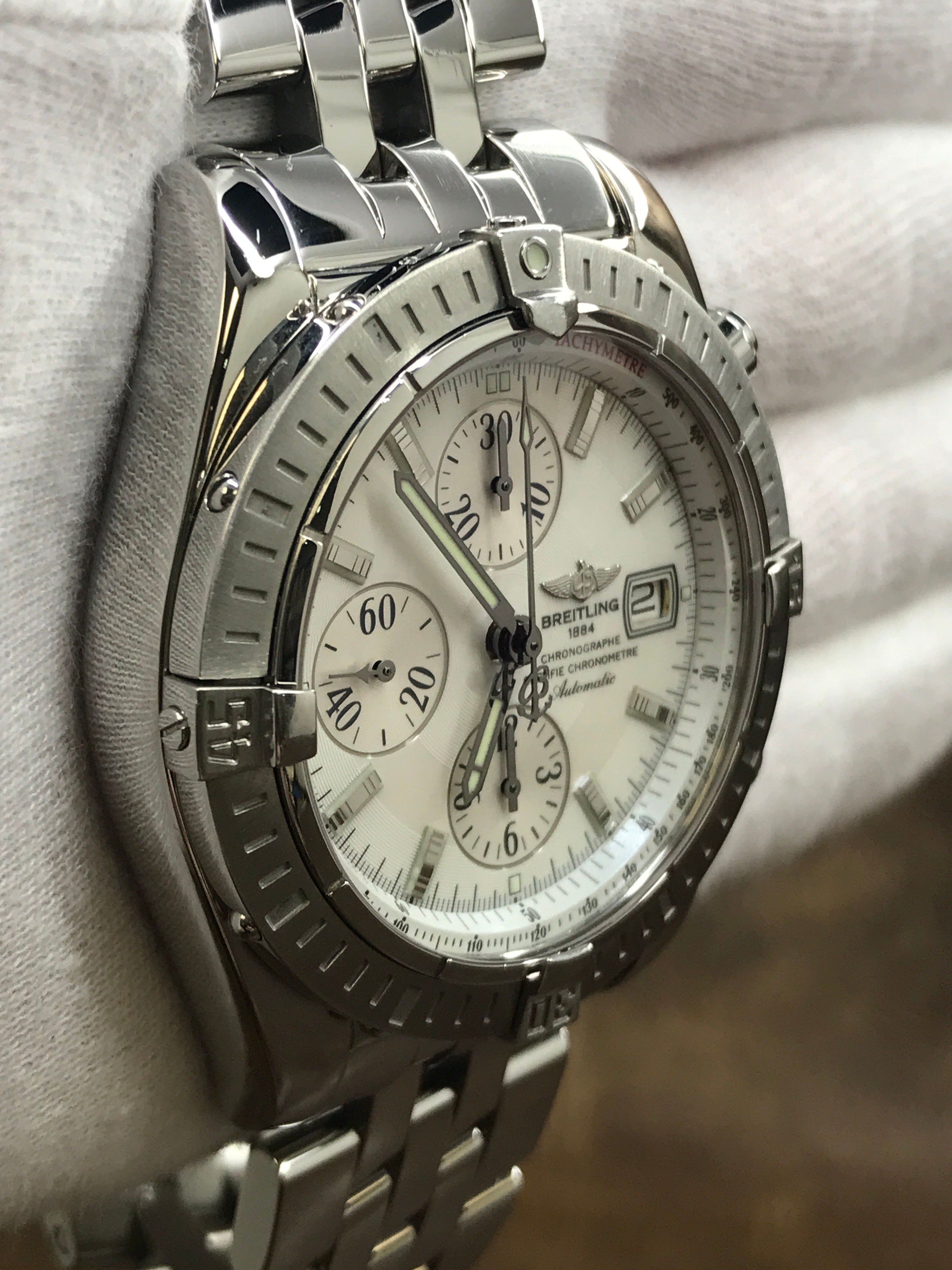 Breitling Chronomat Evolution Chronograph MOP A13356 White Mother of Pearl Dial Automatic Men's Watch