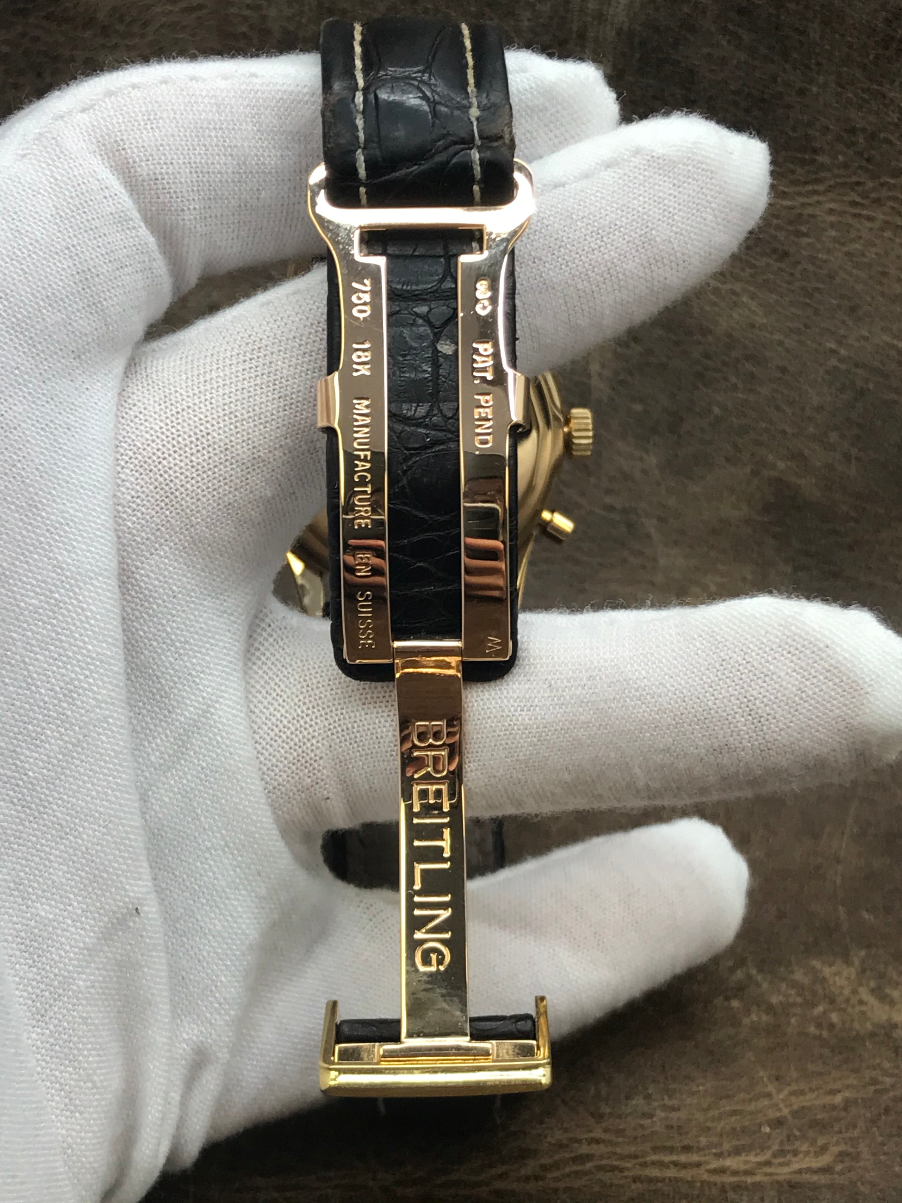 This pre-owned Breitling Navitimer 92 18K Gold K30021 is in excellent condition and comes with: original Breitling box, booklets & matching warranty papers dated 1995. Max wrist size: 8 in.
