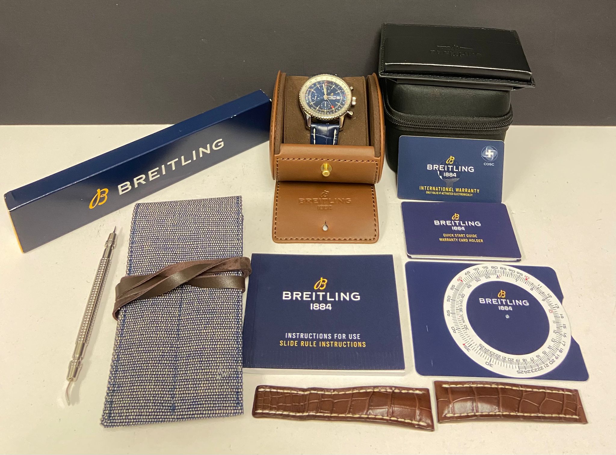 - original Breitling double box, booklets, extra brown leather strap and matching warranty card