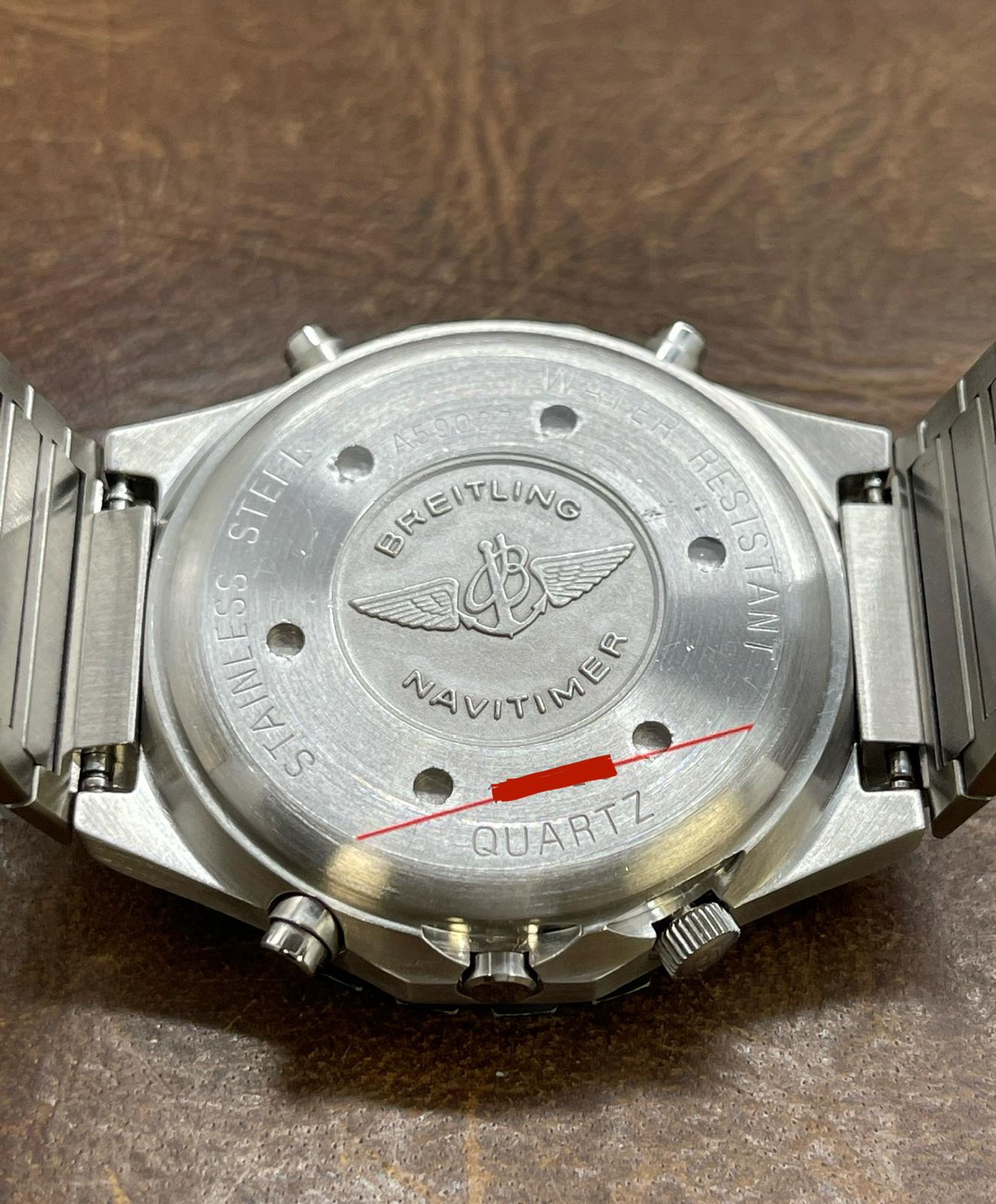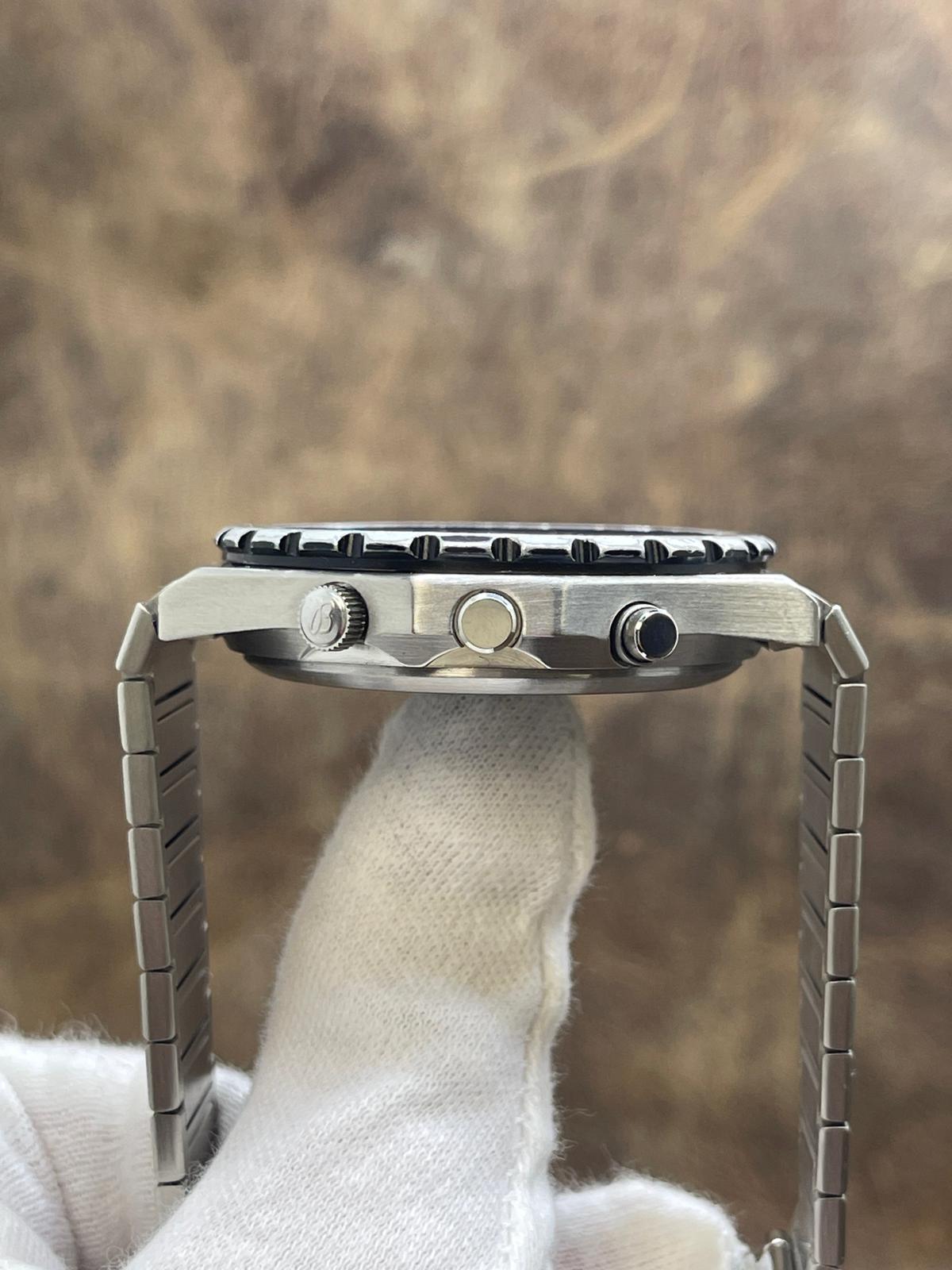 This pre-owned Breitling Navitimer Jupiter Pilot A59027 is in very good condition and comes with: NO box or papers. The bezel has several signs of wear all over - most significant are scratches near 4 & 6 o'clock. The black tachymeter ring is somewhat faded on the edges . Max wrist size: 7.25 in.