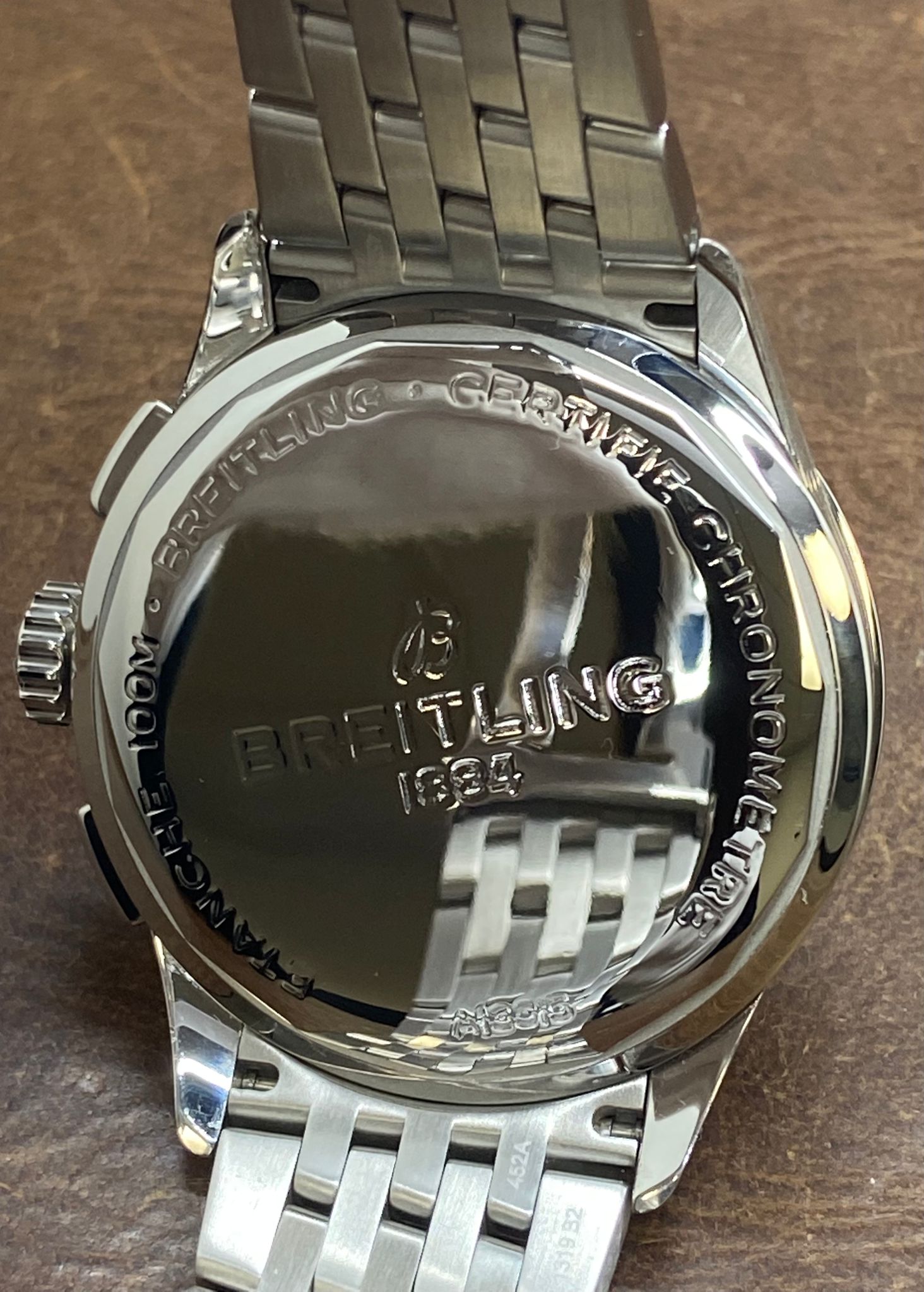 This pre-owned Breitling Premier 42mm A13315351C1A1 is in excellent condition and comes with: original Breitling double box, booklets and matching warranty card dated 2019. The watch is water resistant only - suitable for washing hands but not for taking a shower or swimming. Max wrist size: 8 in.