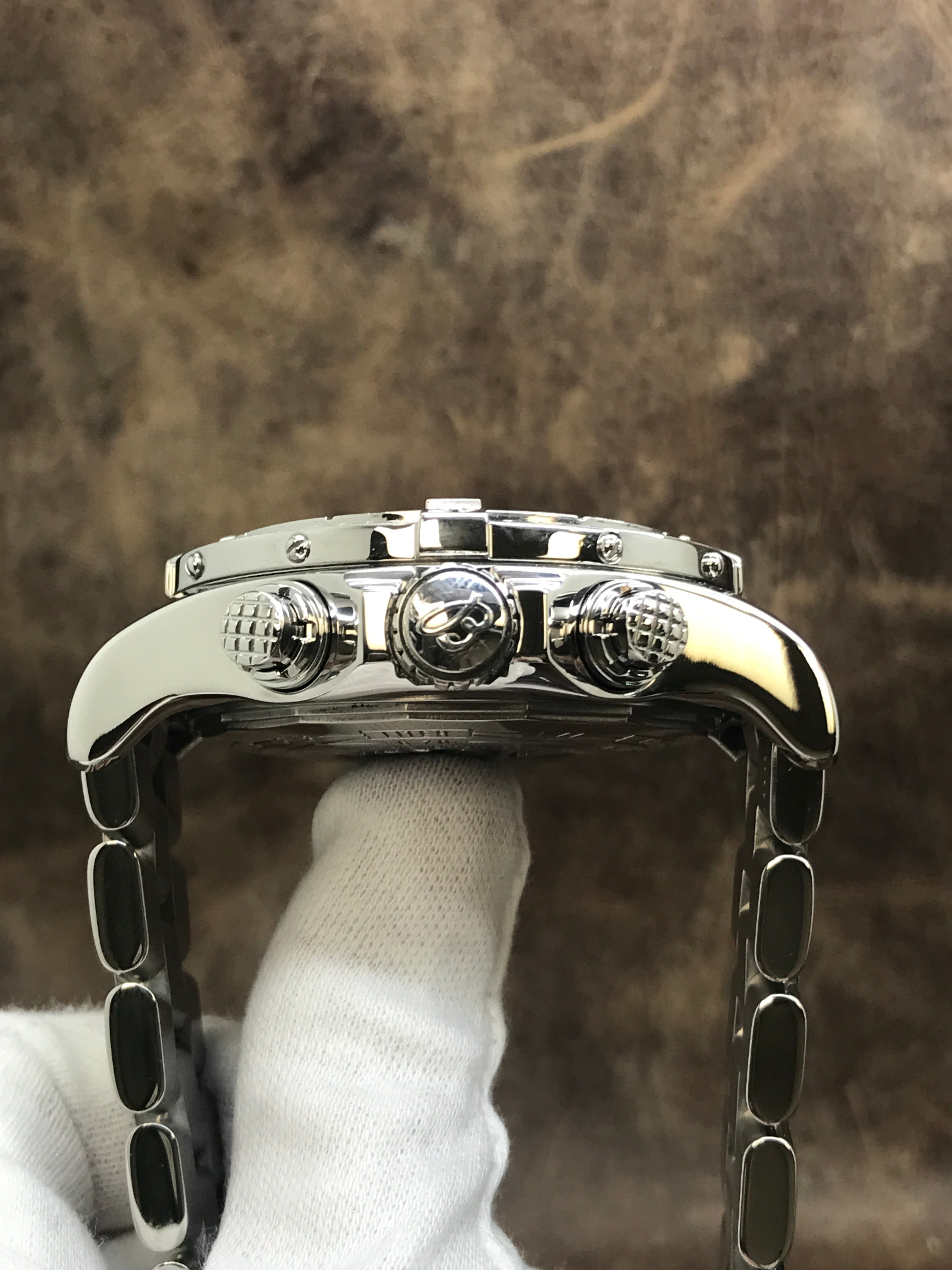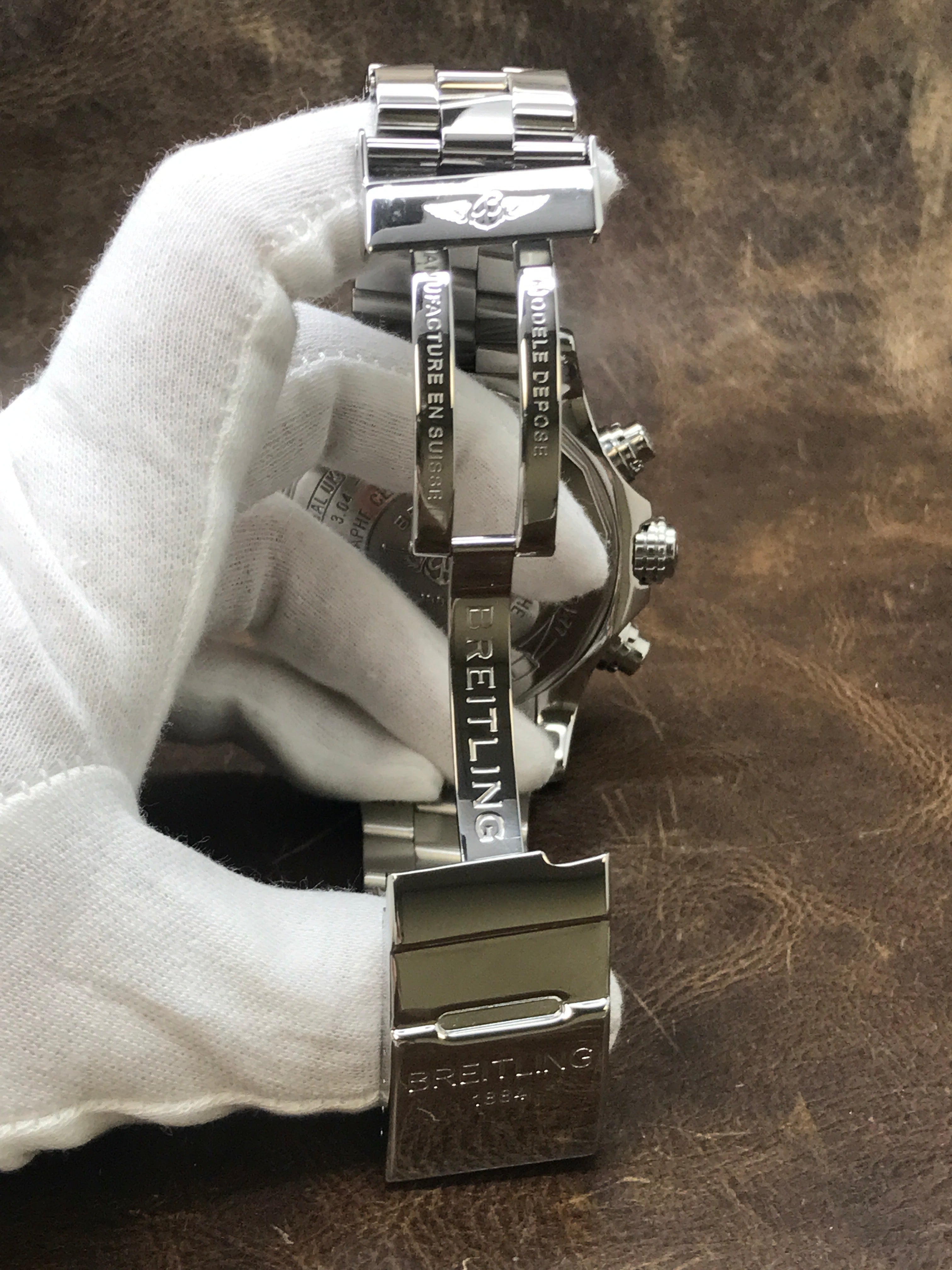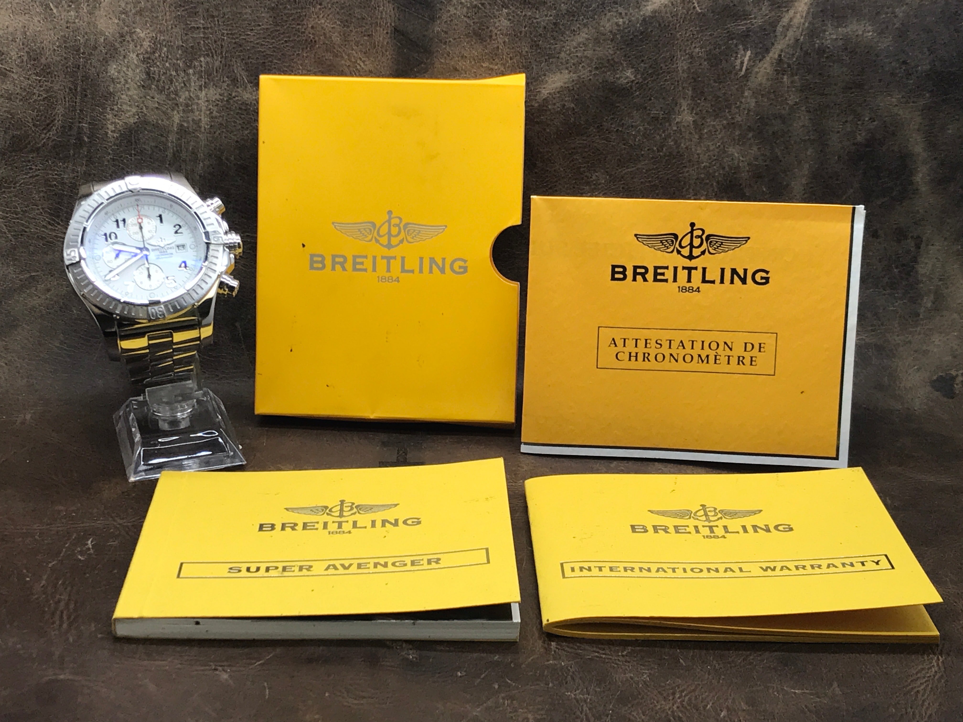 This pre-owned Breitling Super Avenger A13370 is in mint condition and comes with: original Breitling booklets and matching warranty papers dated 2007. Max wrist size: 7.75 in.