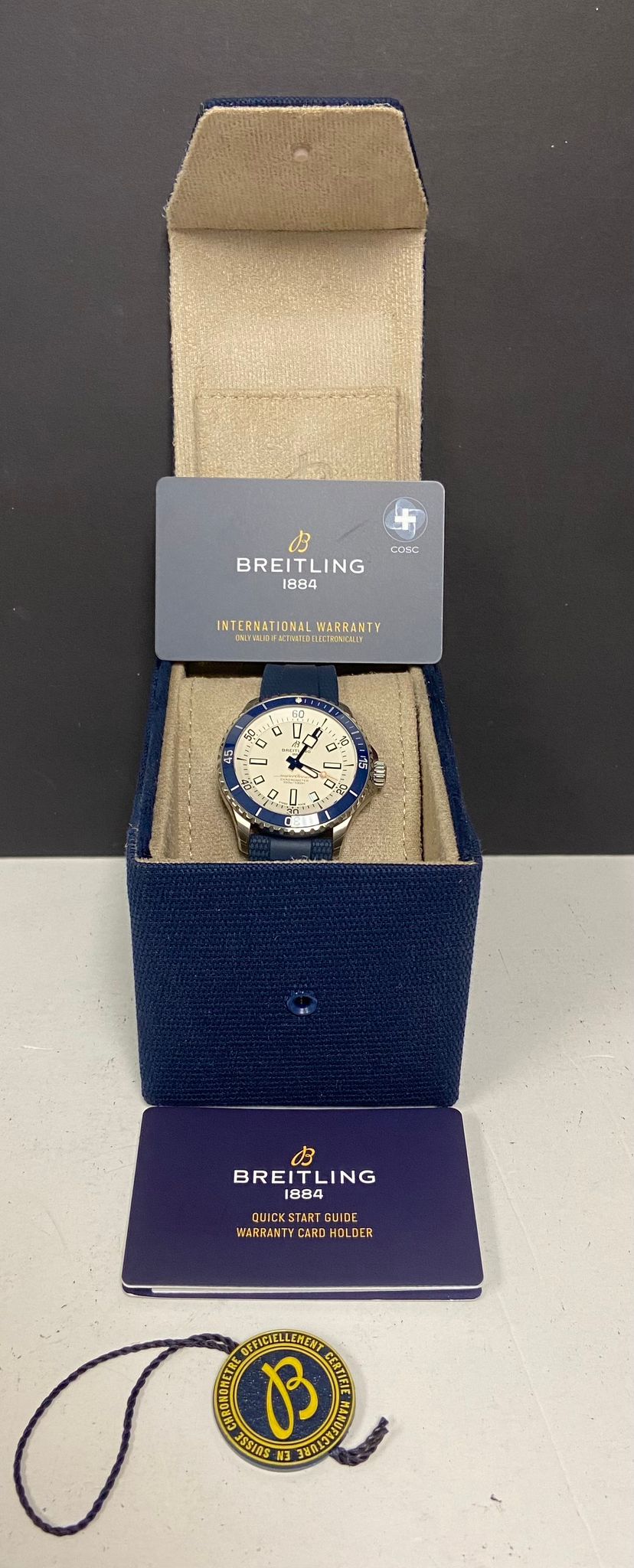 - original Breitling box, tag, booklet and matching warranty card with valid factory warranty