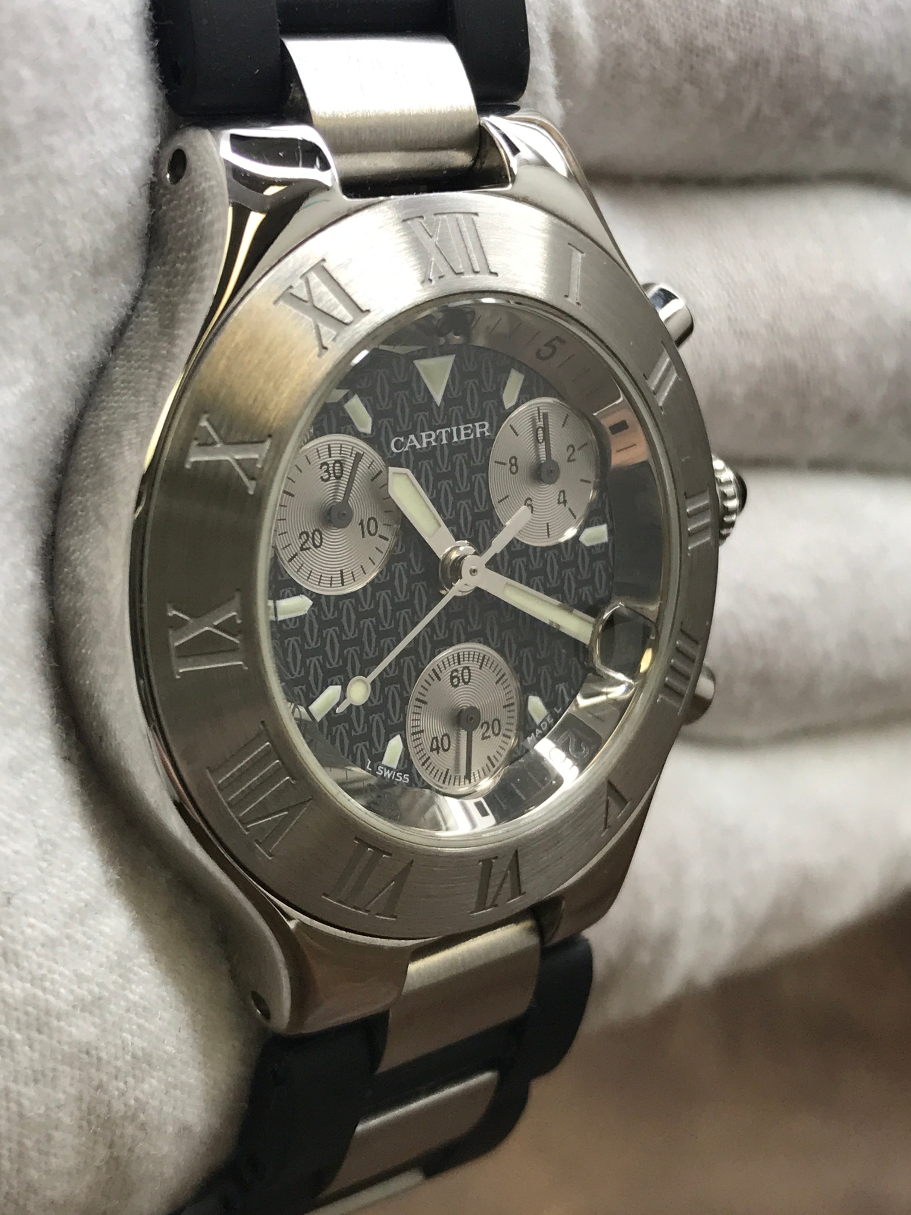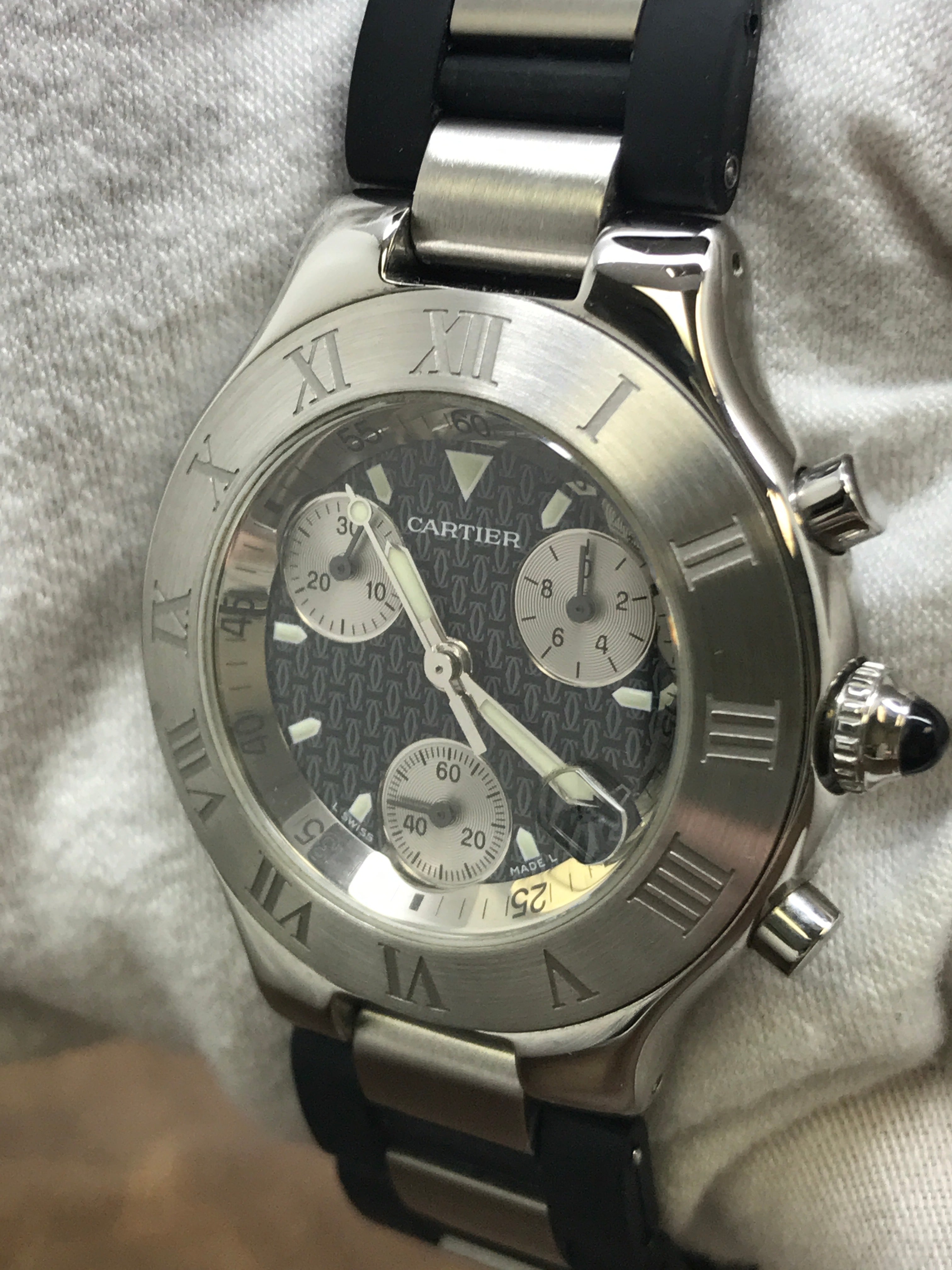 This pre-owned Cartier Chronoscaph 21 2424 is in excellent condition and comes with: NO box or papers. Max wrist size: 7.75 in.