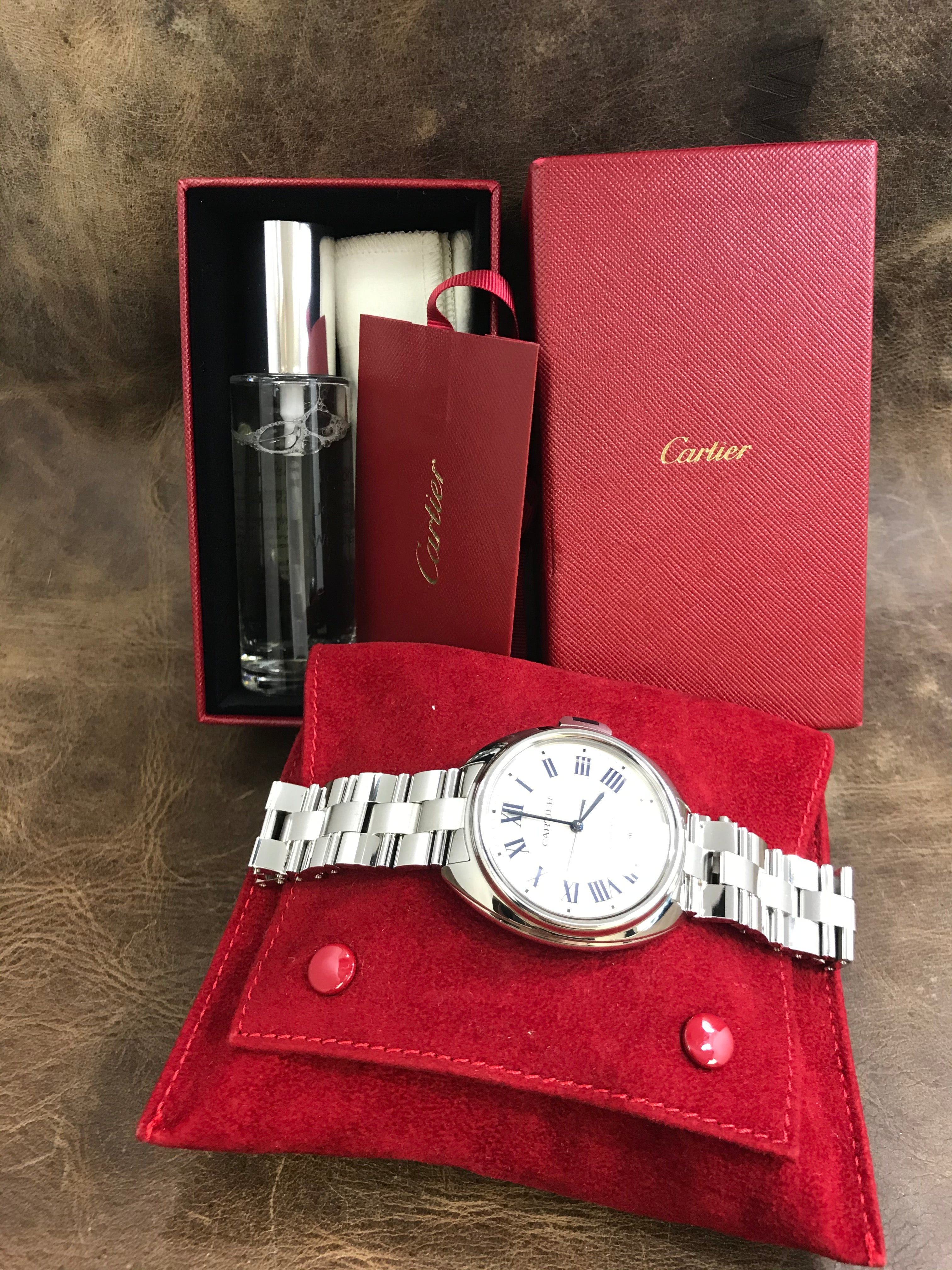 This pre-owned Cartier Cle de Cartier WSCL0007 is in mint condition and comes with: original Cartier service box & pouch. Max wrist size: 7.5 in.