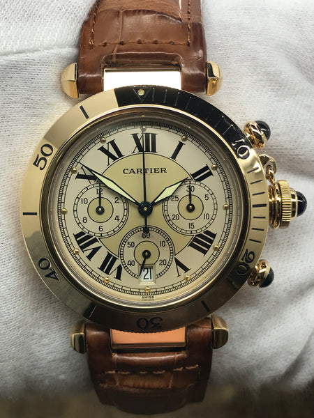 Cartier Pasha Chronograph 18K Gold 2111 Cream Dial Automatic Men's Watch