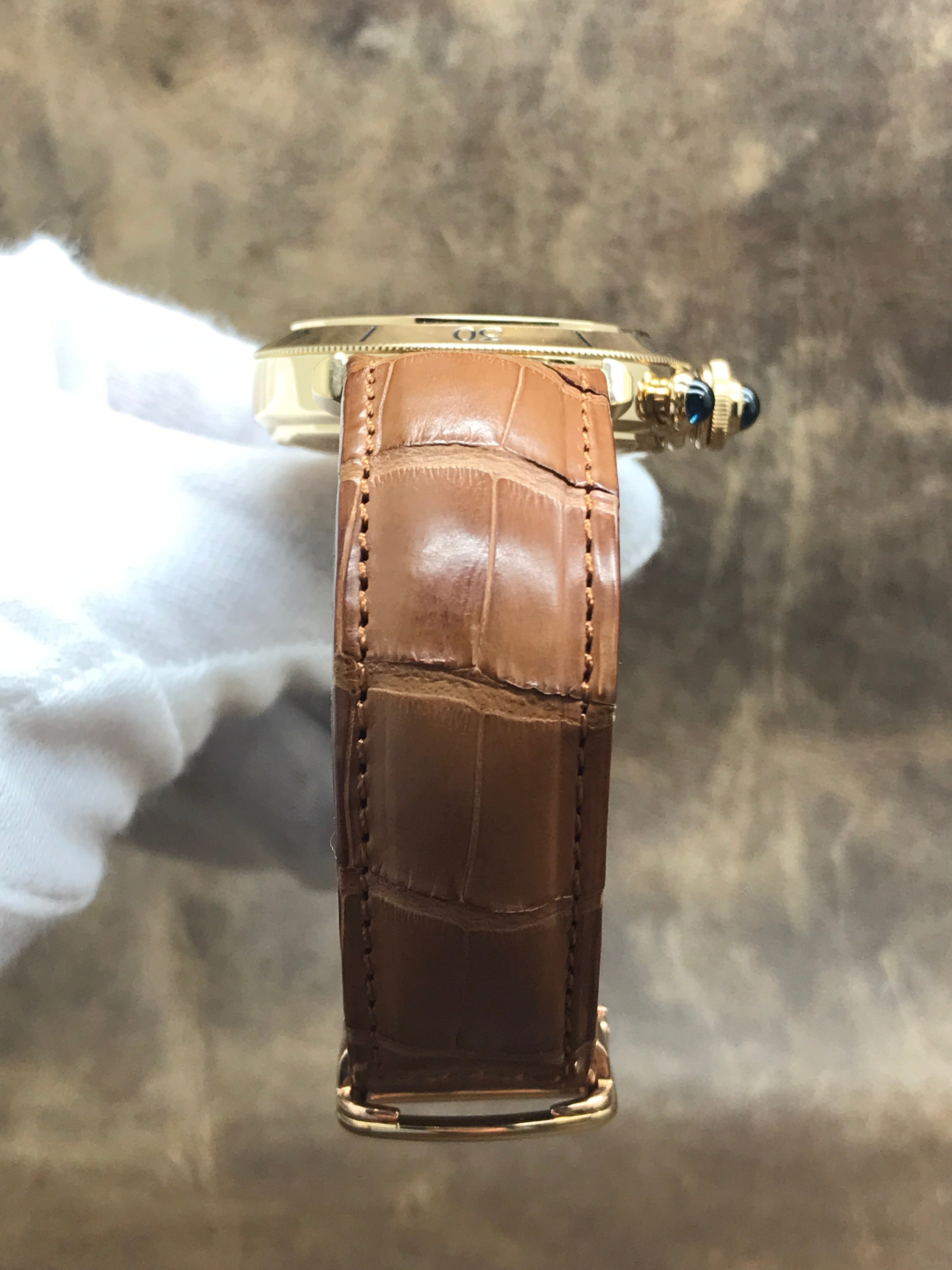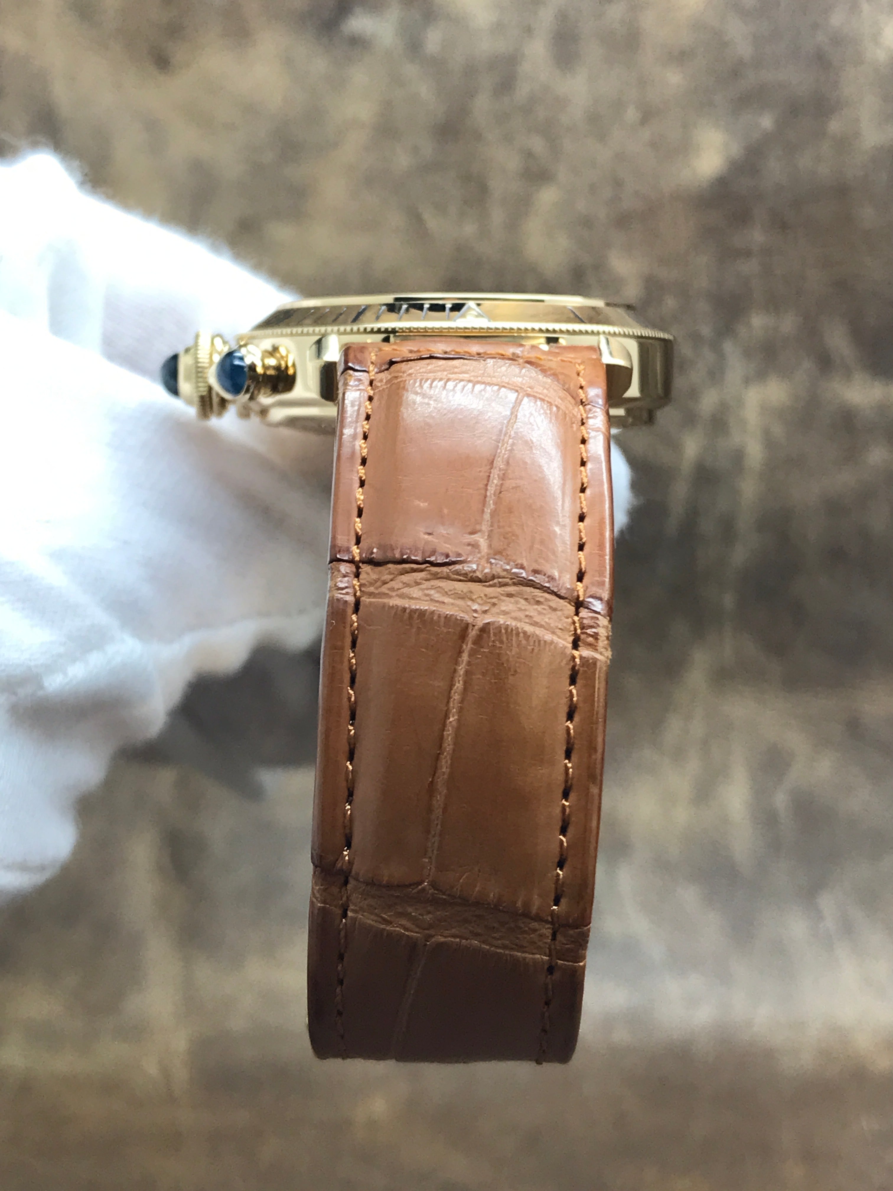 This pre-owned Cartier Pasha Chronograph 18K Gold 2111 is in excellent condition and comes with: original Cartier double box, booklets and papers. Max wrist size: 7.5 in.