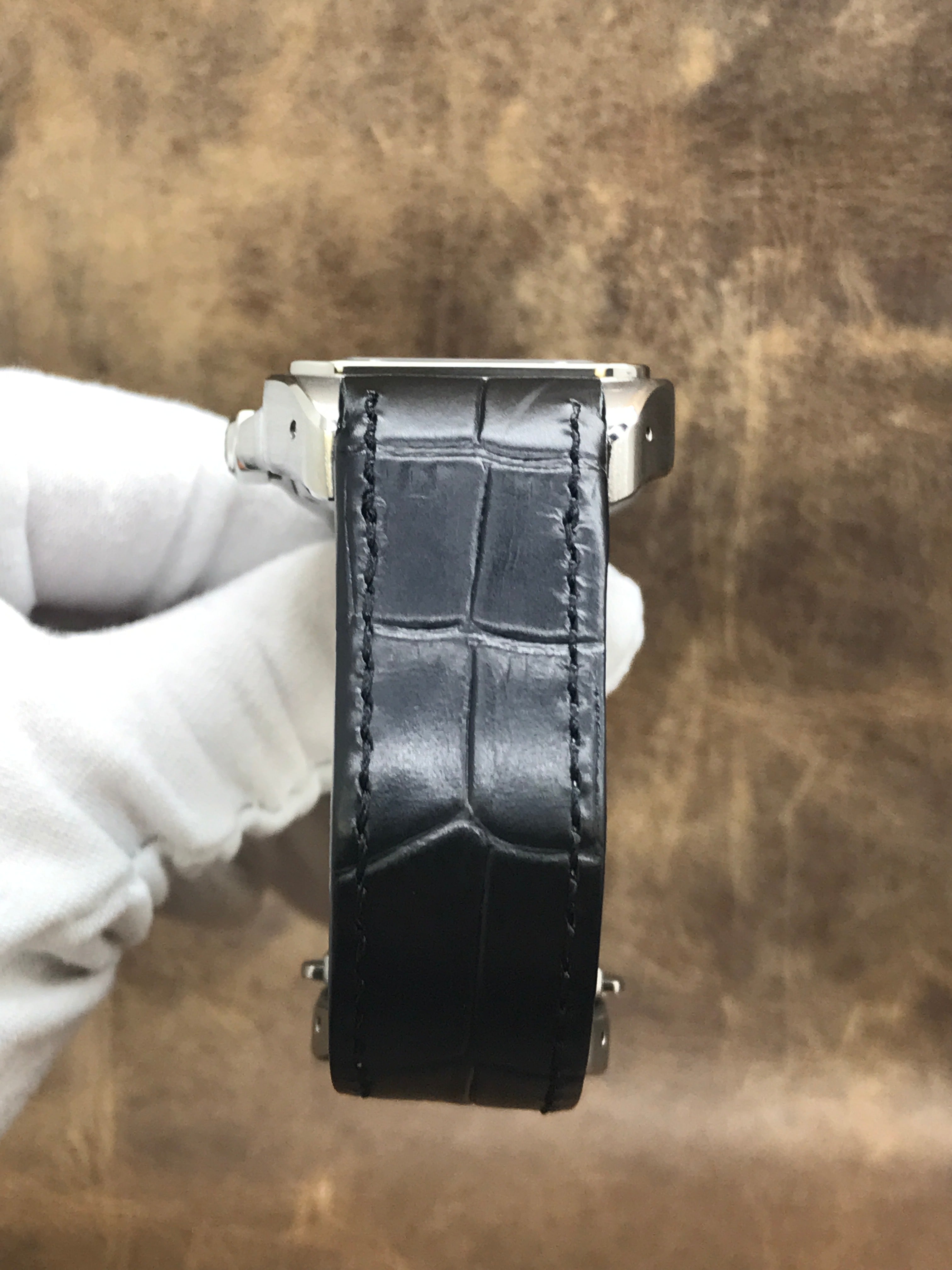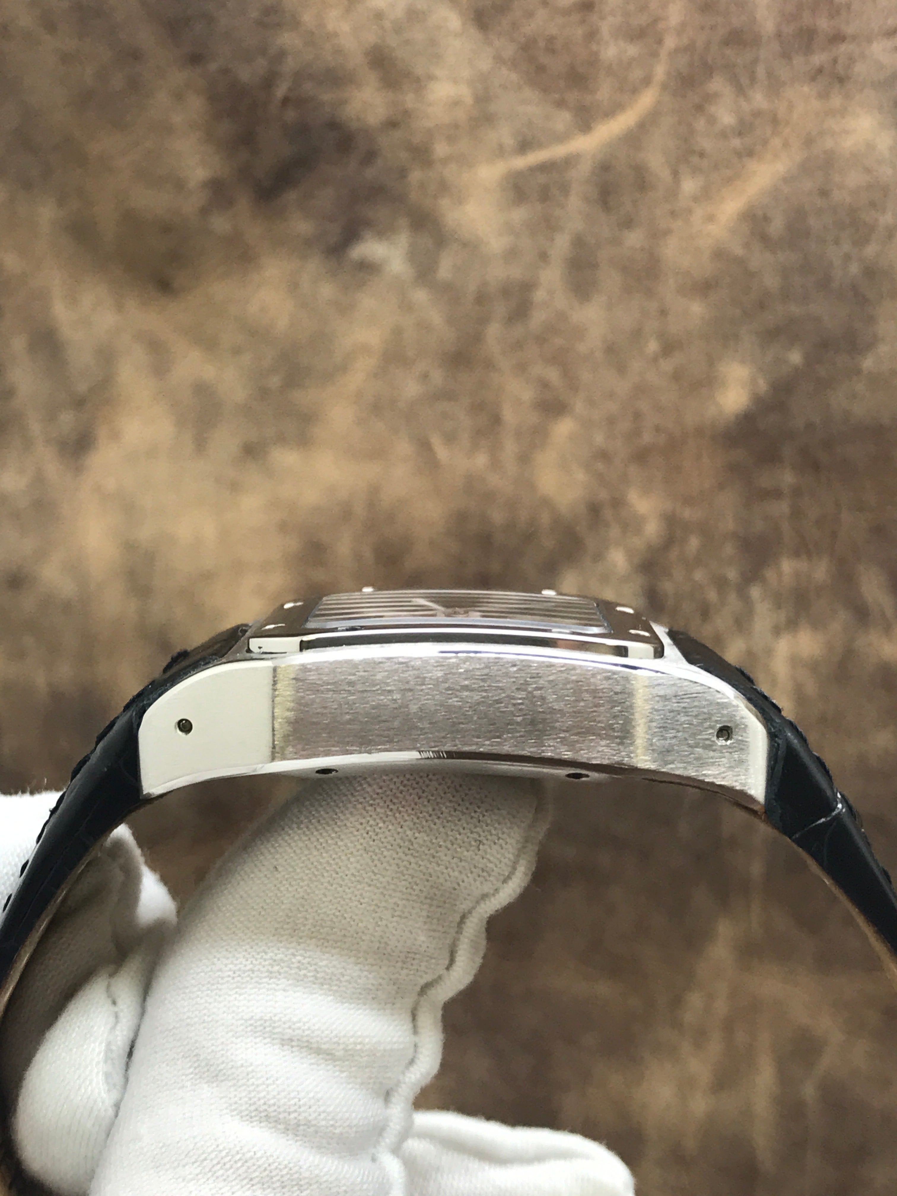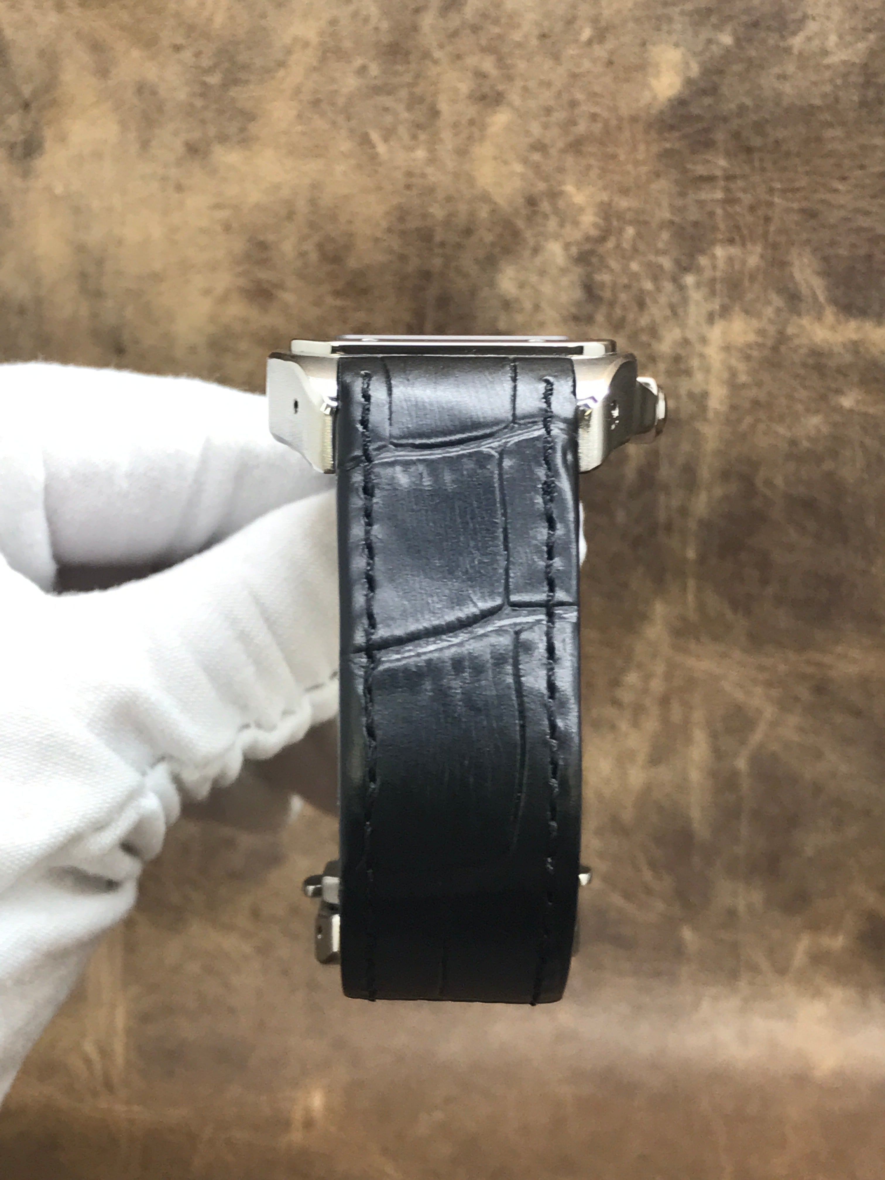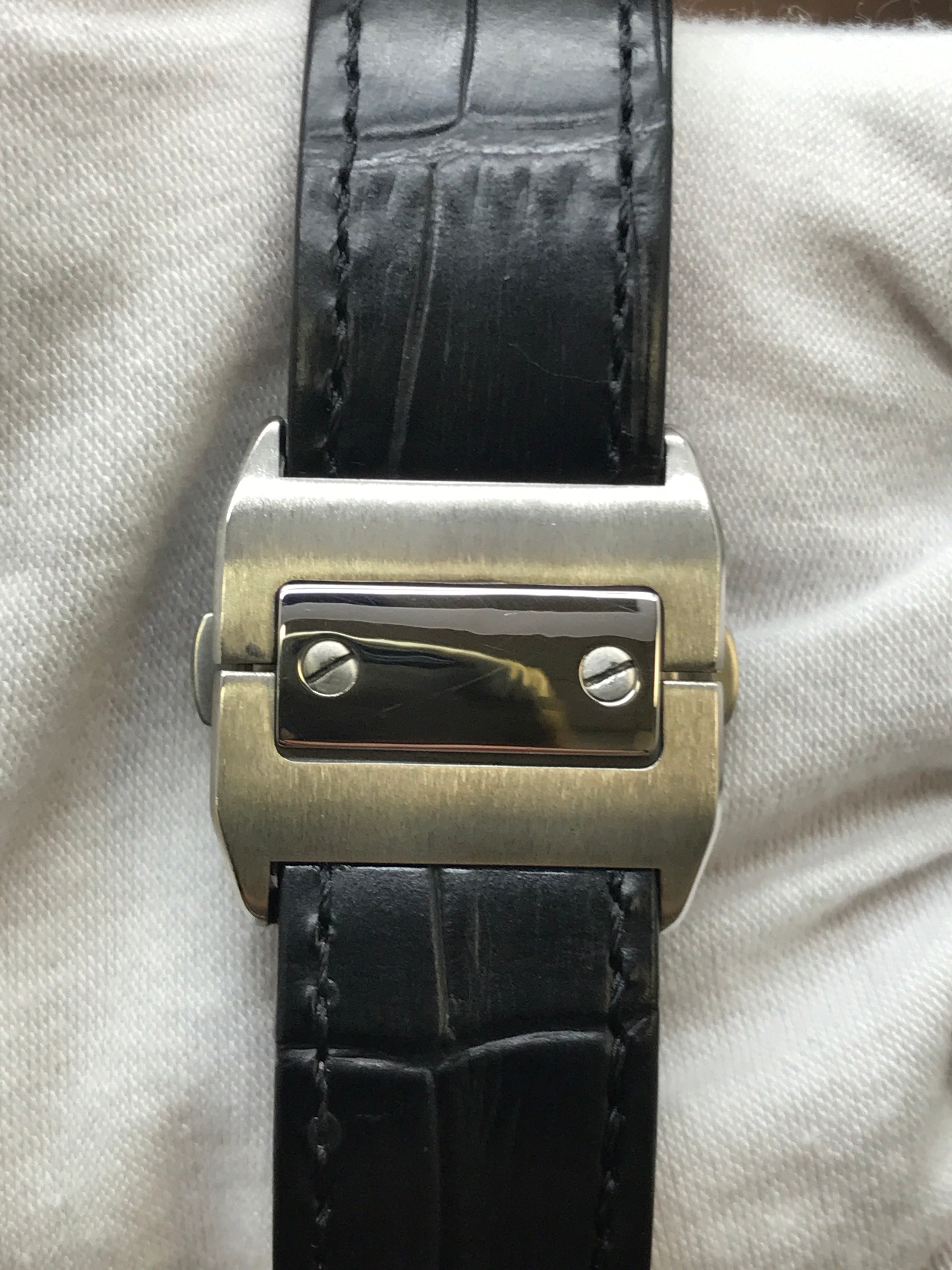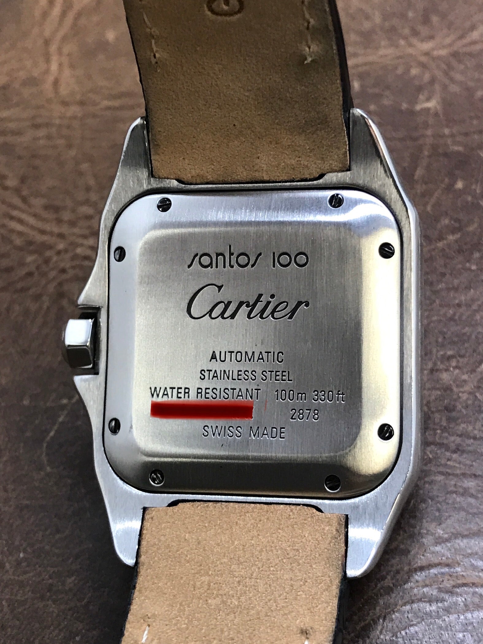 This pre-owned Cartier Santos 100 Midsize 2878 is in excellent condition and comes with: NO box or papers. The watch is NOT waterproof. Comes with a custom leather strap with original steel deployment buckle. Max wrist size: 6.5 in.