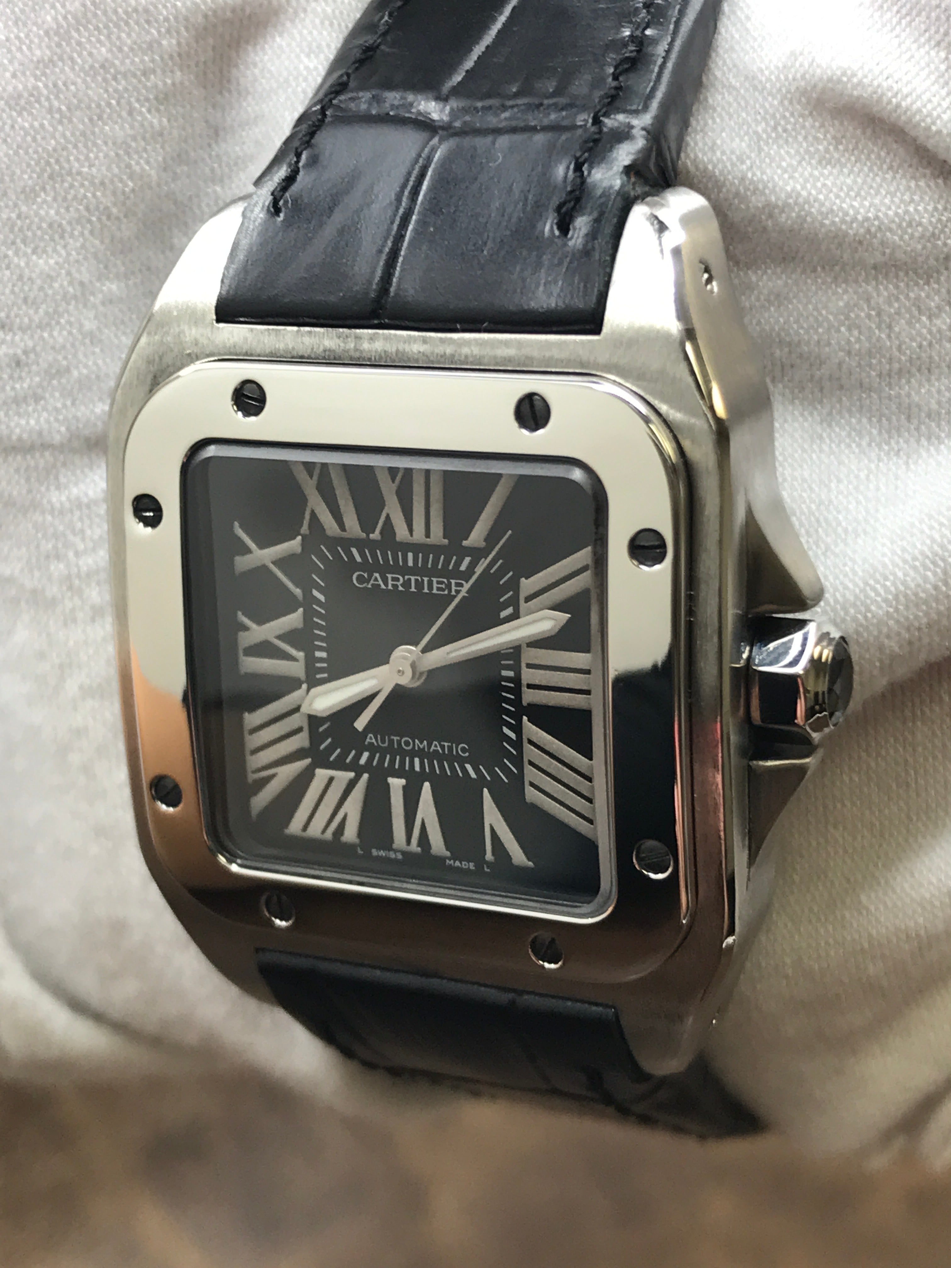 Cartier Santos 100 Midsize 2878 Black Dial Automatic Watch