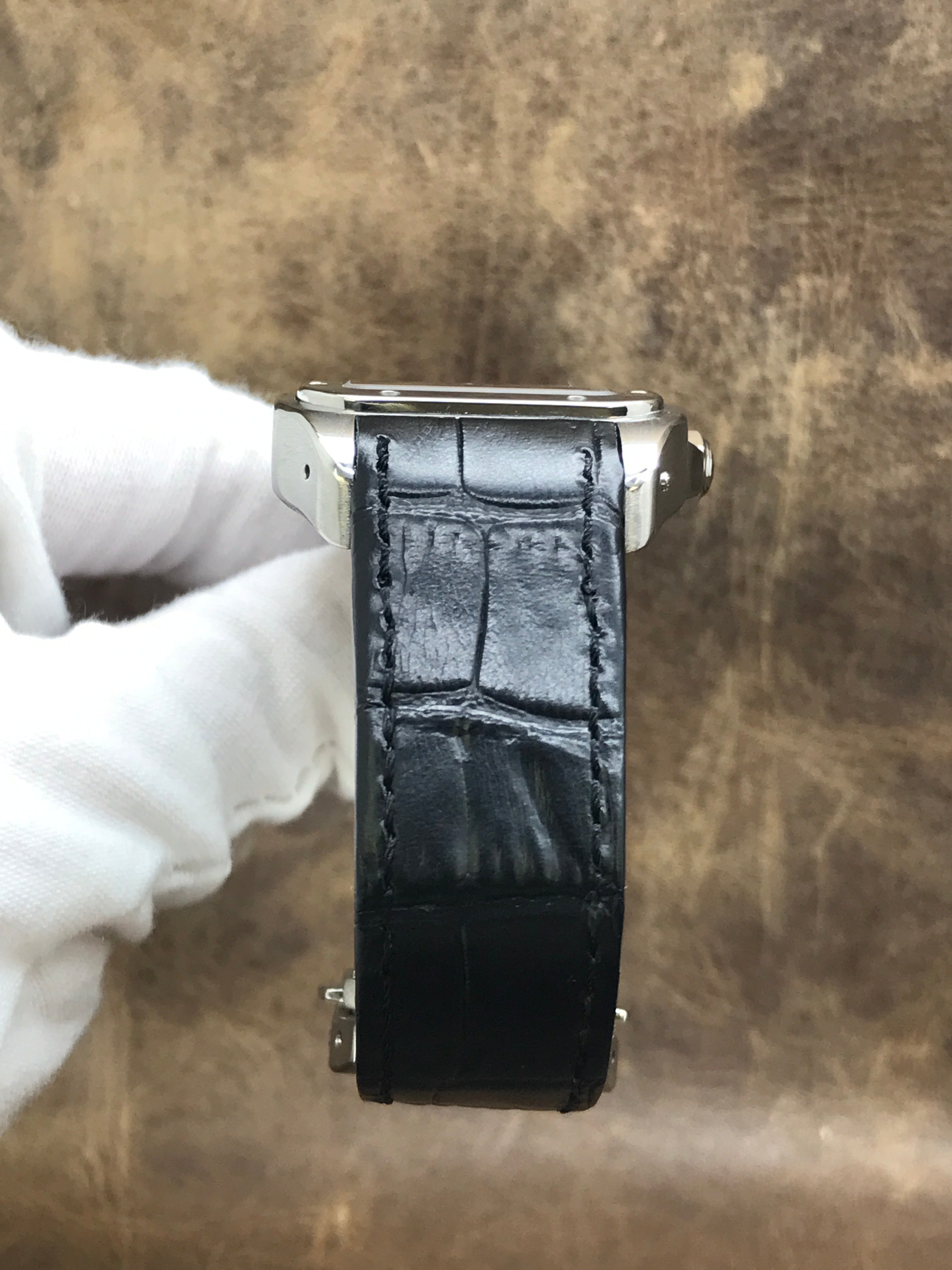 This pre-owned Cartier Santos 100 Midsize 2878 is in excellent condition and comes with: NO box or papers. The watch comes on an custom leather strap. Max wrist size: 6.5 in.