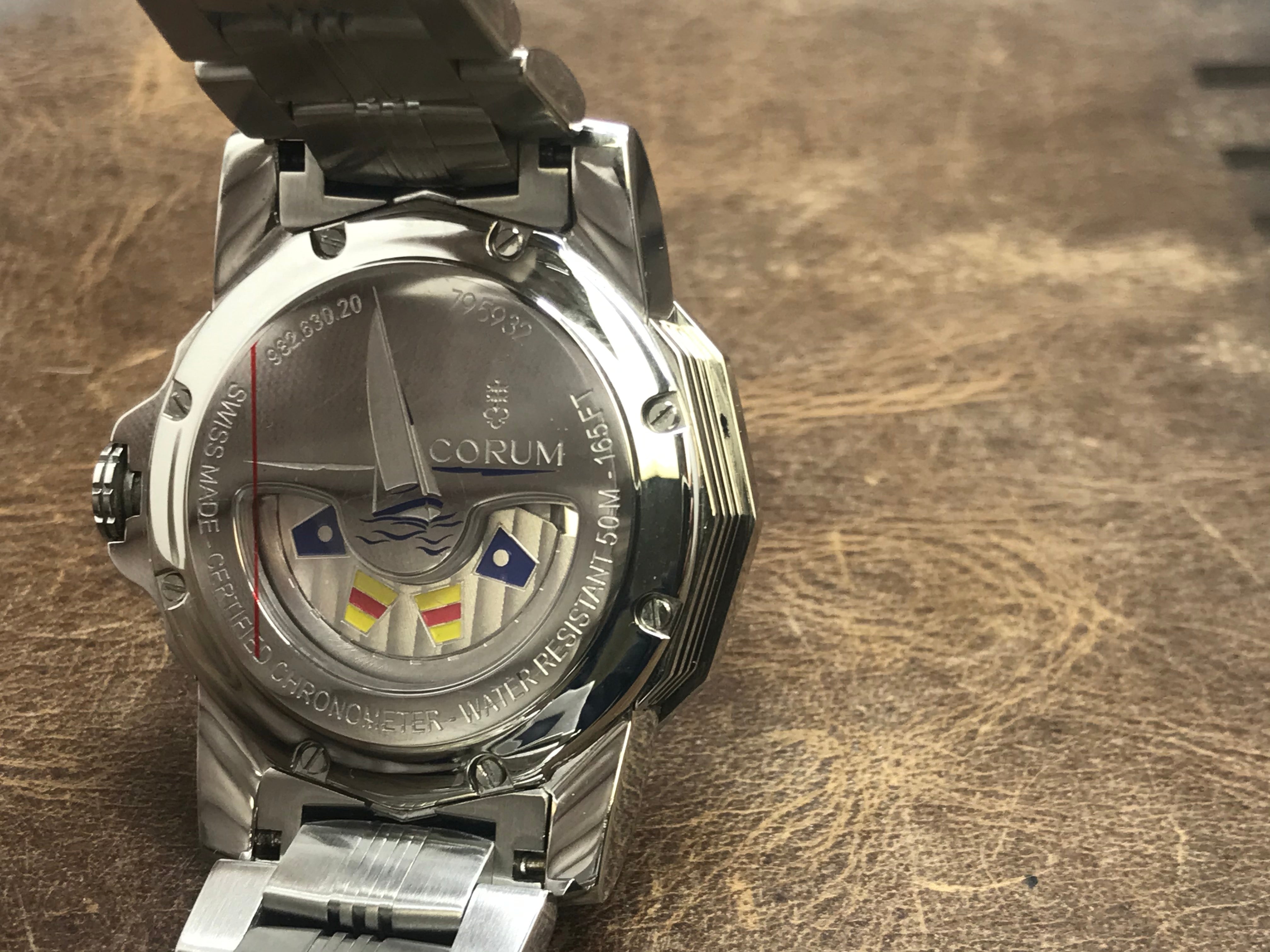 This pre-owned Corum Admirals Cup 982.630.20 is in excellent condition and comes with: original Corum double box. This watch is NOT water resistant. Max wrist size: 7 in.
