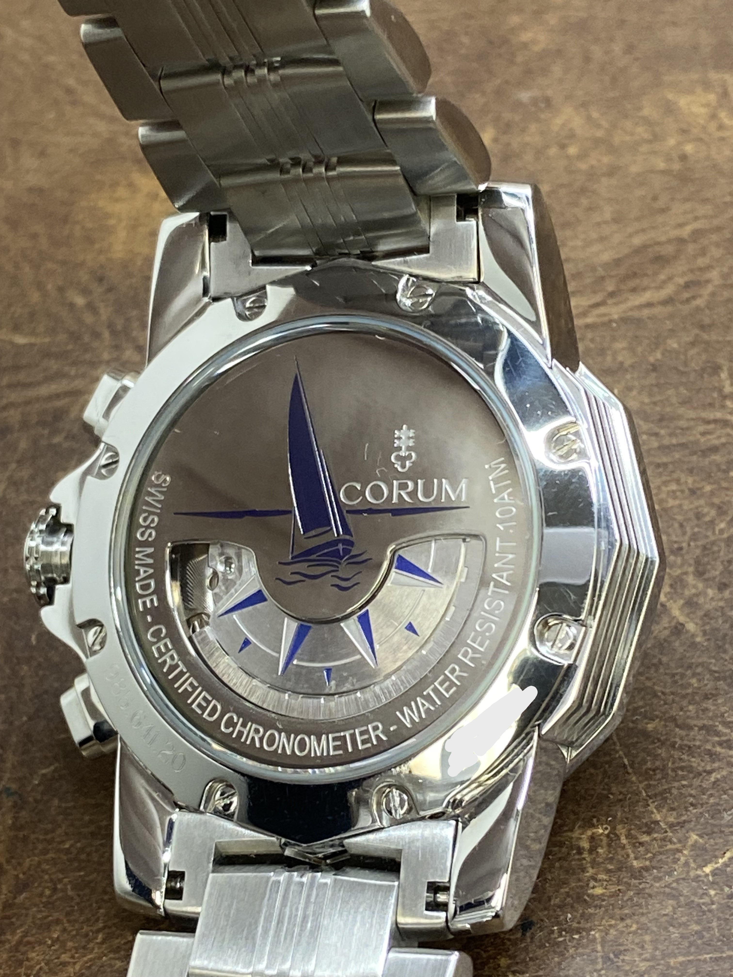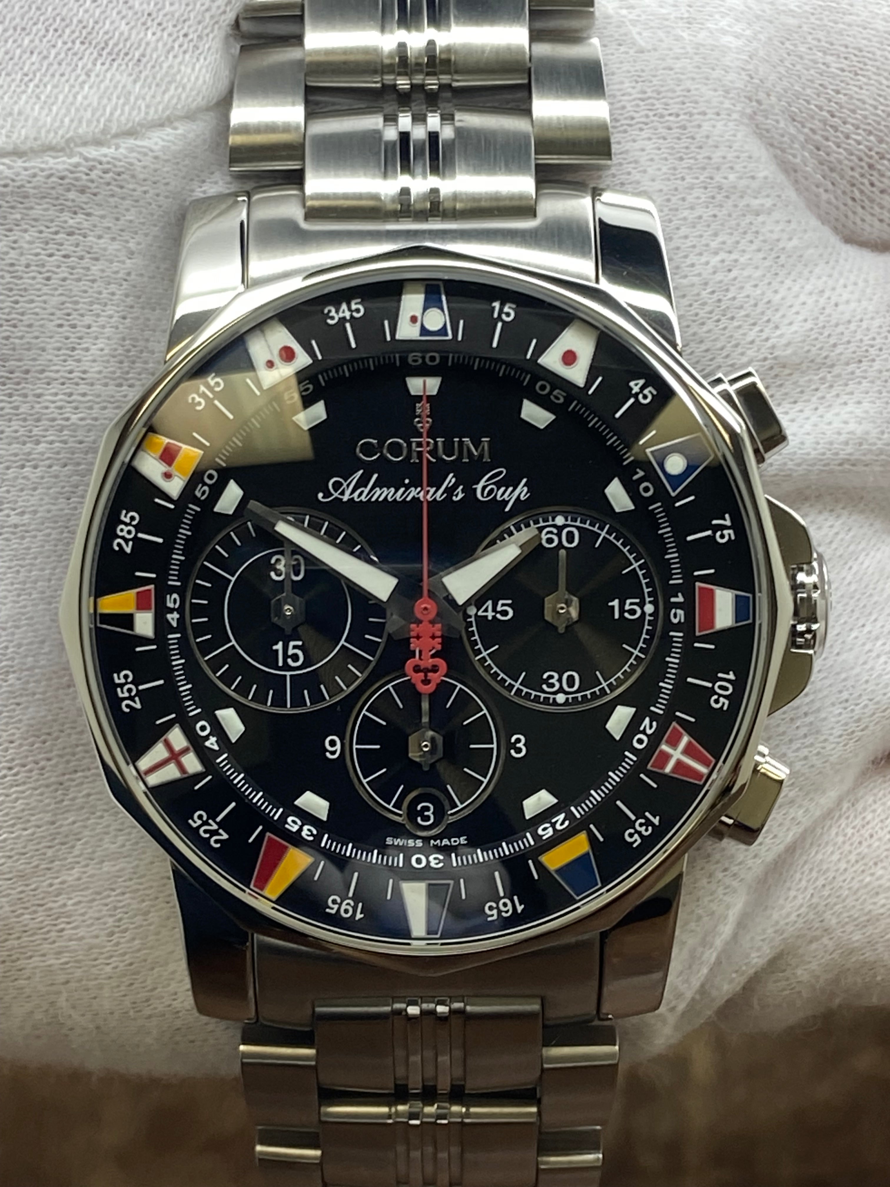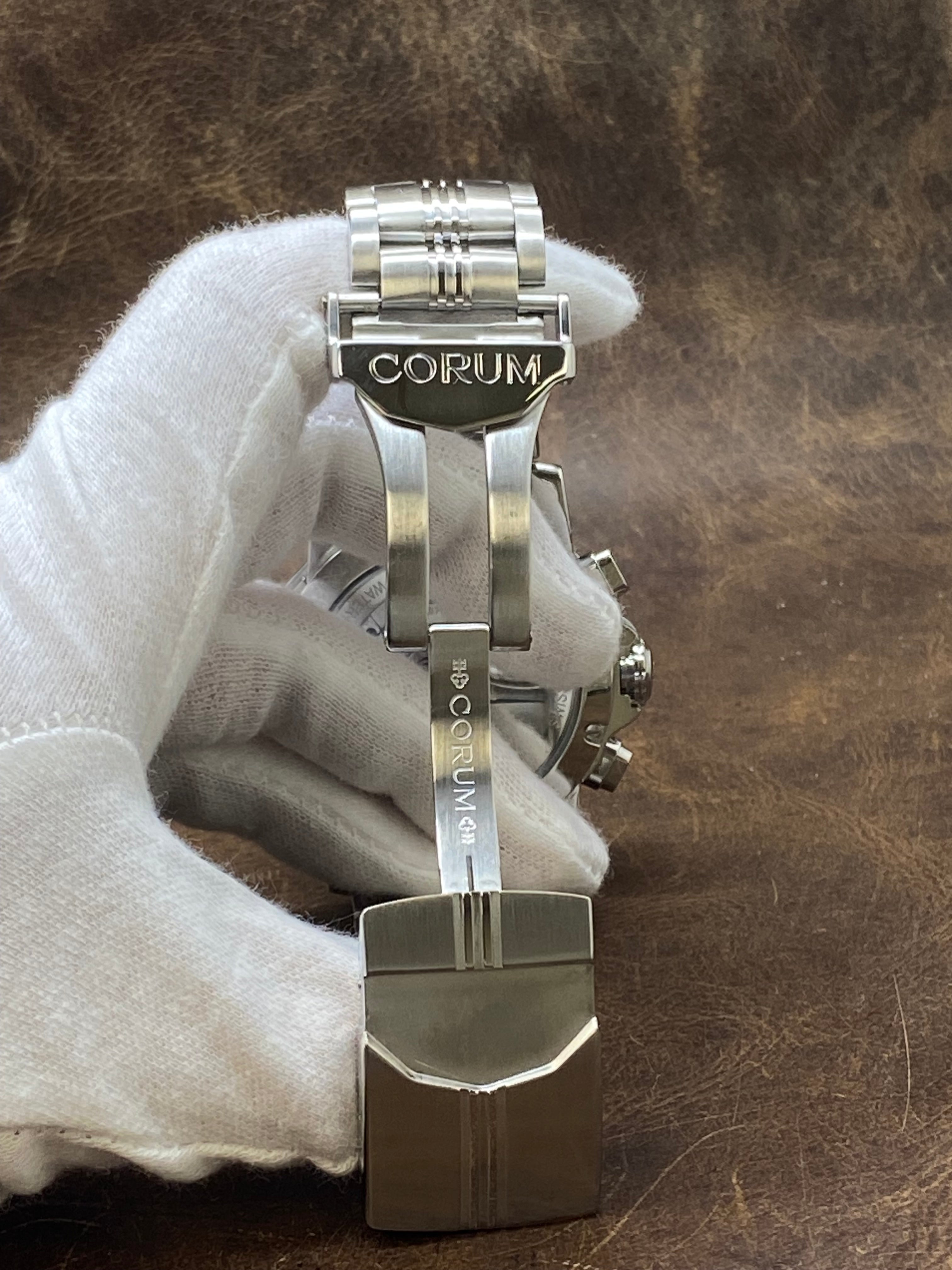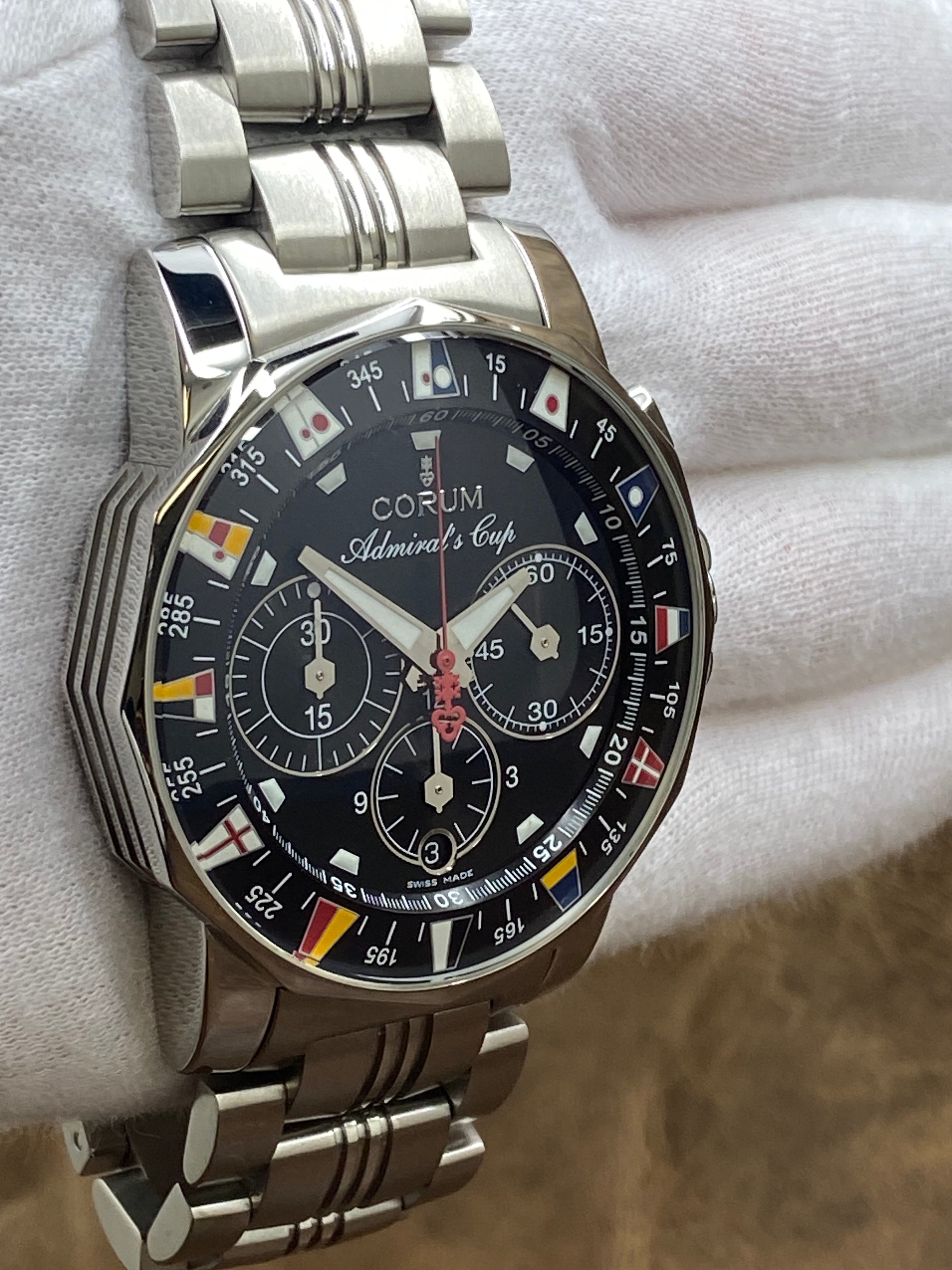 This pre-owned Corum Admirals Cup 44mm Chronograph 985.641.20 is in excellent condition and comes with: NO box or papers. Max wrist size: 7.5 in.