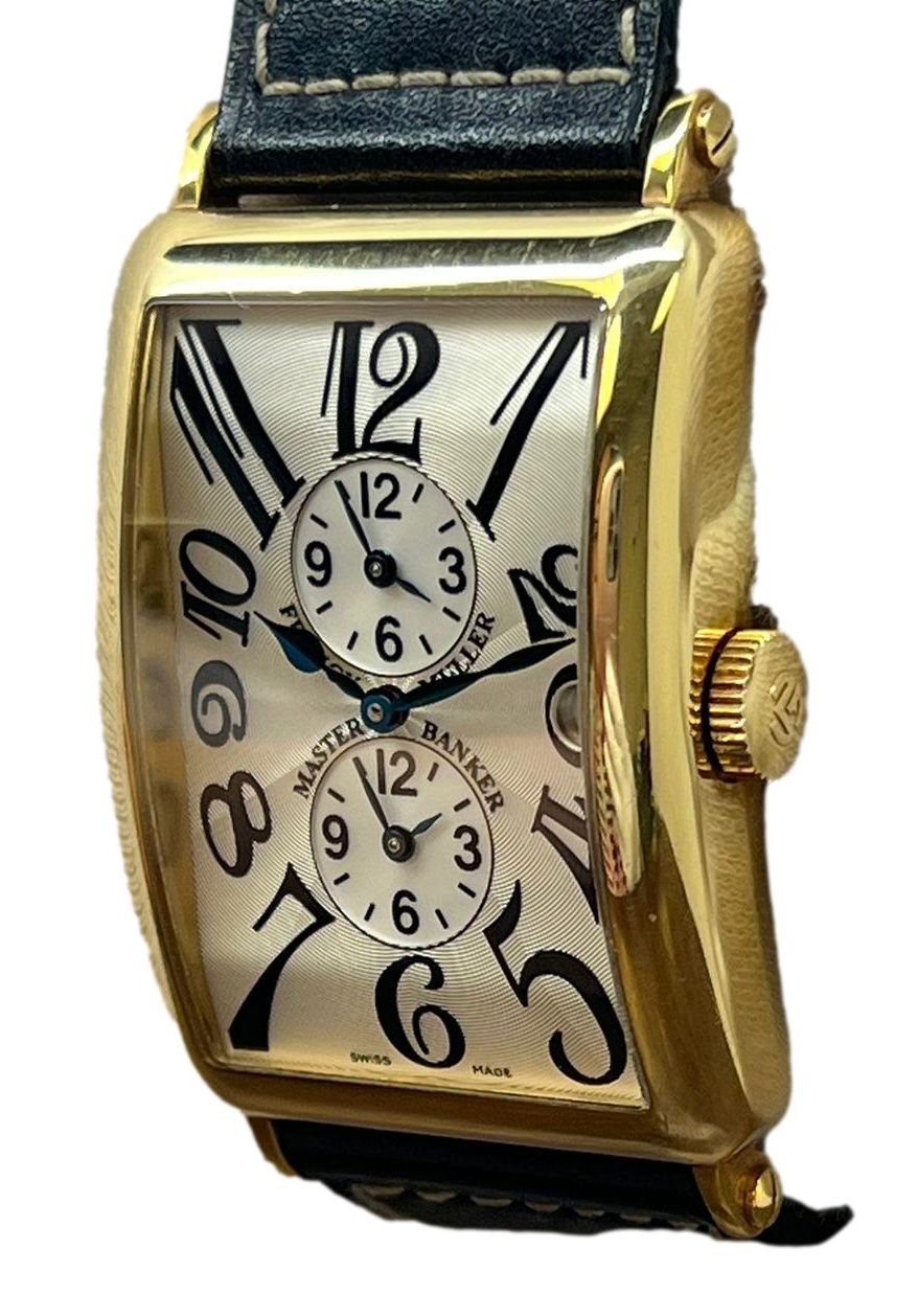 This pre-owned Franck Muller Long Island Master Banker 18K Yellow Gold 1200MB is in mint condition and comes with: original Franck Muller blue color wooden box & outer box only.
