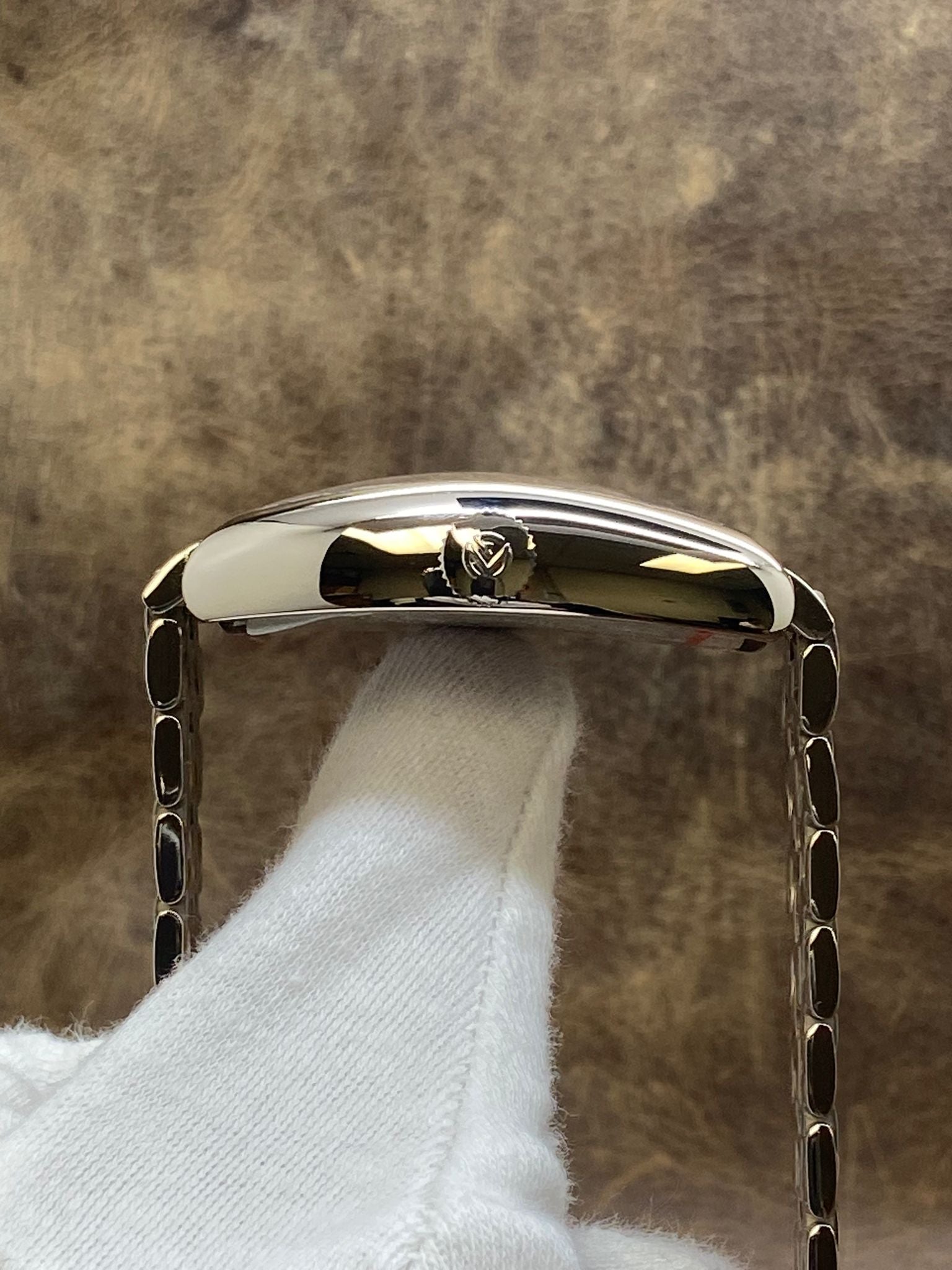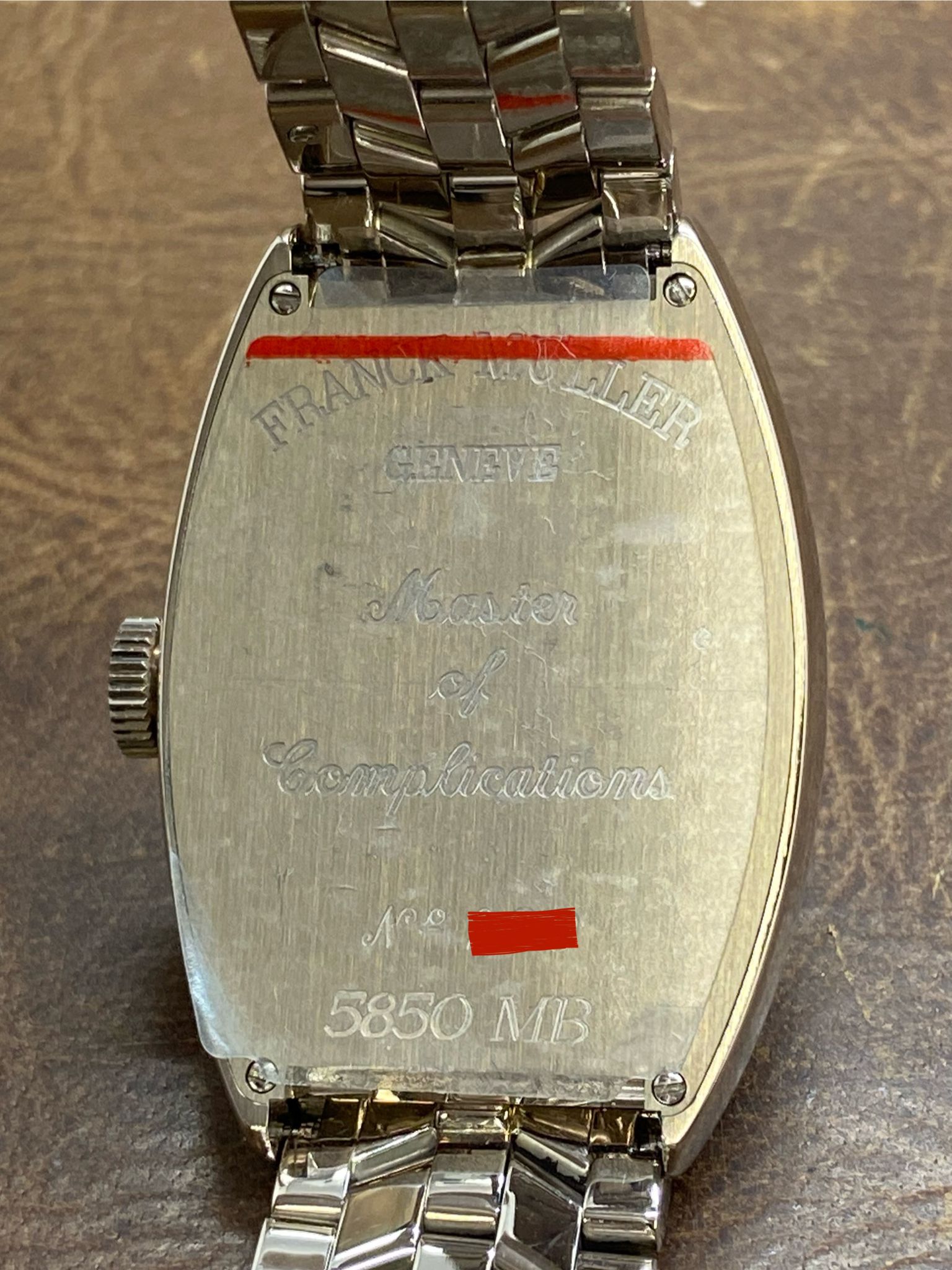 This pre-owned Franck Muller Master Banker 5850 MB 18K White Gold is in excellent condition and comes with: NO box or papers. Max wrist size: 7.5 in.