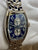 18k white gold case with a 18k white gold bracelet. Smooth - fixed 18k white gold bezel. Blue dial with luminous black hands and Arabic numerals hour markers. Dial type: analog. Eta 2892 automatic movement with about 42 of power reserve. Scratch resistant sapphire crystal. Push/pull crown. Solid case back. Case size: 45 x 32 mm. Case thickness: 12 mm. Tonneau case shape. Band width: mm. Double fold-over clasp. Functions: hours, minutes, seconds, date, 2nd and 3rd timezones. Franck Muller Master Banker 5850 MB 18K White Gold Blue Dial Automatic Men's Watch.