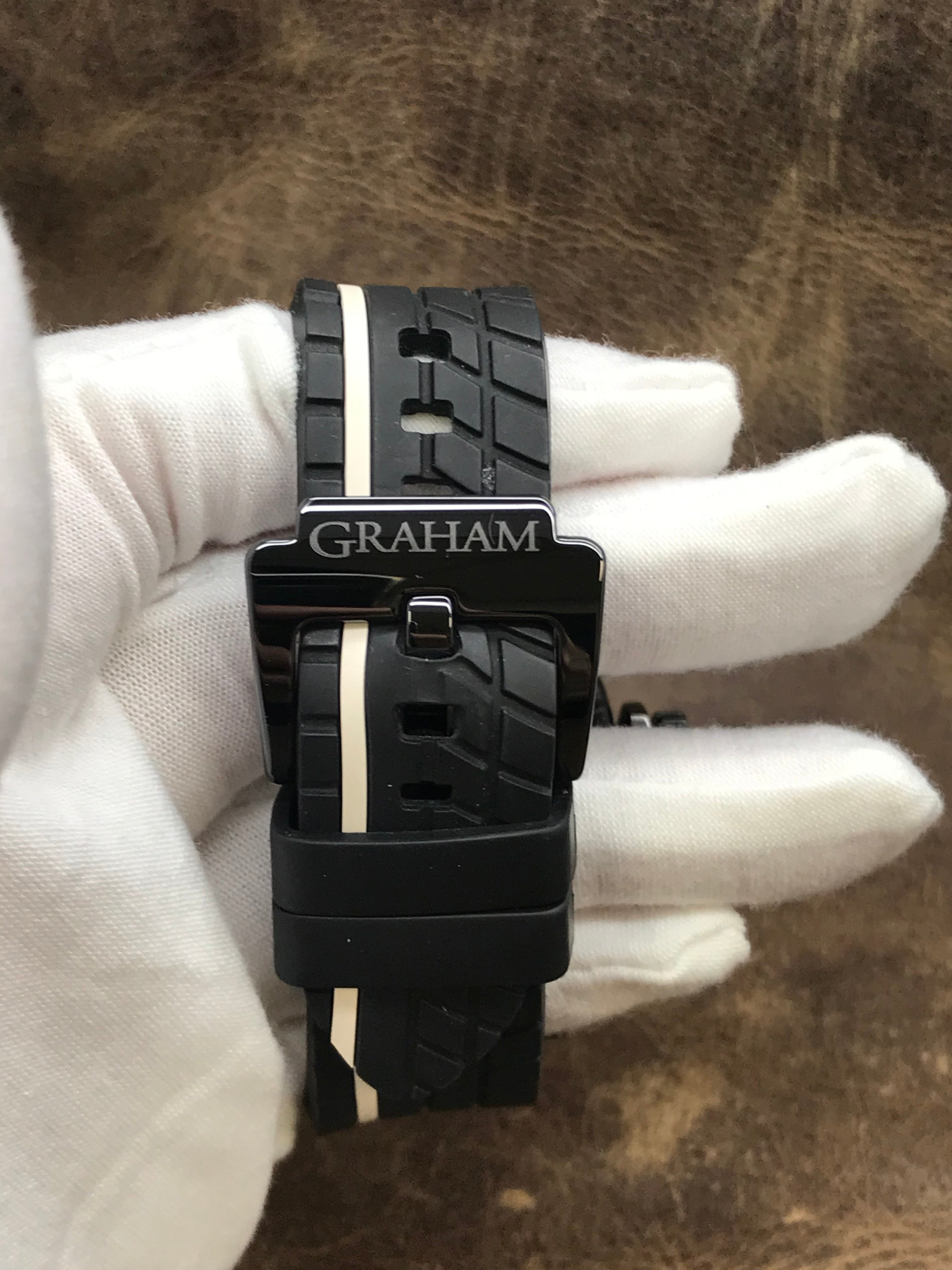 This pre-owned Graham Silverstone Stowe Racing AN.2BLDC.7 is in excellent condition and comes with: NO box or papers. Max wrist size: 8 in.