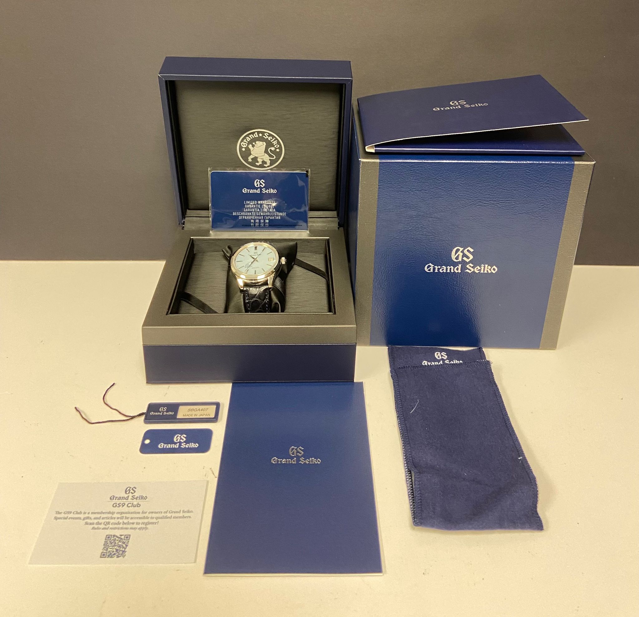- original Grand Seiko double box, booklets, tags and matching warranty papers dated July 2023