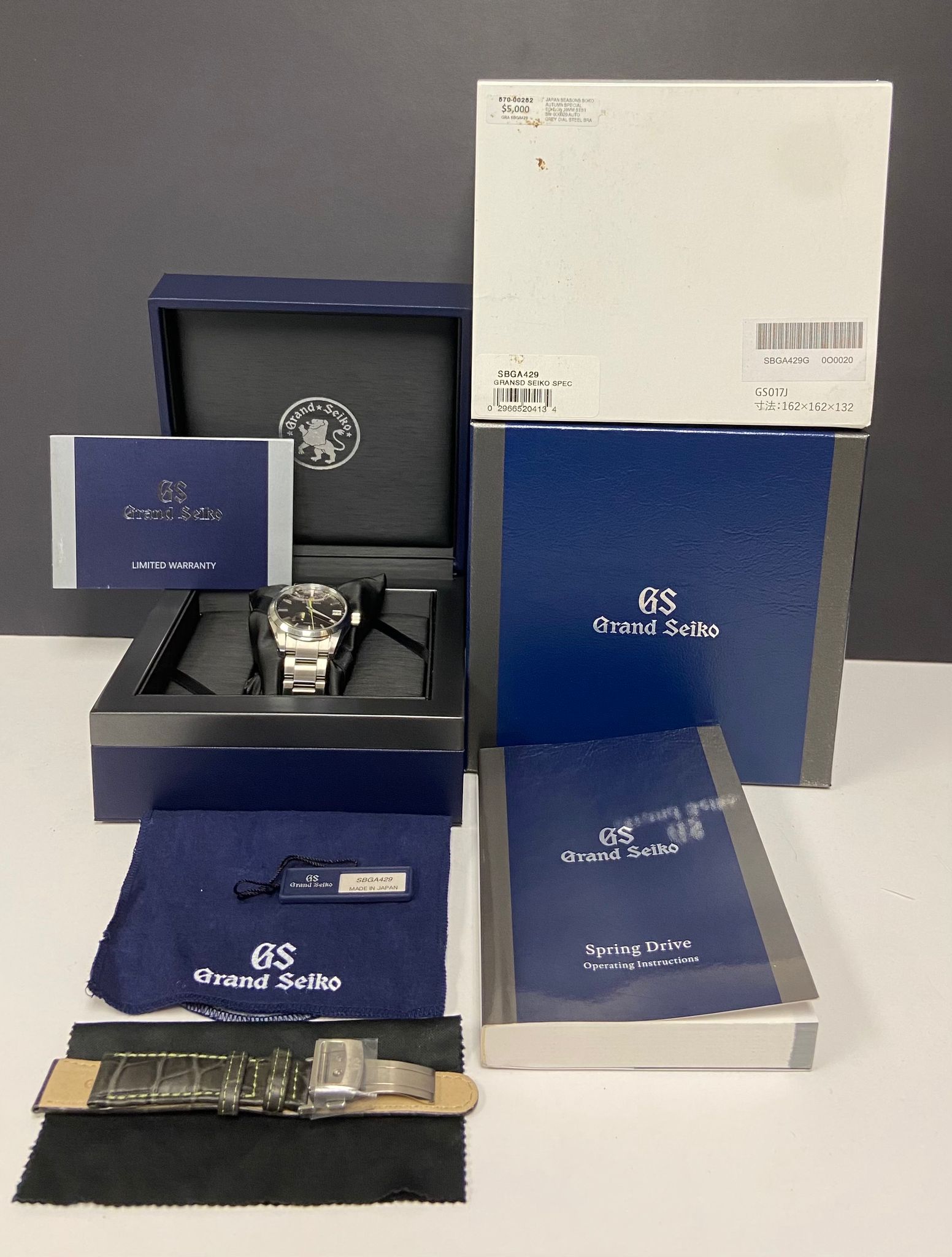 - original Grand Seiko double box, booklets, tag, extra strap with deployment and matching warranty papers dated Feb 2021