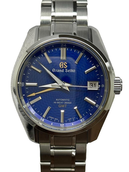 Stainless steel case with a stainless steel bracelet. Smooth - fixed stainless steel bezel. Blue peacock dial with silver-tone hands and index hour markers. Dial type: analog. Caliber 9s86 automatic movement with about 55 of power reserve. Dual-curved sapphire crystal crystal. Screw down crown. Transparent case back. Case size: 40 mm. Case thickness: 14 mm. Round case shape. Band width: mm. Fold over with push button release clasp. Water resistant at 100 meters / 330 feet. Functions: date, hour, minute, seconds, gmt. Grand Seiko Heritage GMT SBGJ261 Blue Peacock Dial Automatic Men's Watch.