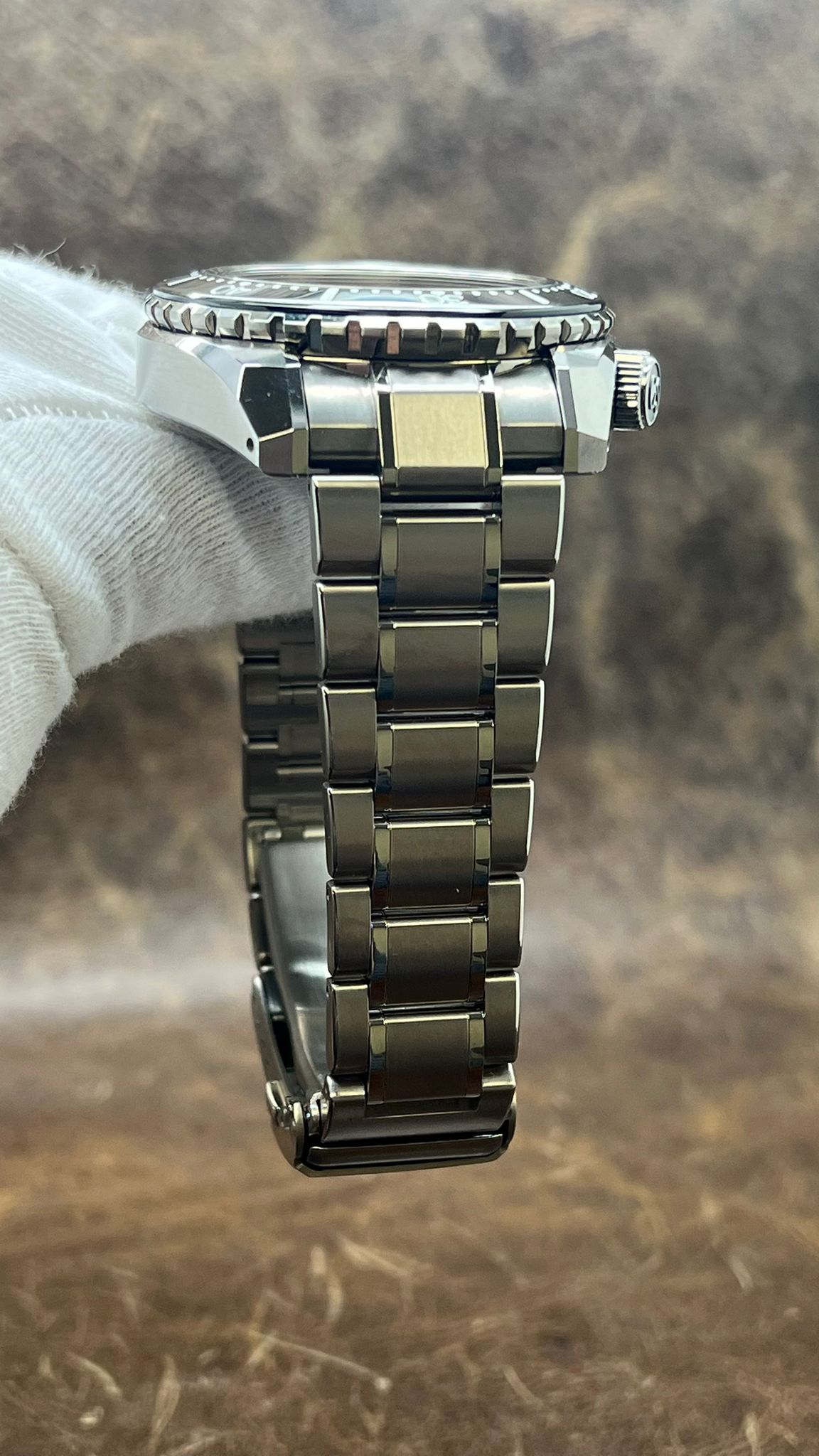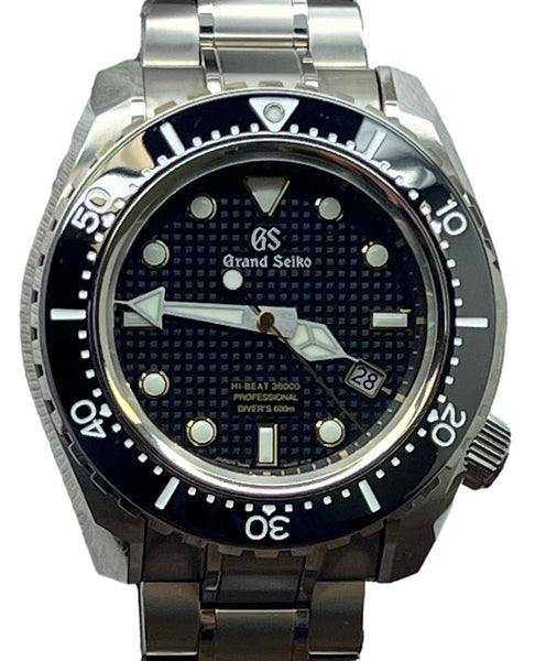 High-intensity titanium case with a titanium bracelet. Uni-directional rotating high-intensity titanium with an inlaid black top ring bezel. Black dial with luminous silver-tone hands and luminous dot & index hour markers. Dial type: analog. Seiko caliber : 9s85 automatic movement with about 55 of power reserve. Sapphire crystal. Screw down crown. Solid case back. Case size: 47 mm. Case thickness: 17 mm. Round case shape. Band width: mm. Fold over w/ safety release clasp. Water resistant at 600 meters / 2000 feet. Functions: date, hour, minute, seconds. Grand Seiko Sport Collection Hi Beat 36000 Titanium 47mm SBGH255 Black Dial Automatic Men's Watch.