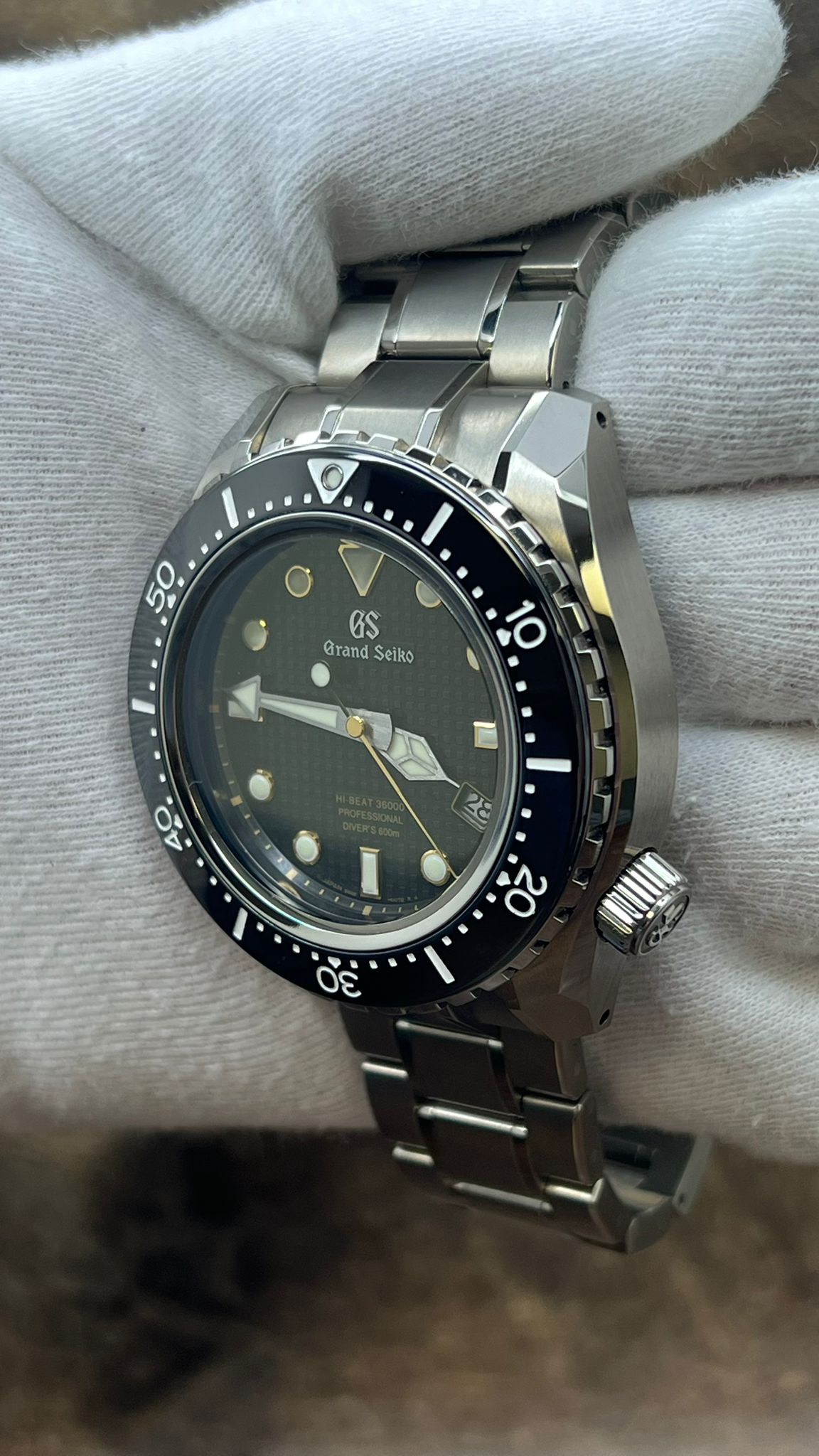 This pre-owned Grand Seiko Sport Collection Hi Beat 36000 Titanium 47mm SBGH255 is in excellent condition and comes with: original Grand Seiko double box, Instruction book, tag and matching warranty papers. The watch has some minor hairlines on case sides, buckle and caseback. Max wrist size: 7.75 in.