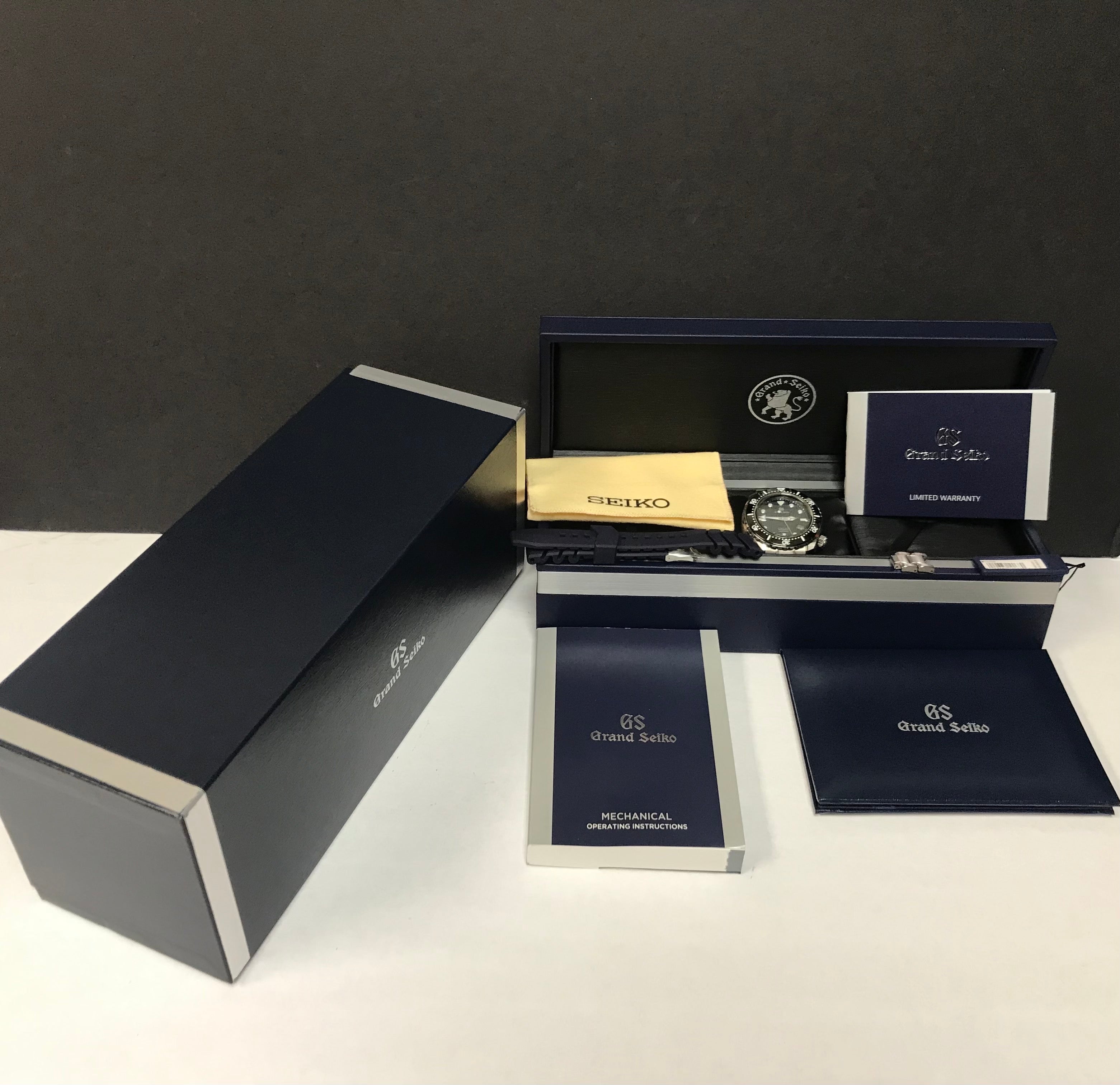 - original Grand Seiko double box, tag, rubber strap, booklets & matching warranty papers dated 2017