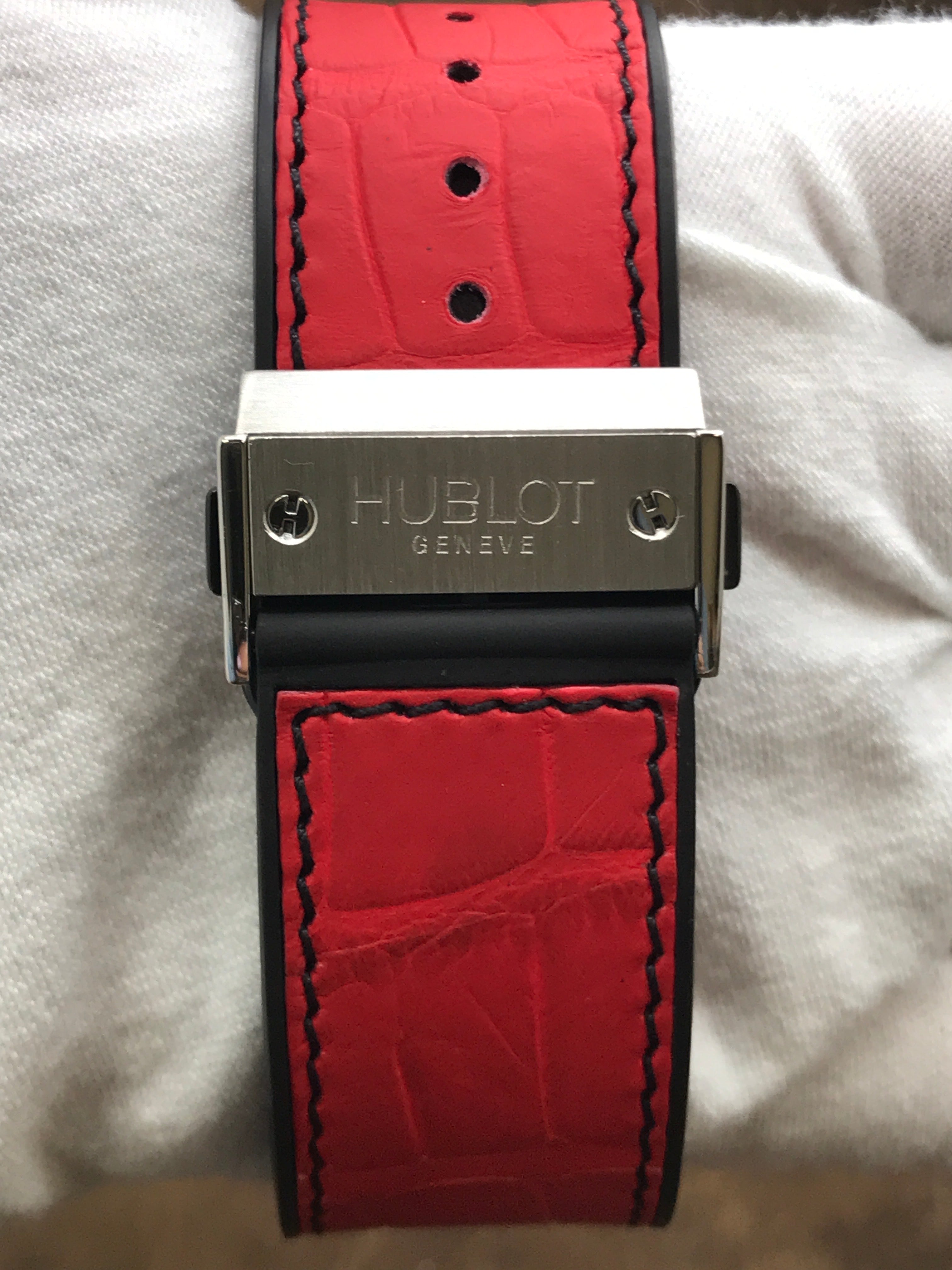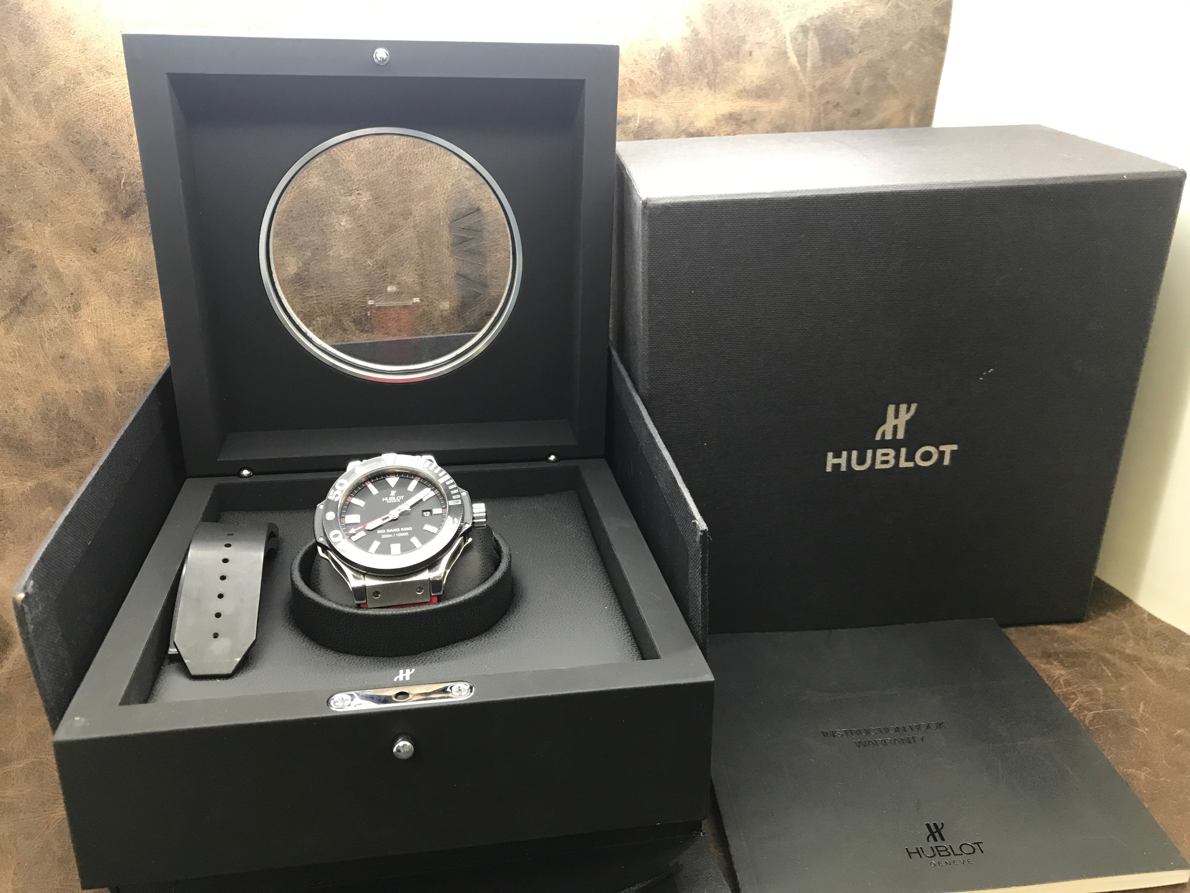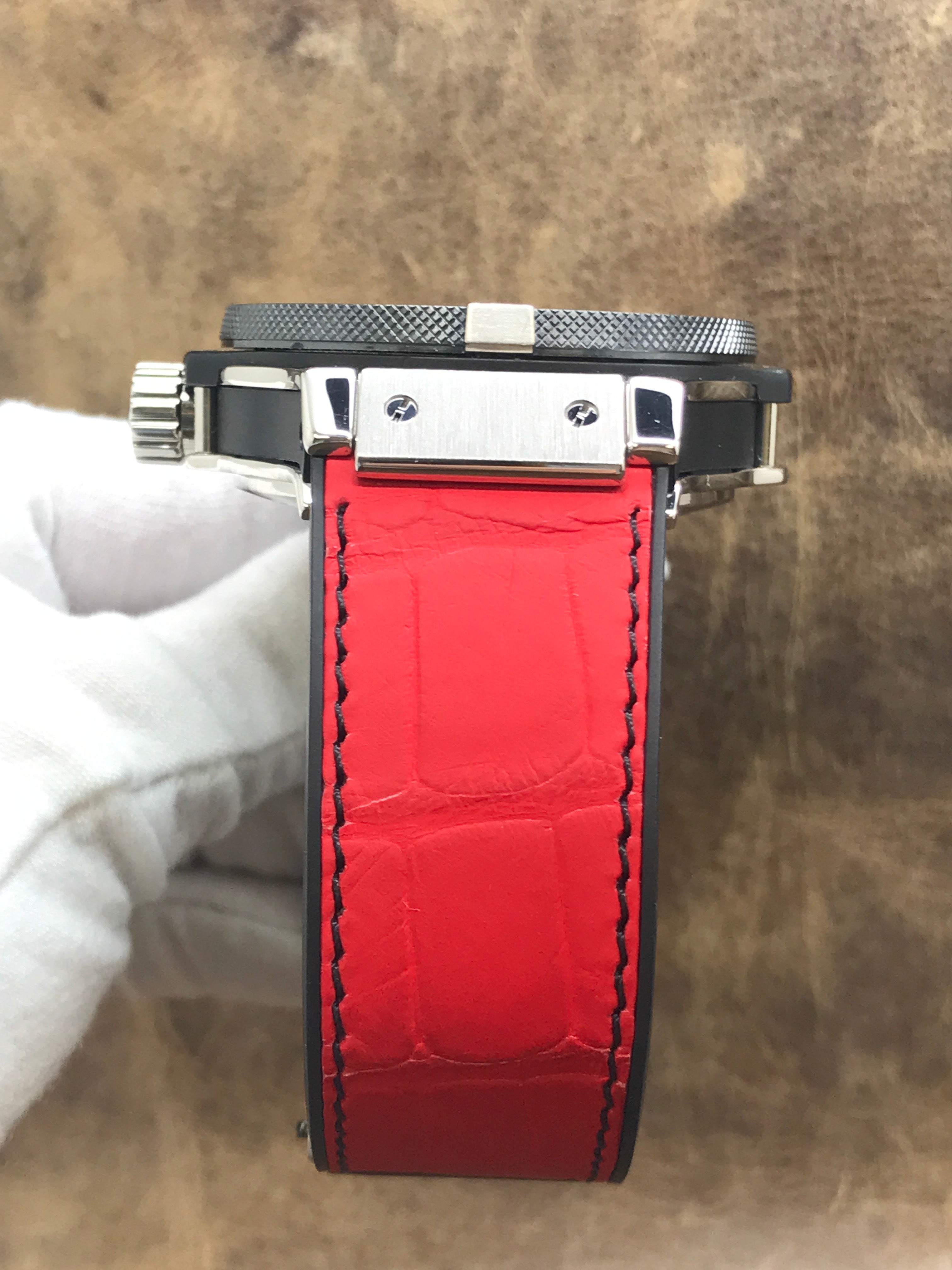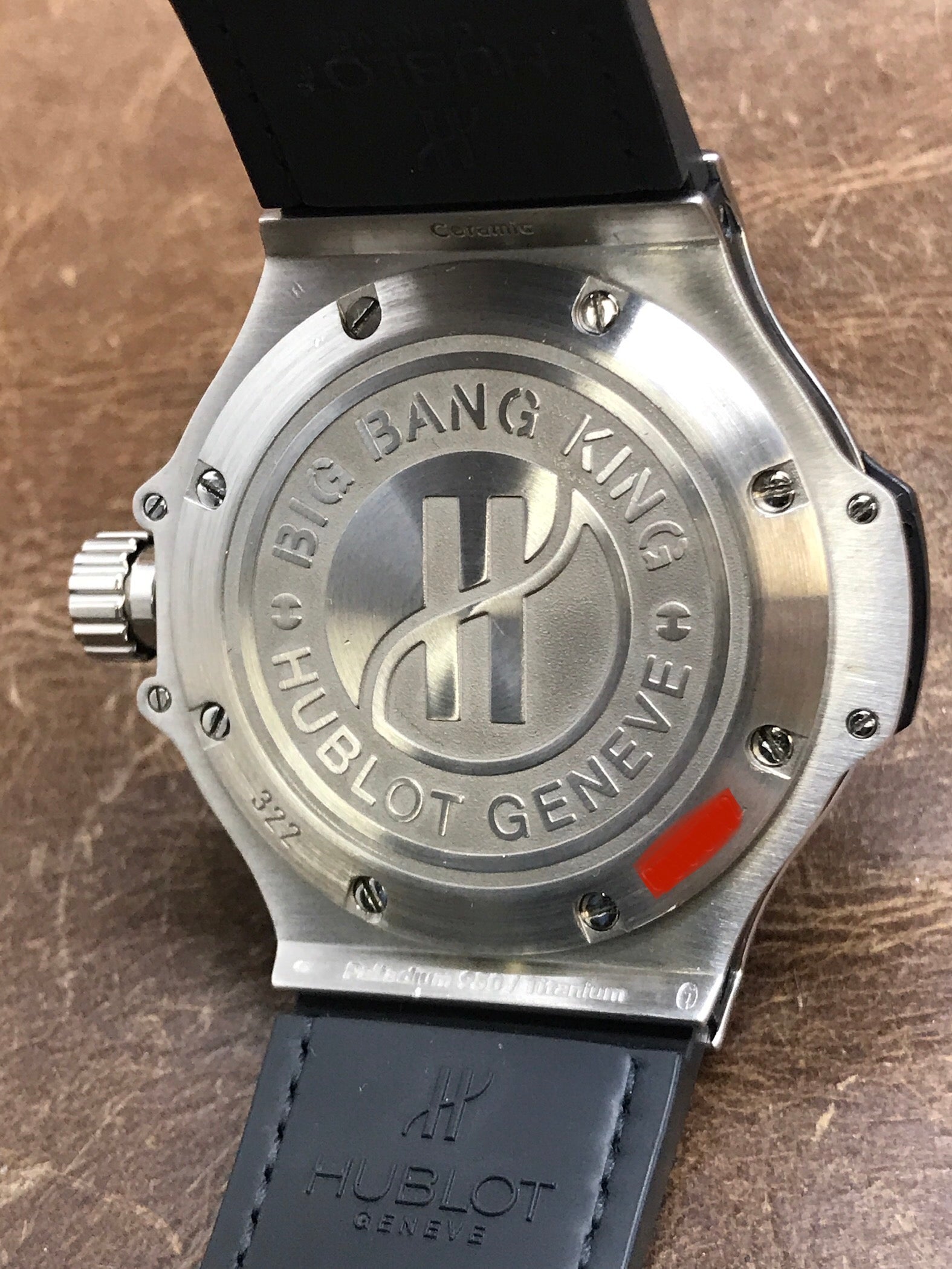 This pre-owned Hublot Big Bang King Palladium 322.LM.100.RX is in excellent condition and comes with: original Hublot double box & booklet. The bezel has some minor marks near 2, 8, 10 & 12 o'clock and the extra rubber strap is in fair condition. Max wrist size: 8 in.