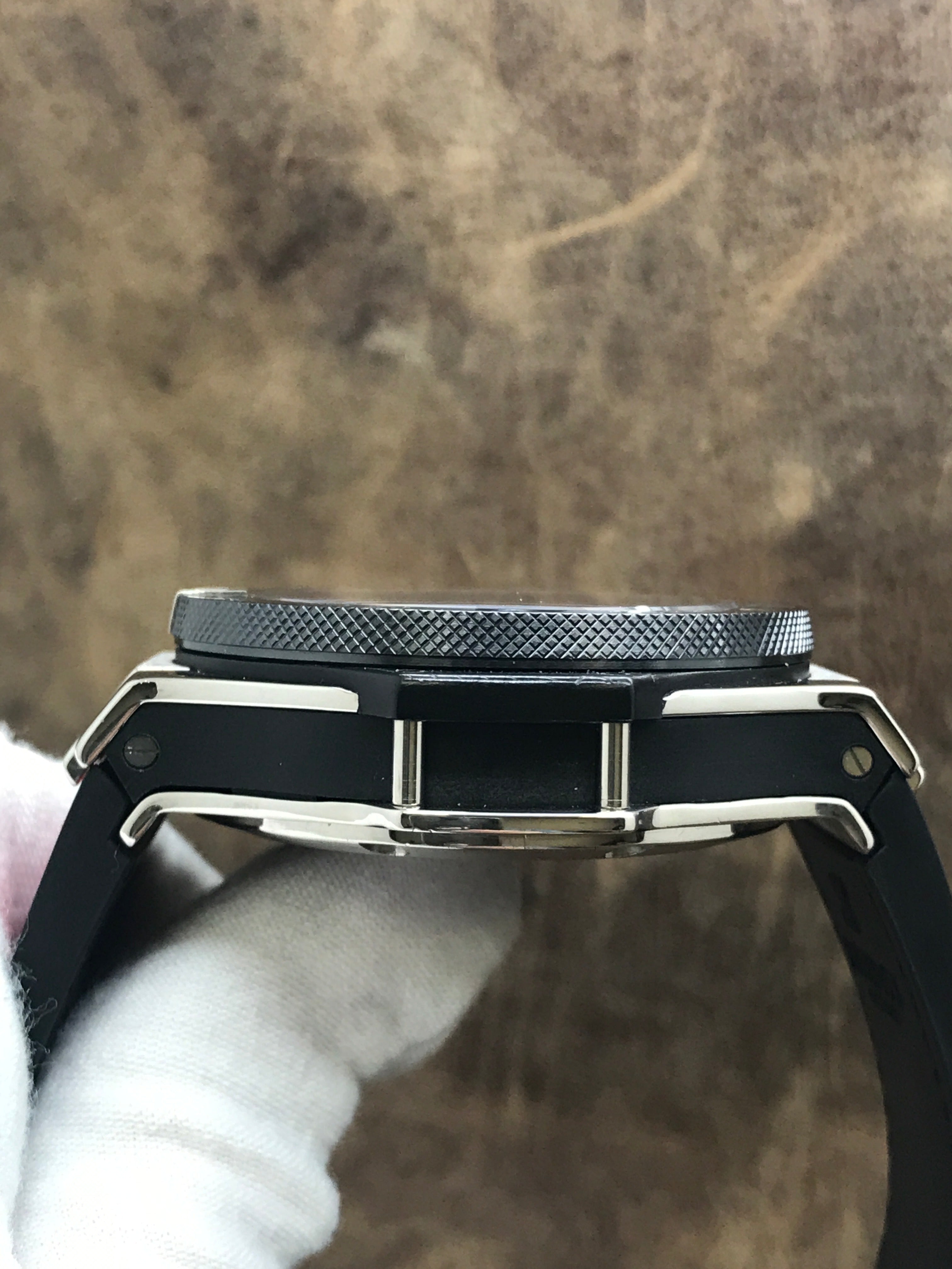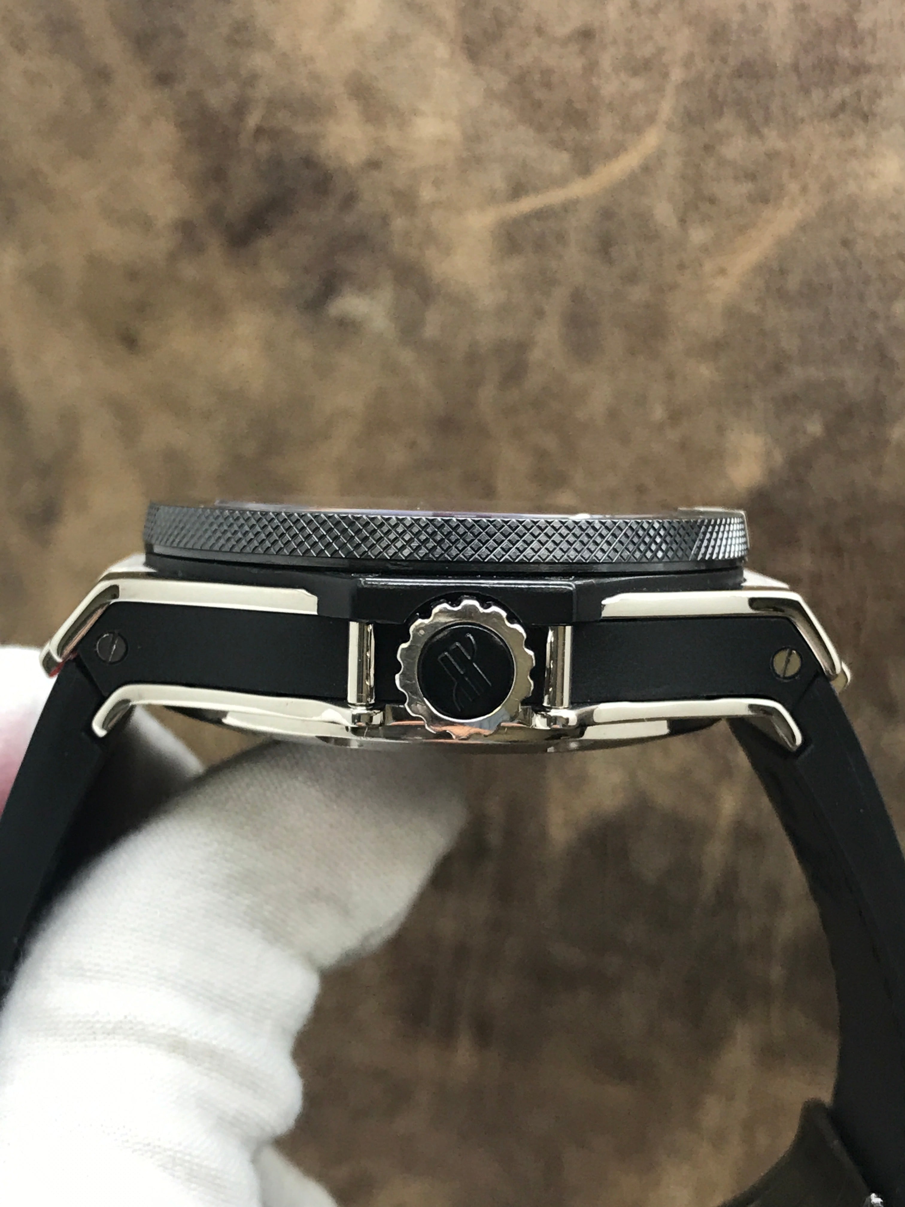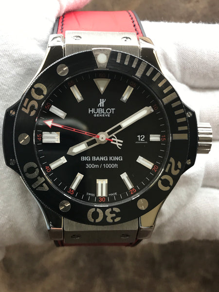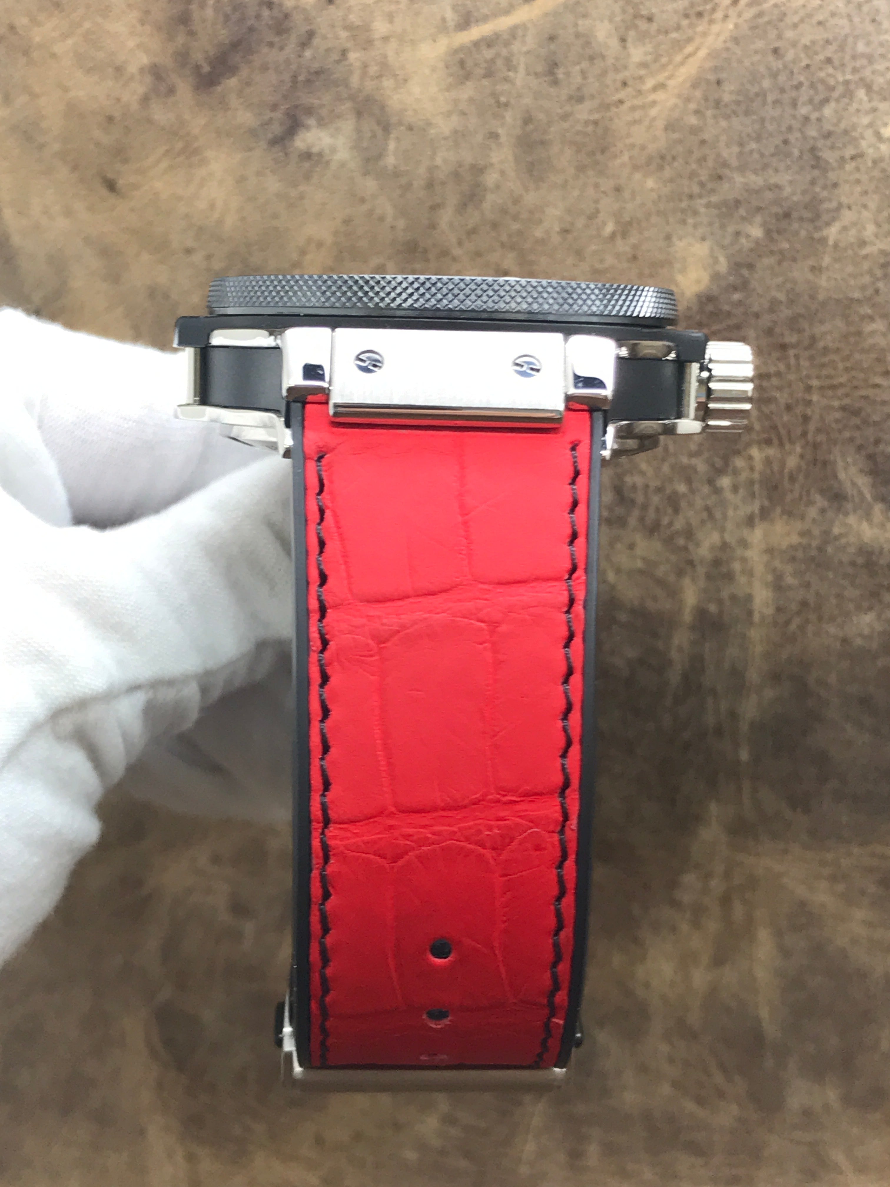 This pre-owned Hublot Big Bang King Palladium 322.LM.100.RX is in excellent condition and comes with: original Hublot double box & booklet. The bezel has some minor marks near 2, 8, 10 & 12 o'clock and the extra rubber strap is in fair condition. Max wrist size: 8 in.