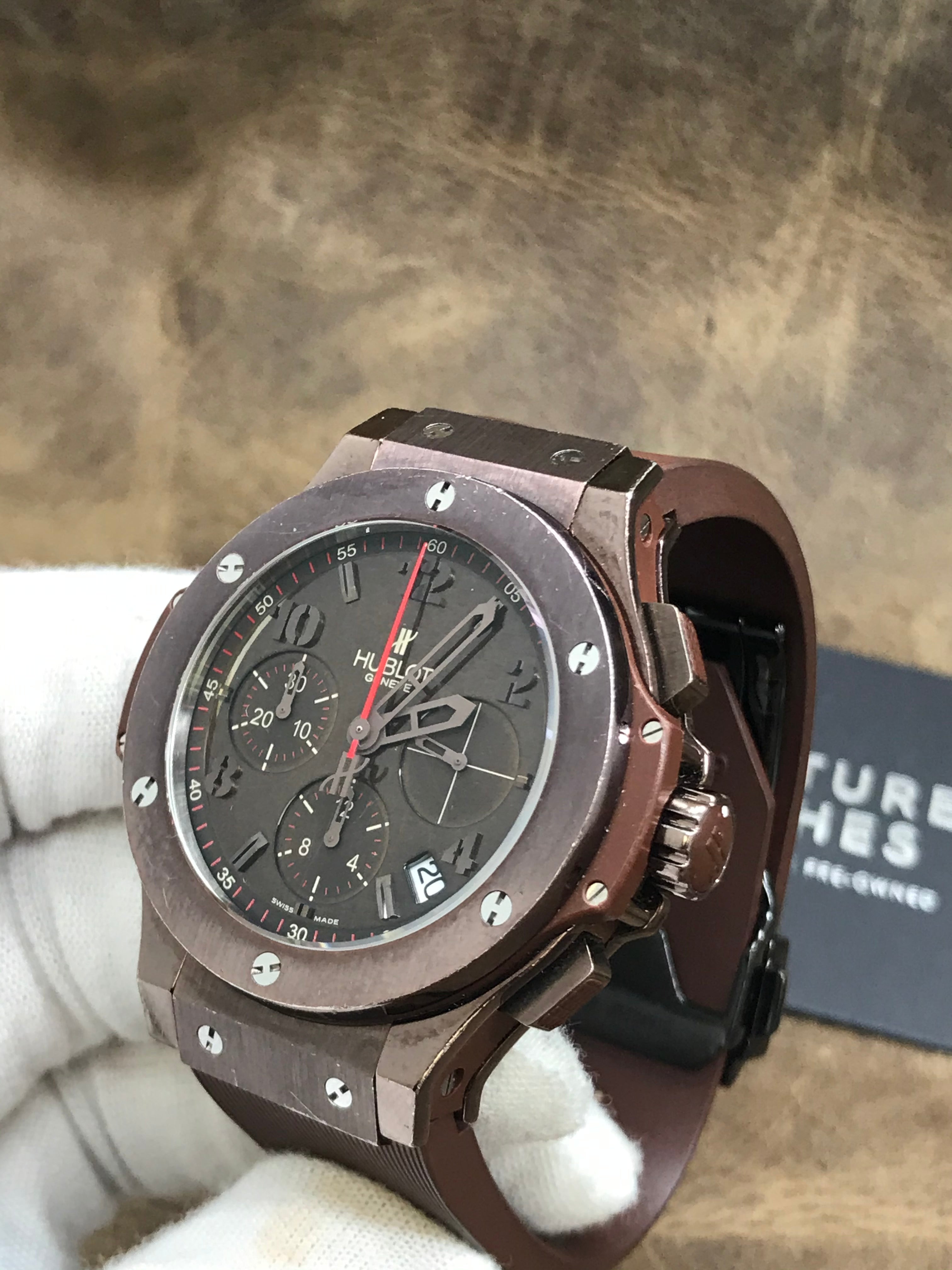This pre-owned Hublot Big Bang Limited 341.SL.1008.RX is in very good condition and comes with: None. The hublot plaque is missing on the buckle.