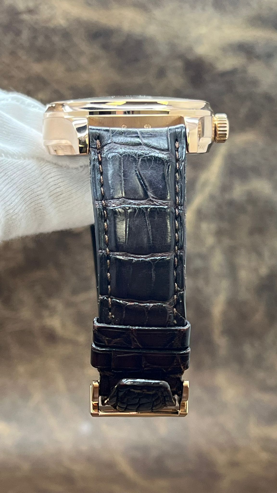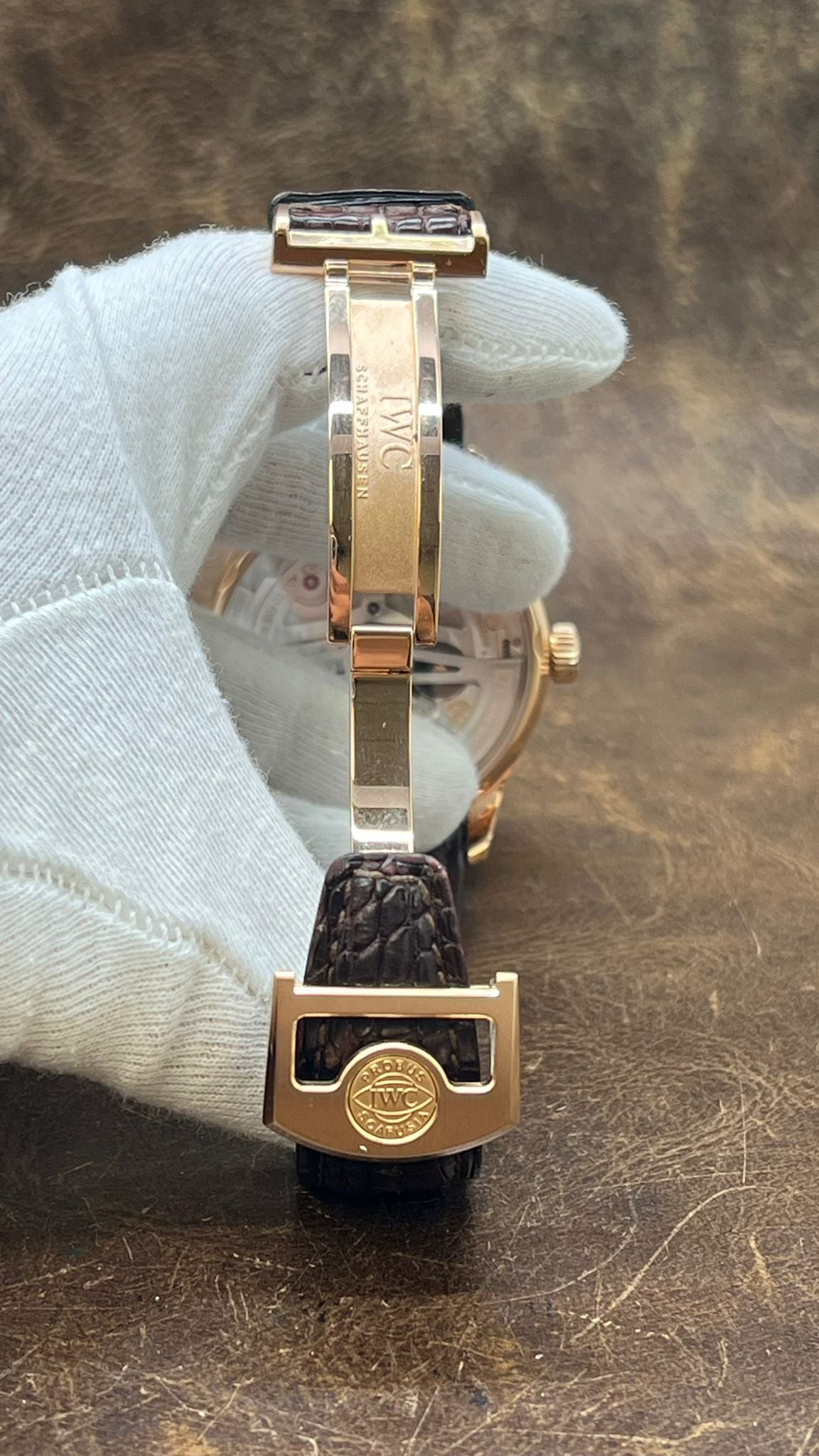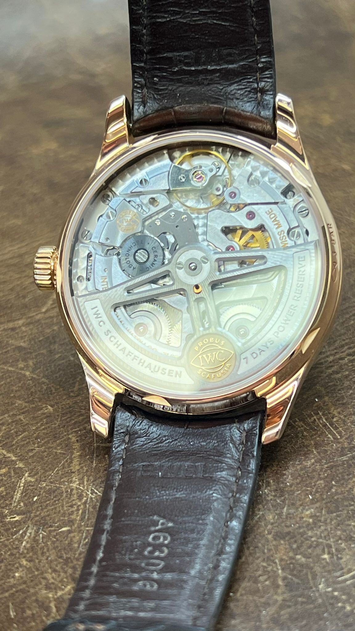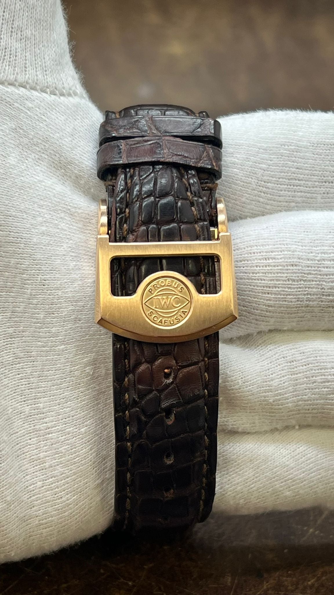 This pre-owned IWC Portuguese 7 days 18K Rose Gold IW500701 is in excellent condition and comes with: original IWC box, booklets and matching warranty card dated 2016. Max wrist size: 7.25 in.