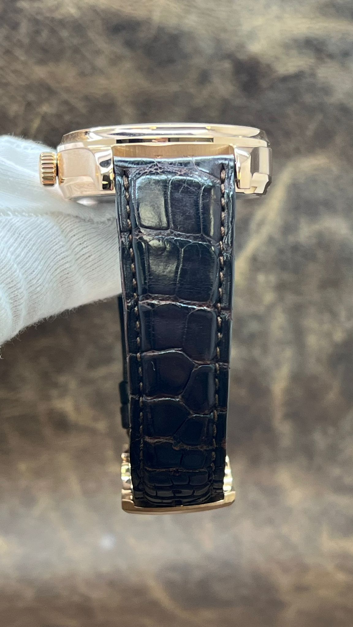 - Features Date; Hour; Minute; Seconds; Power reserve; 18K Gold; Leather; Analog; strap