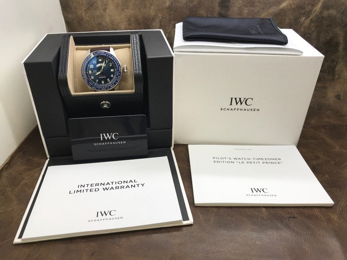 This pre-owned IWC Timezoner Le Petite Prince IW395503 is in mint condition and comes with: original IWC double box, booklets & matching warranty card dated Jan 2021. Max wrist size: 8.5 in.
