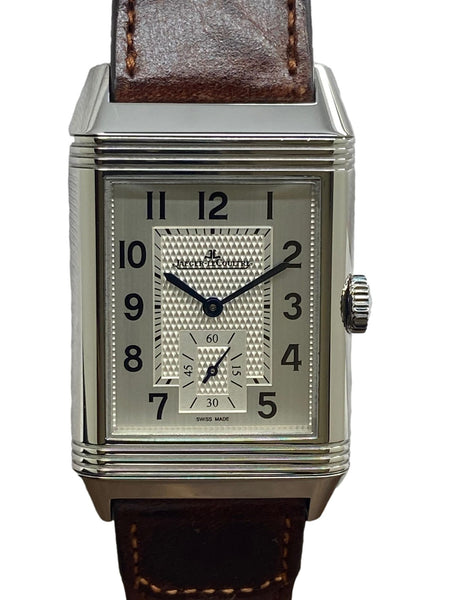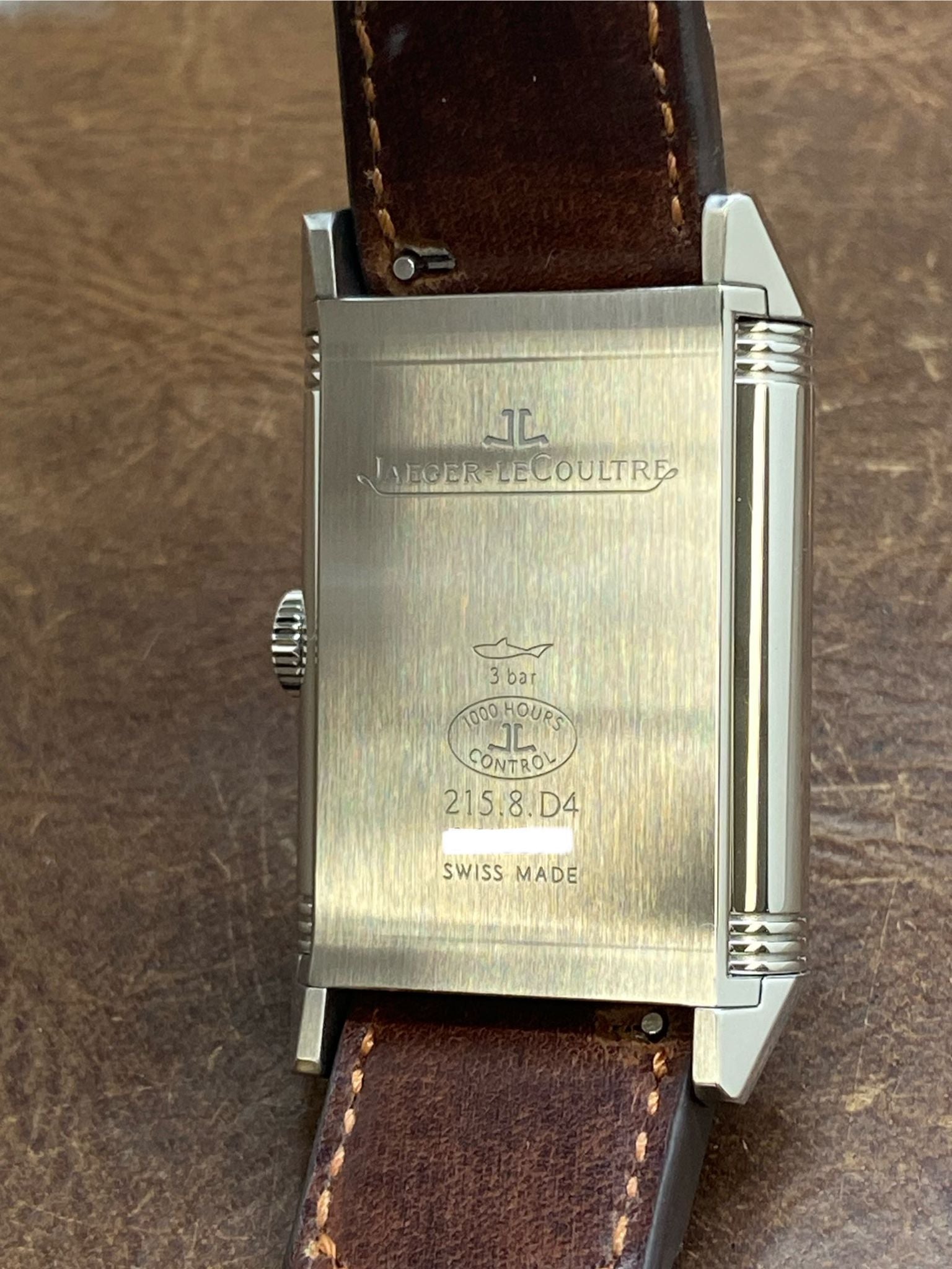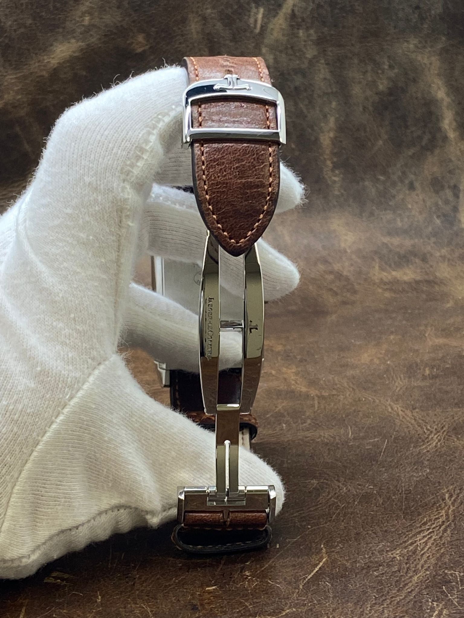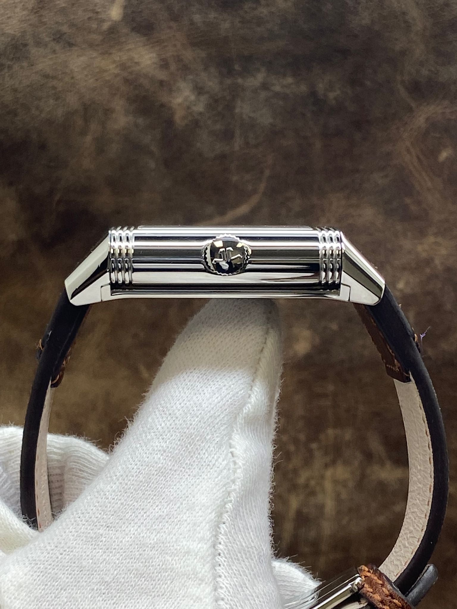 This pre-owned Jaeger-Lecoultre Reverso Travel Time Duo Face Q3848422 is in excellent condition and comes with: original JLC double box, booklets, tag and matching warranty card dated 2021. The watch is NOT waterproof. Max wrist size: 7.75 in.