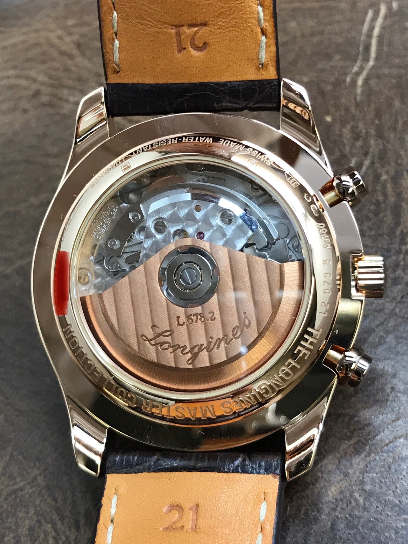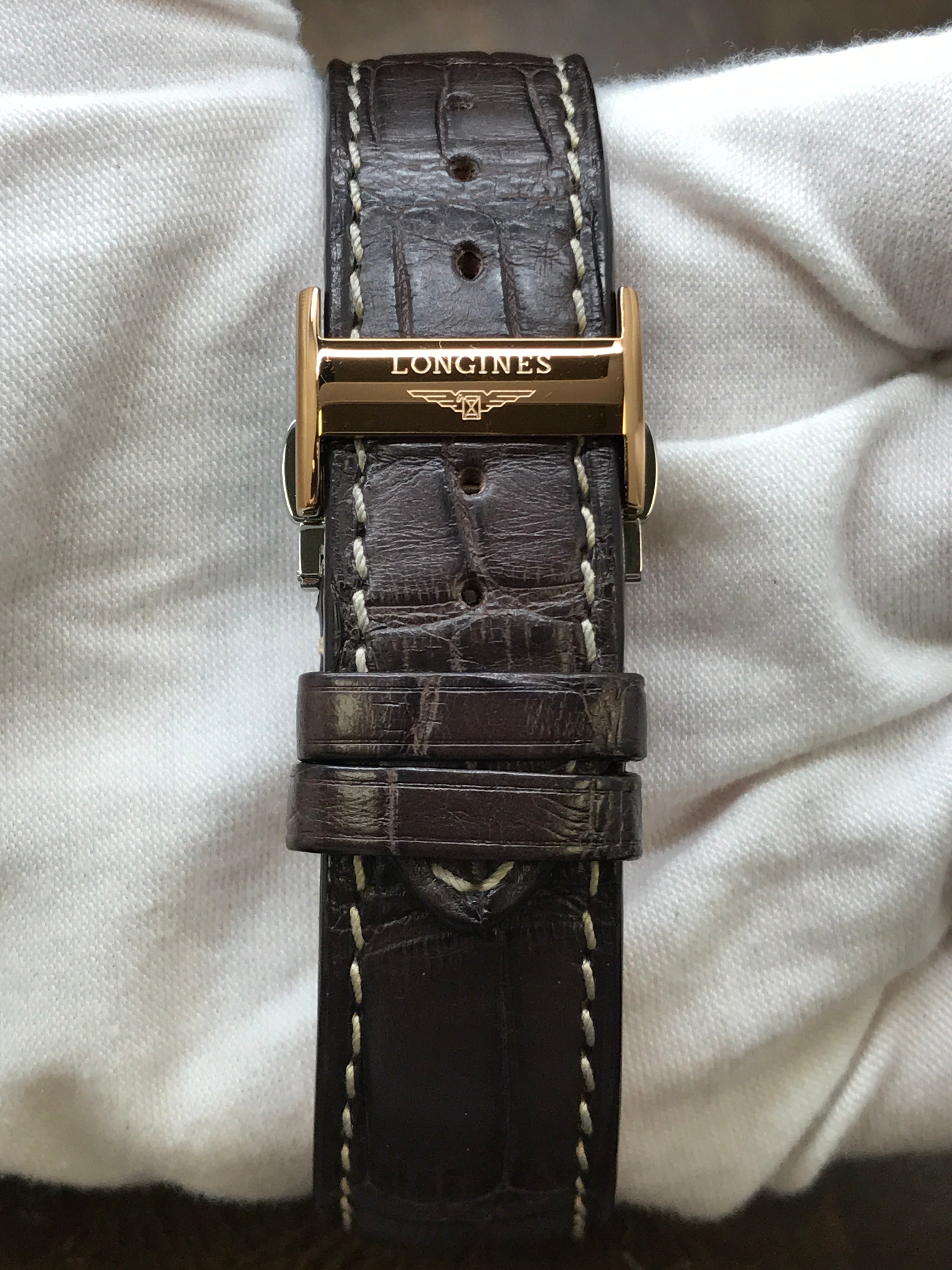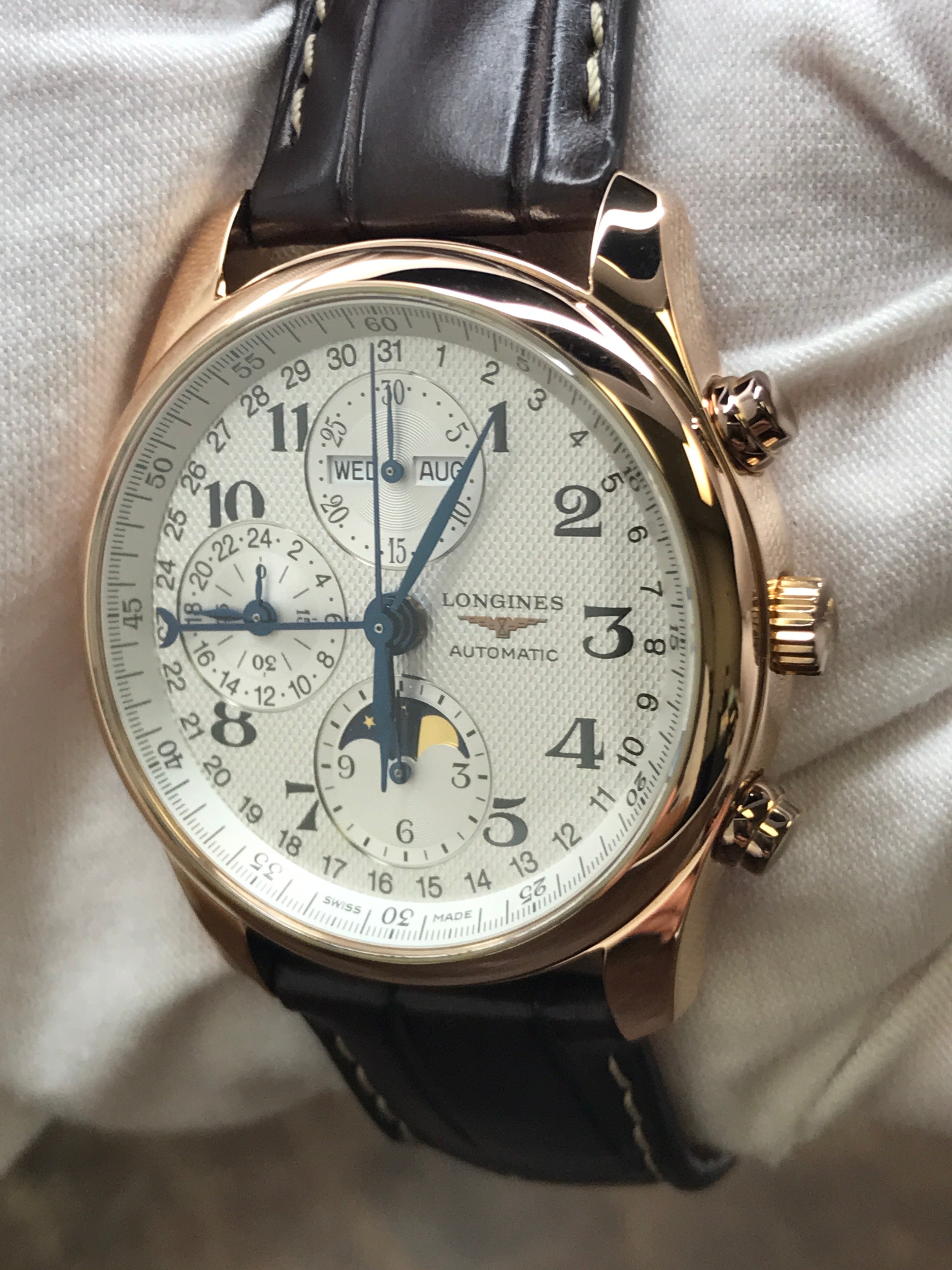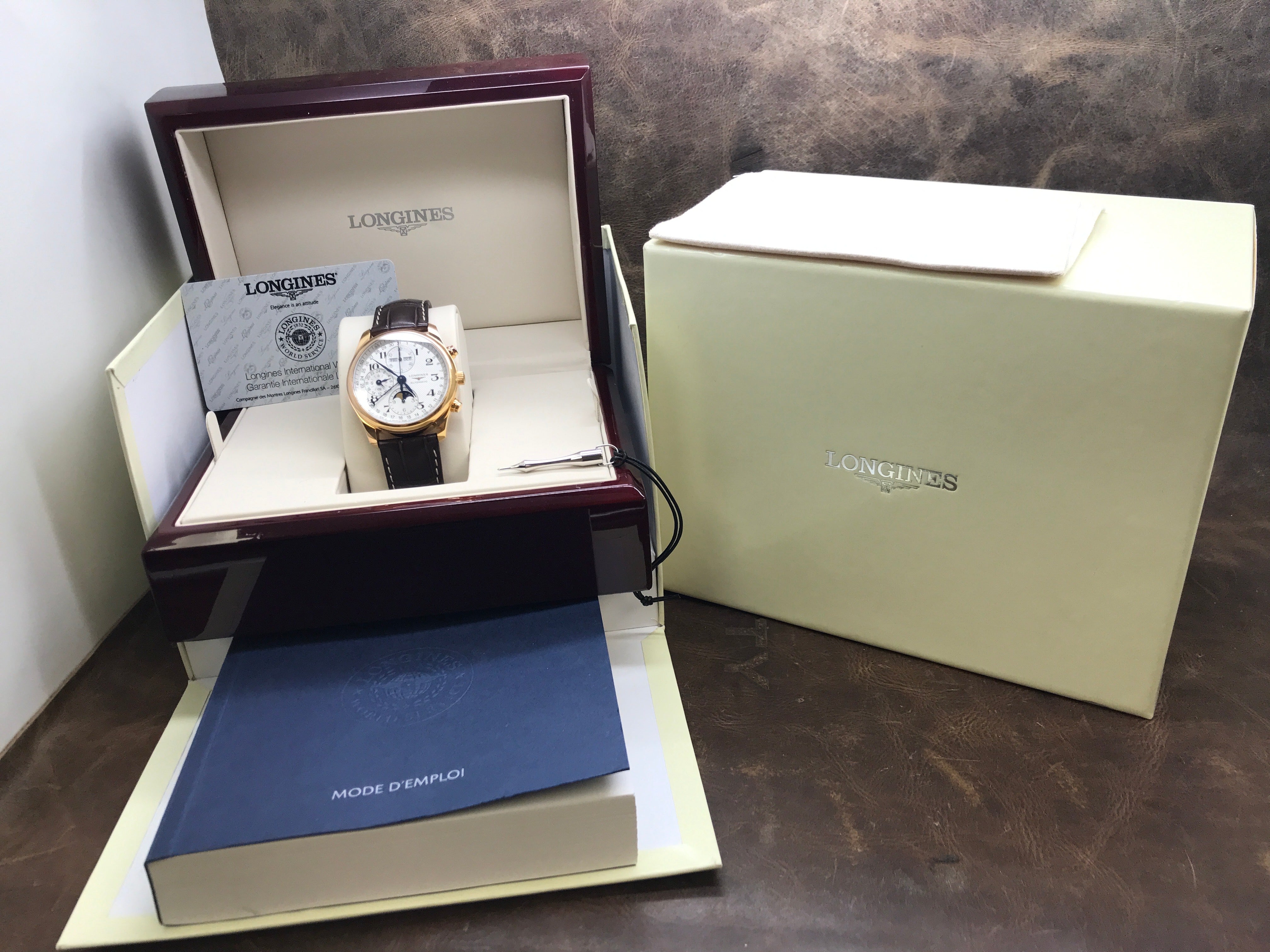 This pre-owned Longines Master Collection 18K Rose Gold L2.673.8.78.5 is in mint condition and comes with: original Longines double box, booklet, pusher pin and matching warranty card dated 2013. Max wrist size: 8.5 in.