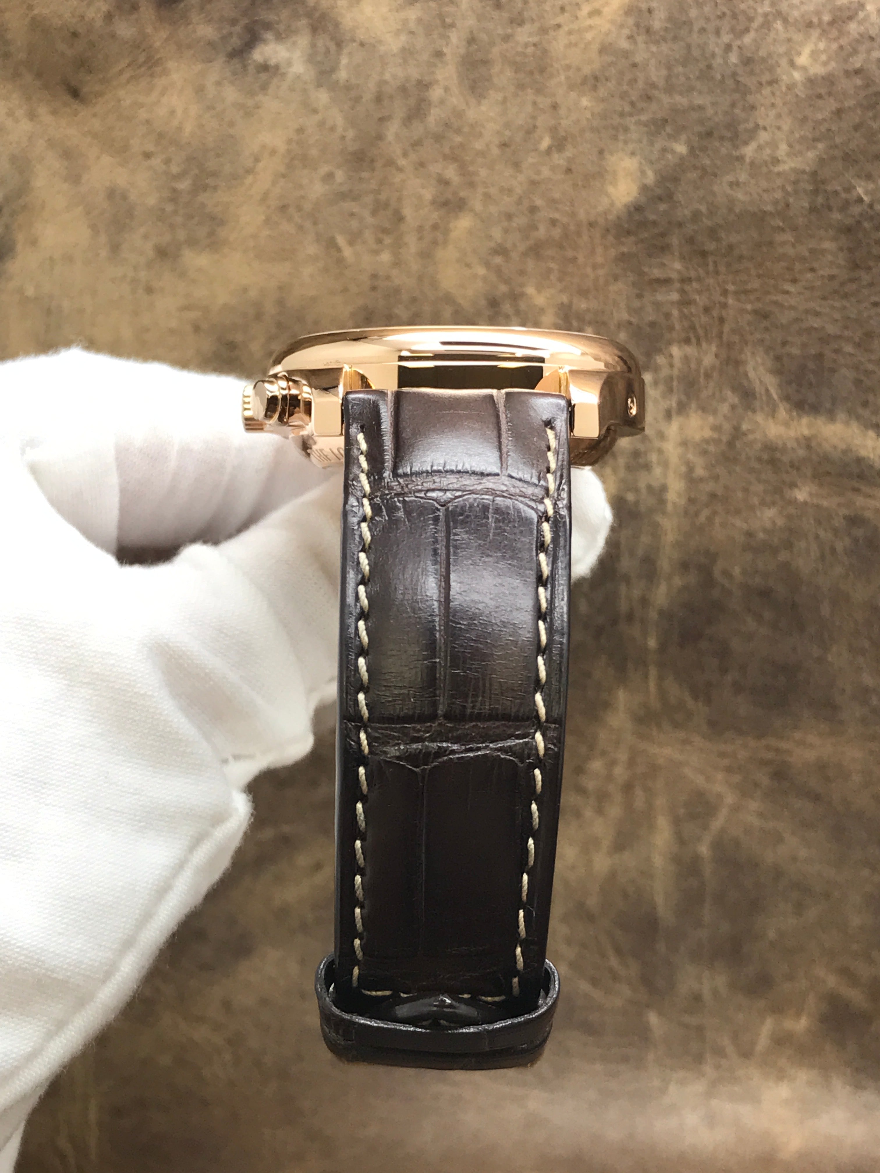 - Features Chronograph; Month; Date; Day; Moonphase; Hours; Minutes; Seconds; 24 Hours; Gold; Leather; strap
