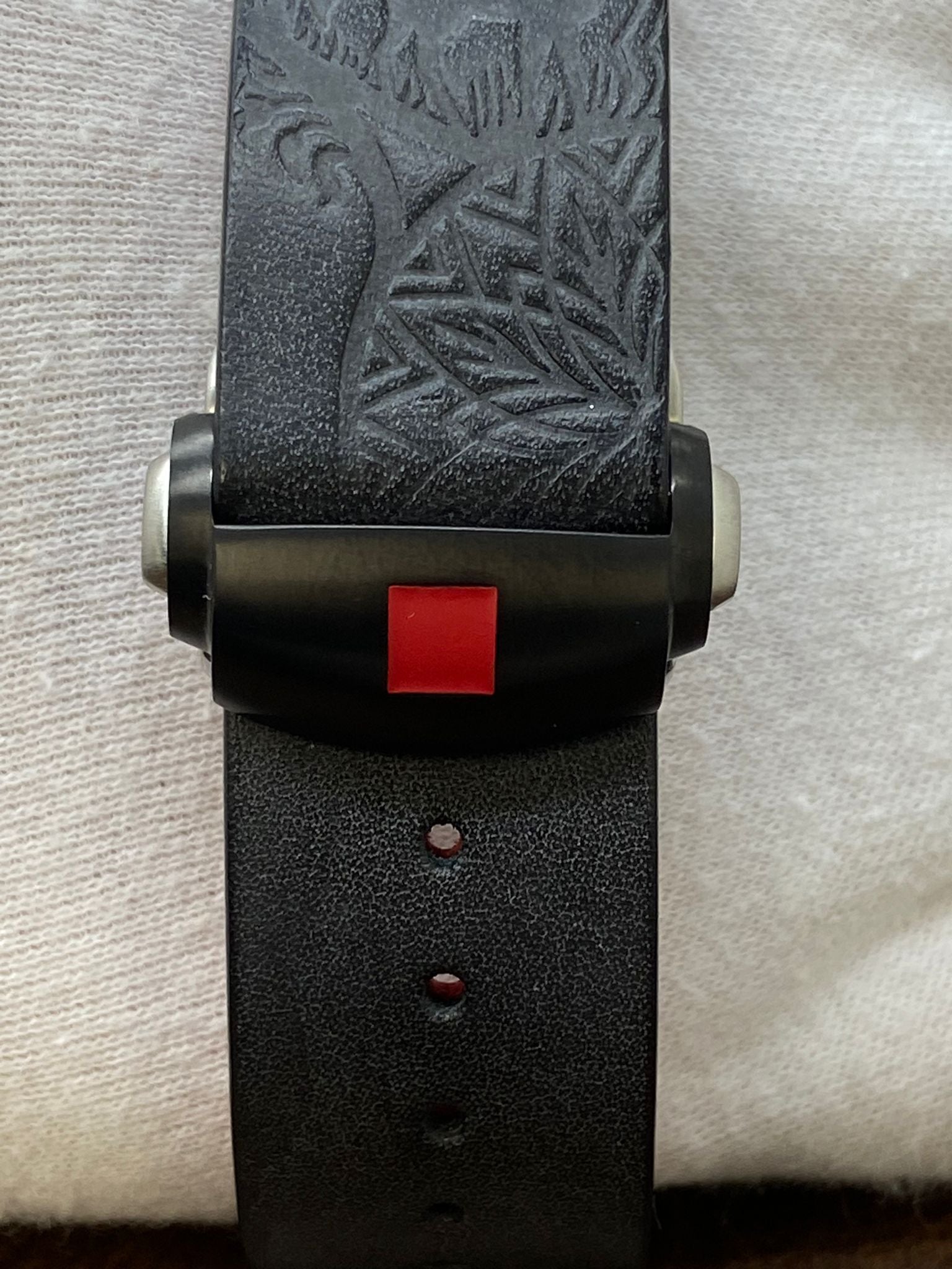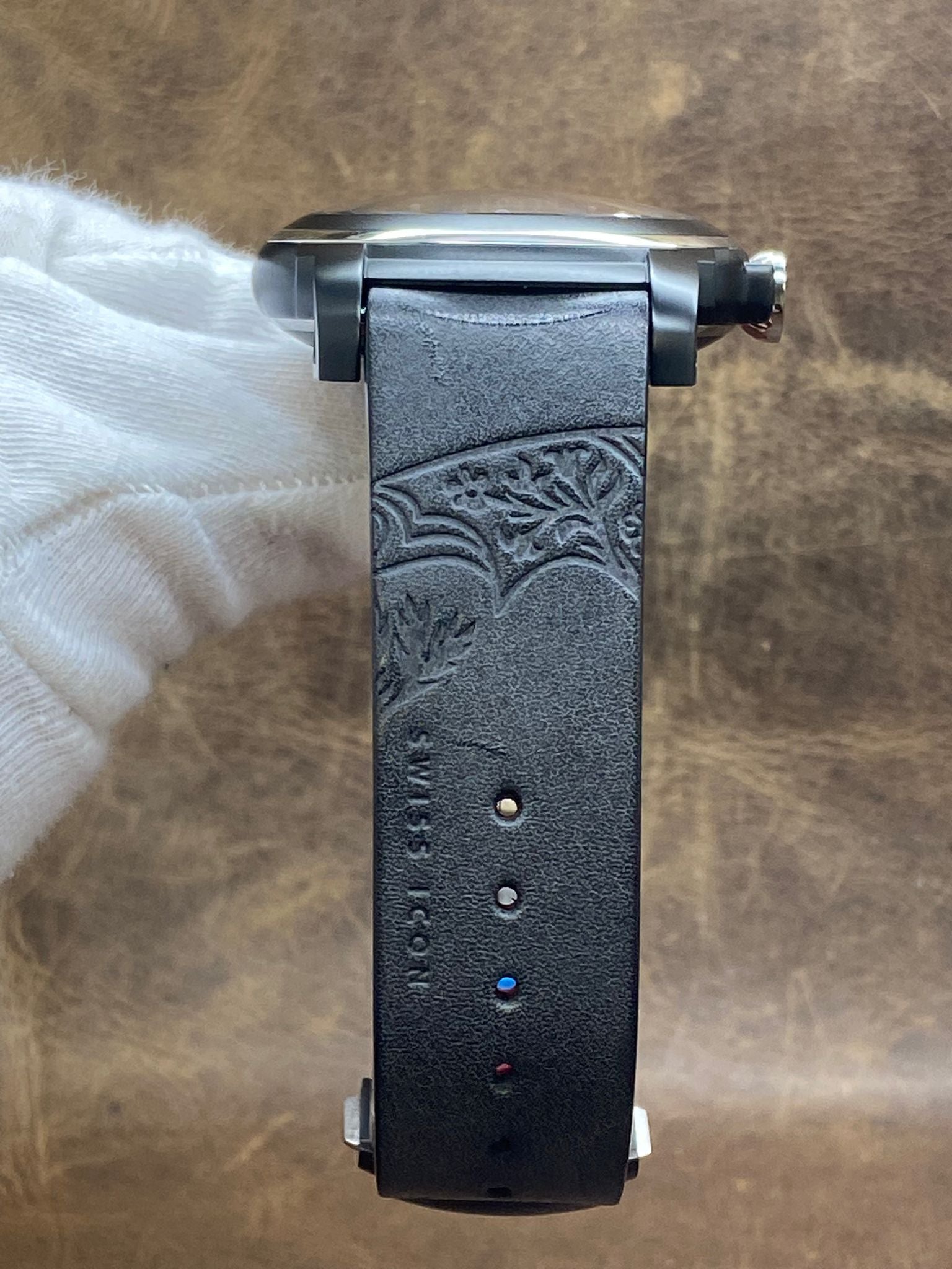 - Features Hours; minutes; seconds; date; DLC; stainless steel; leather
