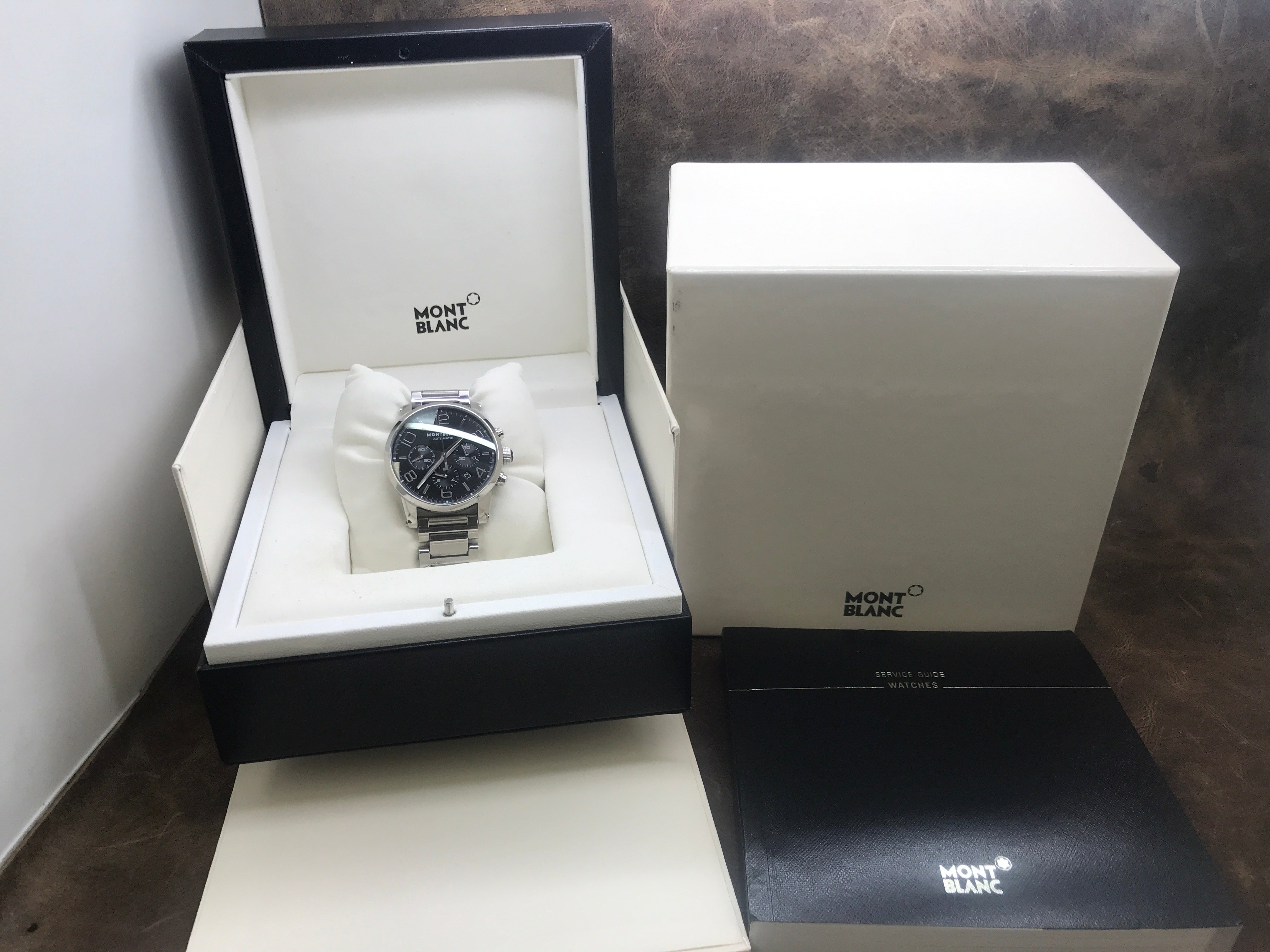 This pre-owned Montblanc TimeWalker Chronograph 7260 is in mint condition and comes with: original Montblanc double box & papers. Max wrist size: 7.25 in.