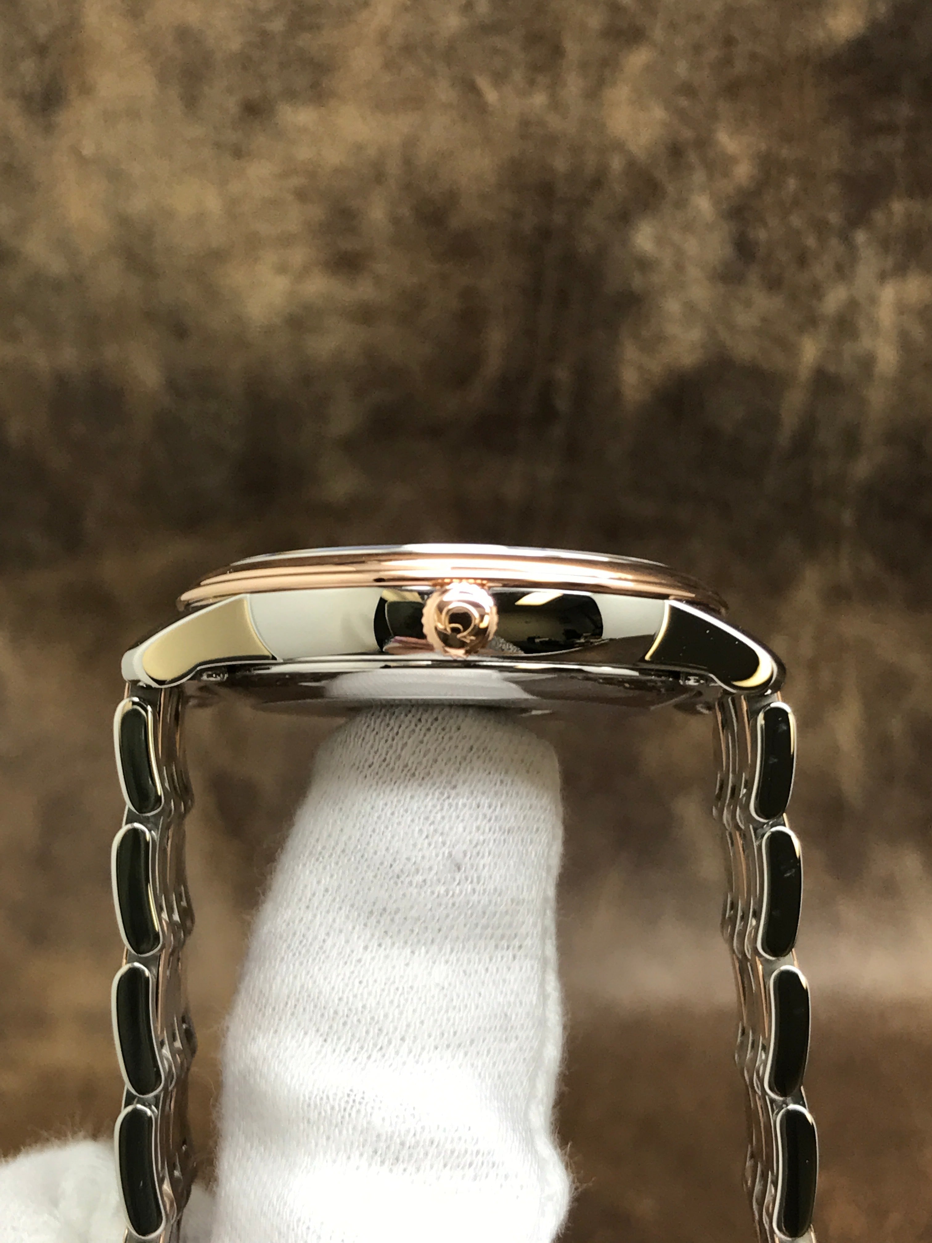 This pre-owned Omega De Ville Prestige 424.20.37.20.03.002 is in mint condition and comes with: original Omega double box, booklet, tag & matching pictograms and warranty card dated Sep 2022. Max wrist size: 7 in.