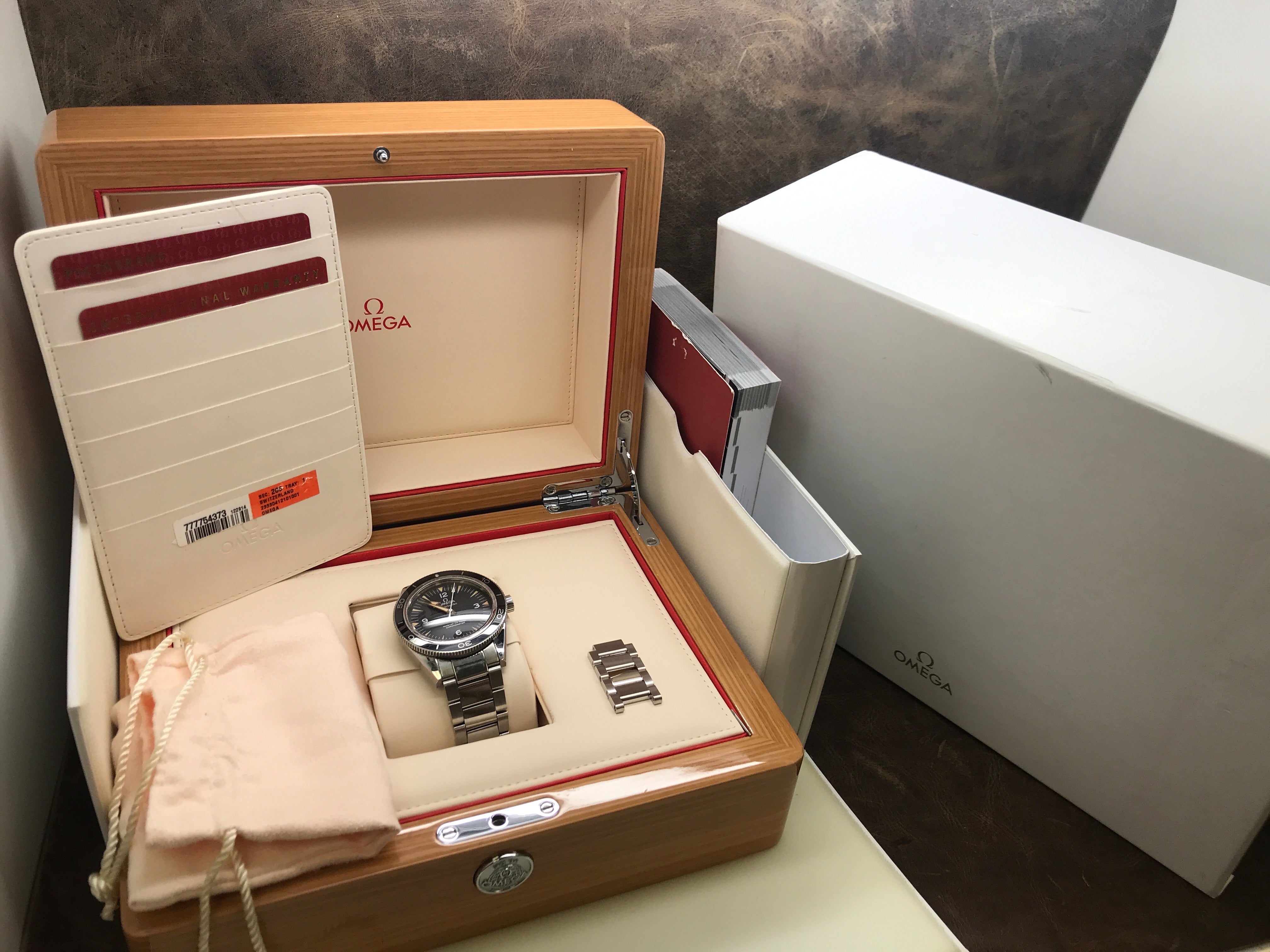 - original Omega double box, booklet, pictograms & matching warranty card dated 2019