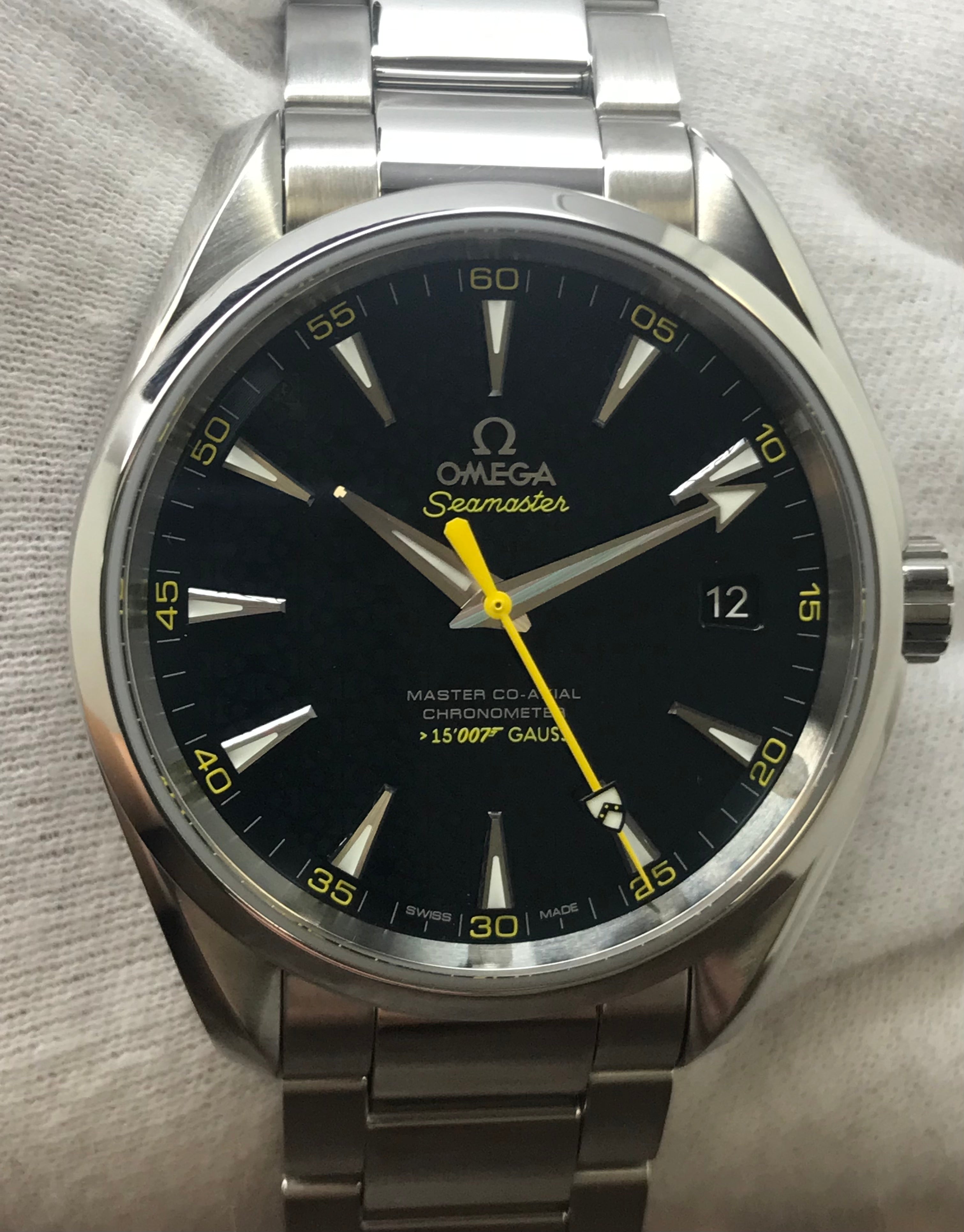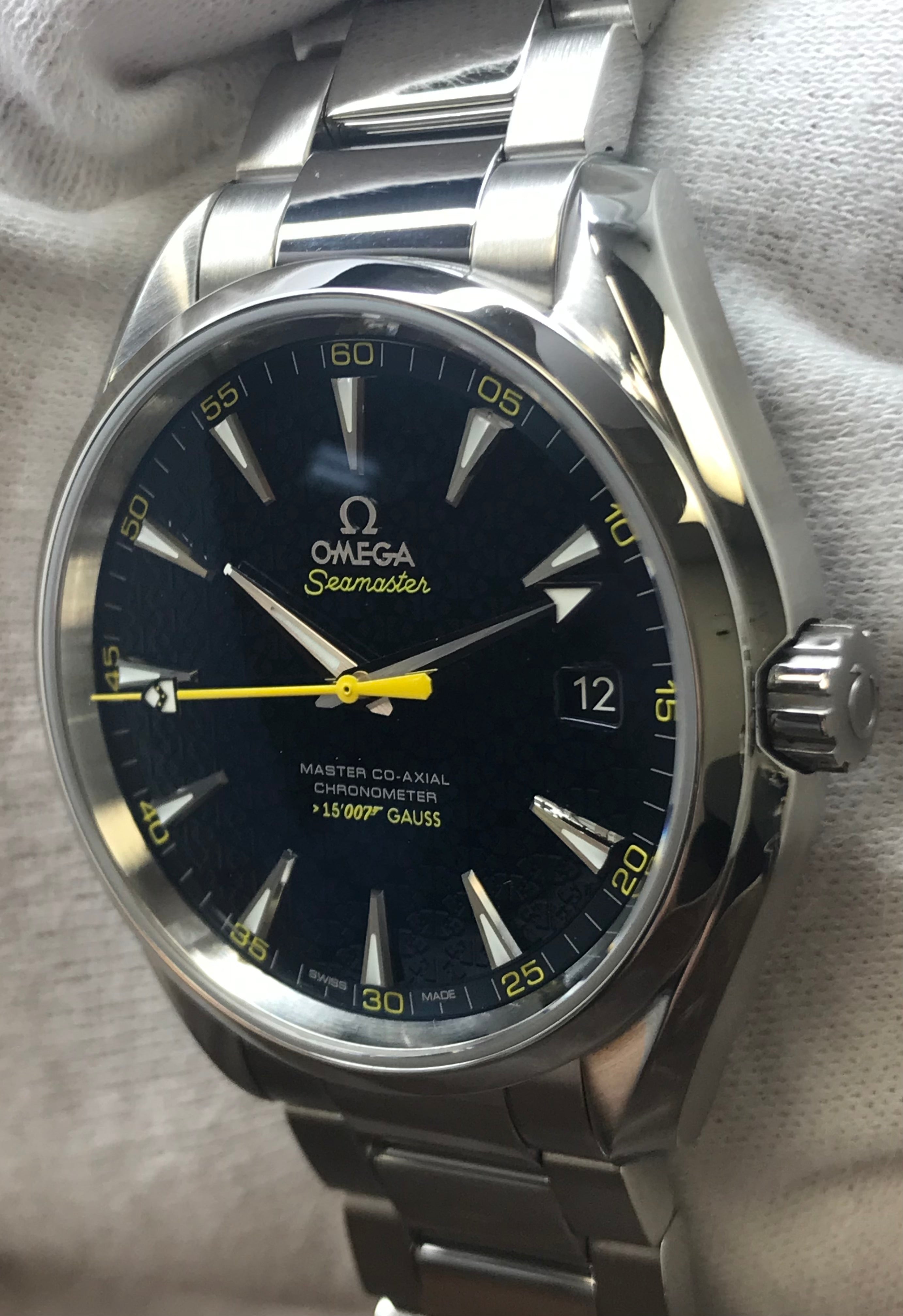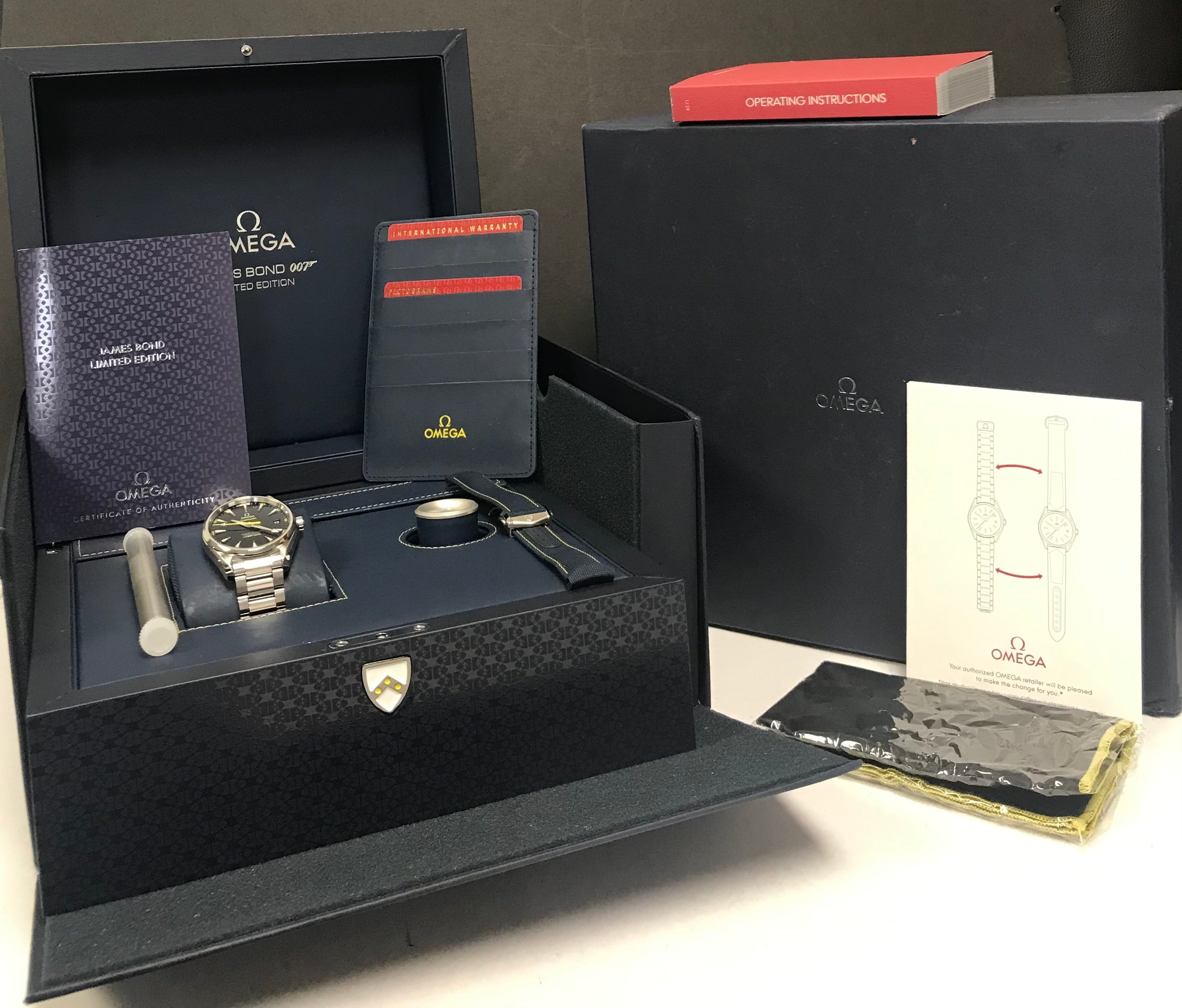 This pre-owned Omega Seamaster Aqua Terra James Bond Spectre Full B&P 231.10.42.21.03.004 is in mint condition and comes with: original Omega double box, booklets, tool, loupe, extra strap & matching pictograms and warranty card dated 2017. Max wrist size: 7.5 in.