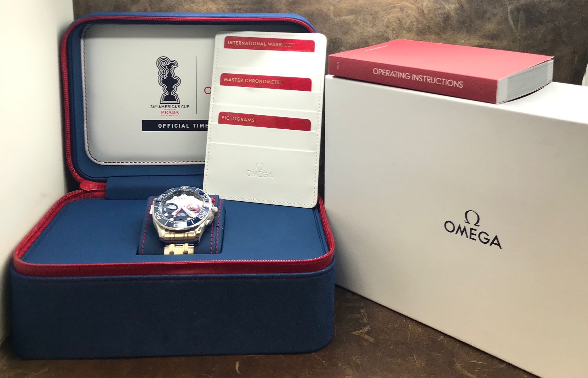 - original Omega double box, booklet & matching pictograms, chronometer and warranty card dated Aug 2022
