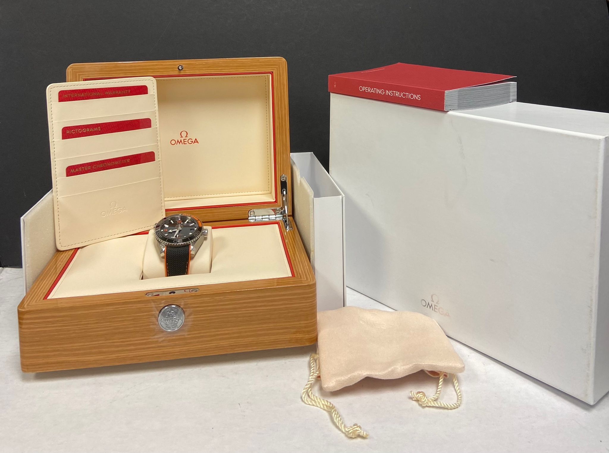 - original Omega double box, booklet & matching pictograms, chronometer and warranty card dated 2018