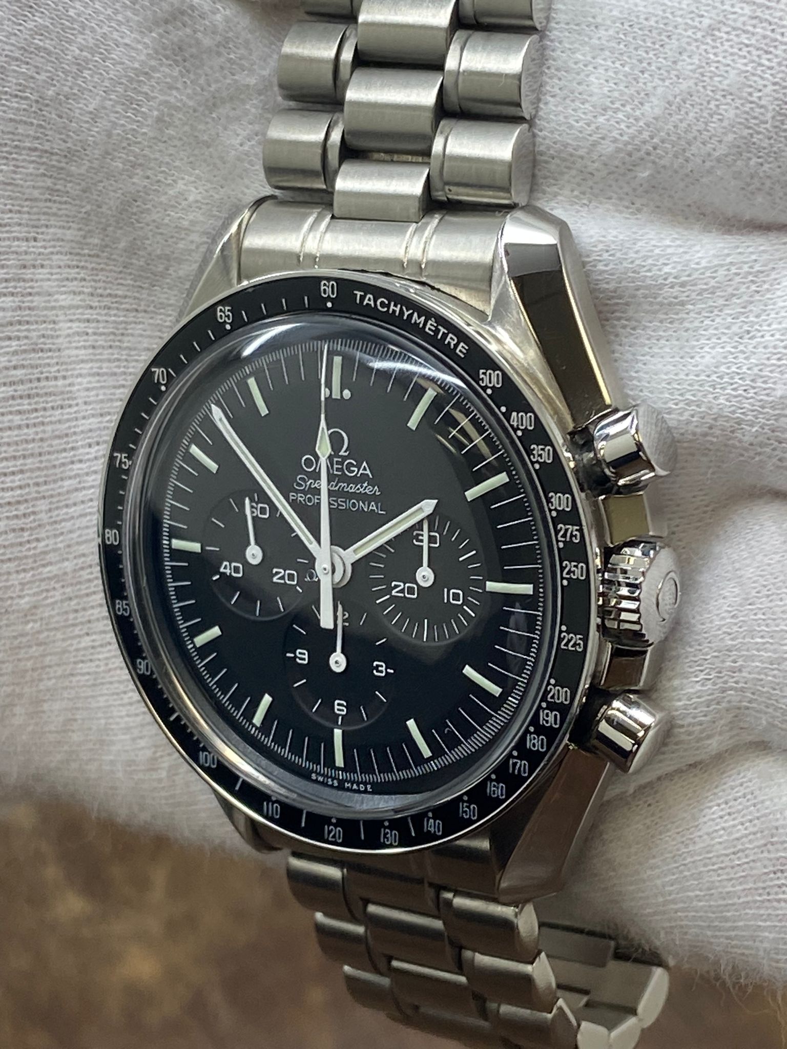 This pre-owned Omega Speedmaster Professional Cal. 861 Moonwatch 145.022 is in excellent condition and comes with: original Omega double box only. Max wrist size: 7.75 in.
