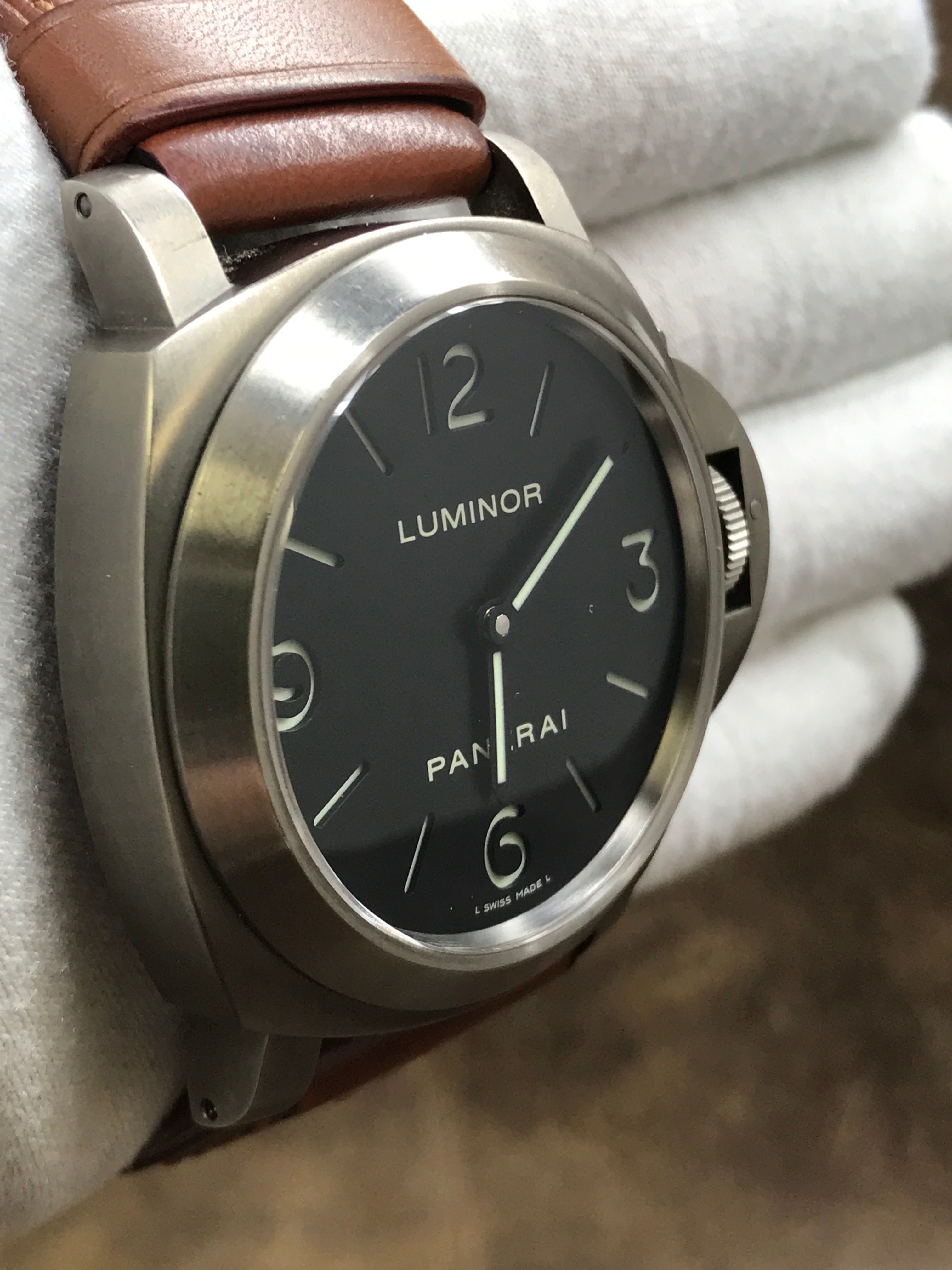This pre-owned Panerai Luminor Base Logo PAM00176 is in excellent condition and comes with: original Panerai box, tool, 2 extra straps, booklet, tag & matching warranty papers. Max wrist size: 7.5 in.