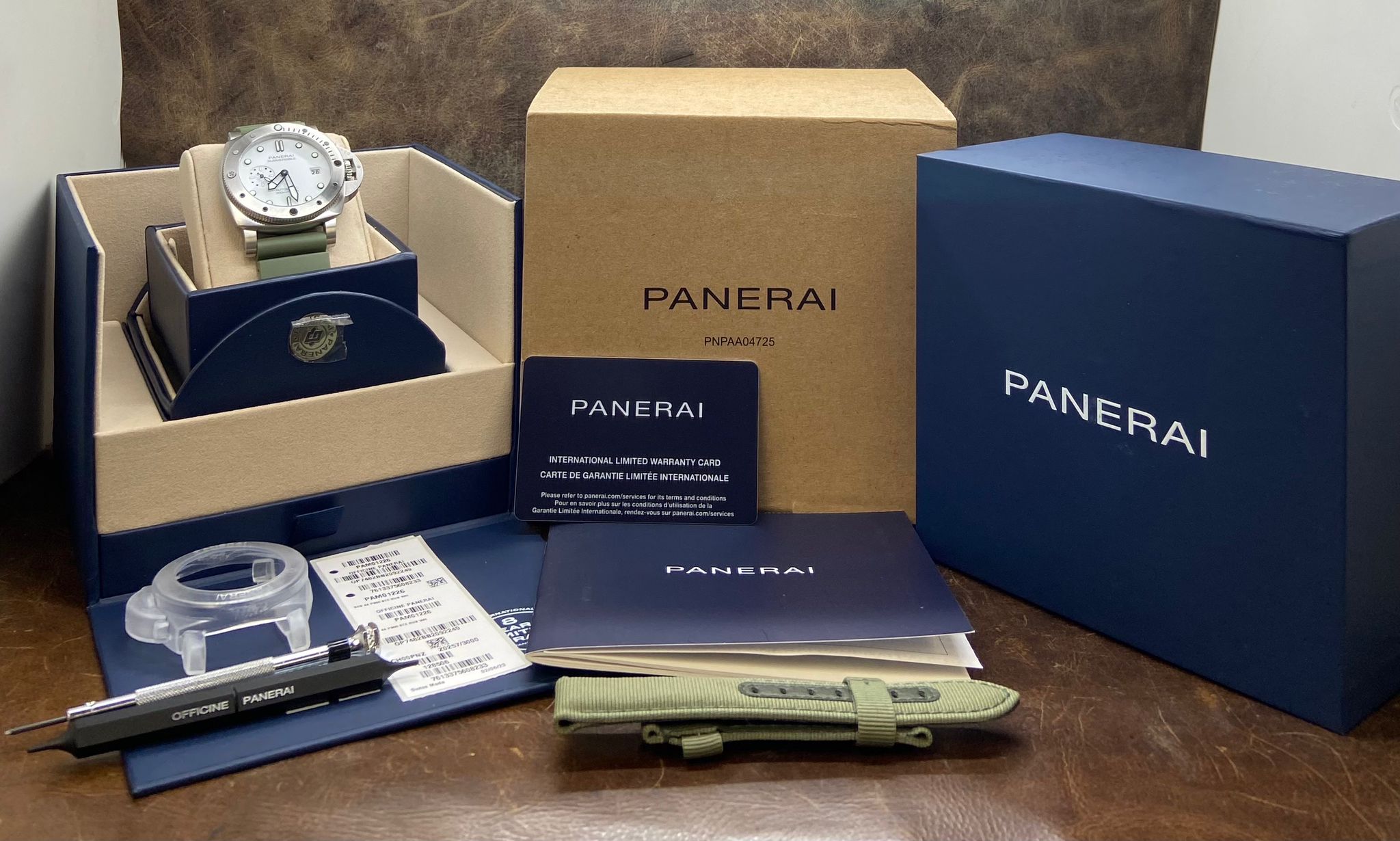 - original Panerai double box, booklets, tools, extra strap and matching warranty card dated Jan 2024