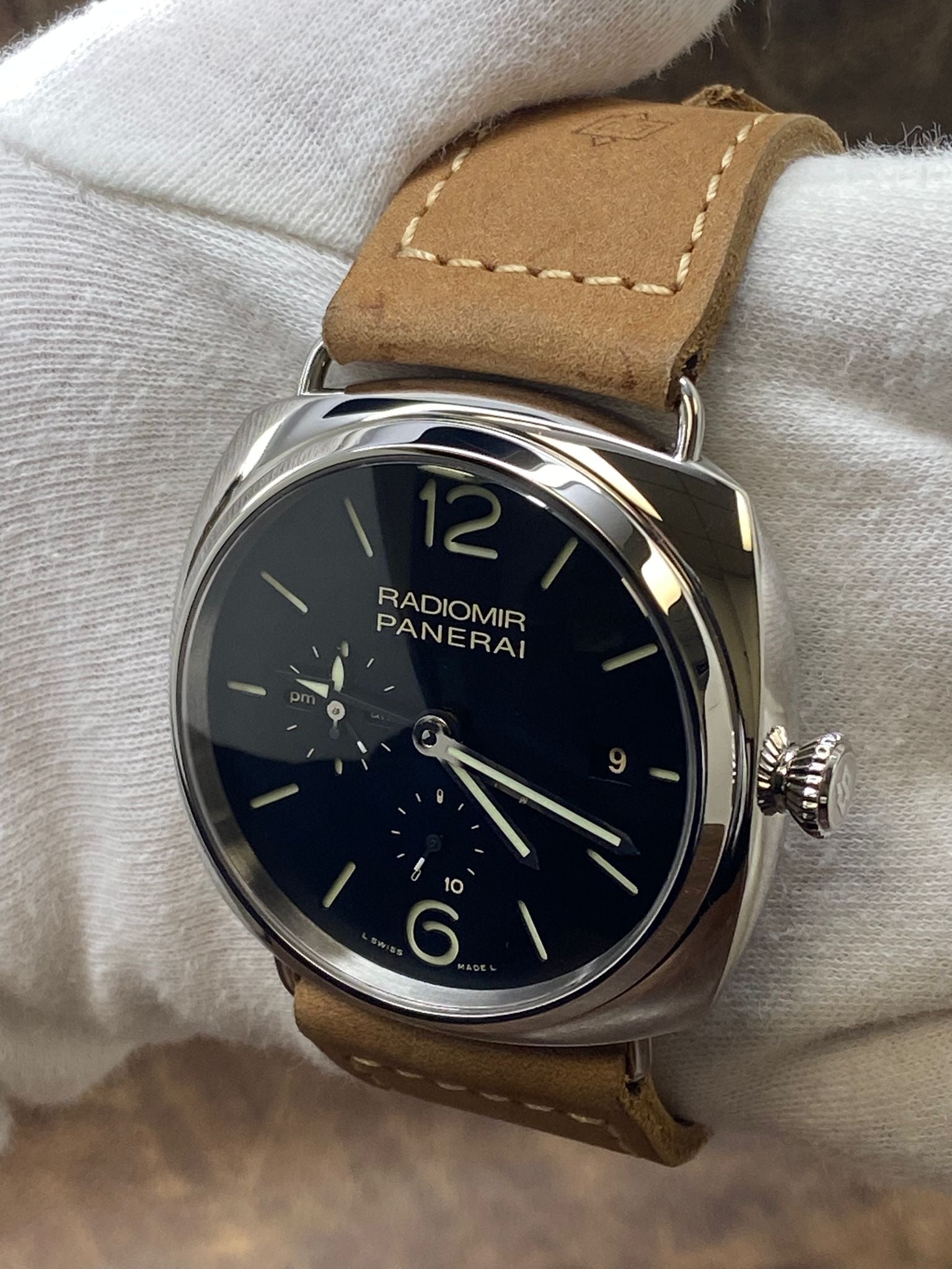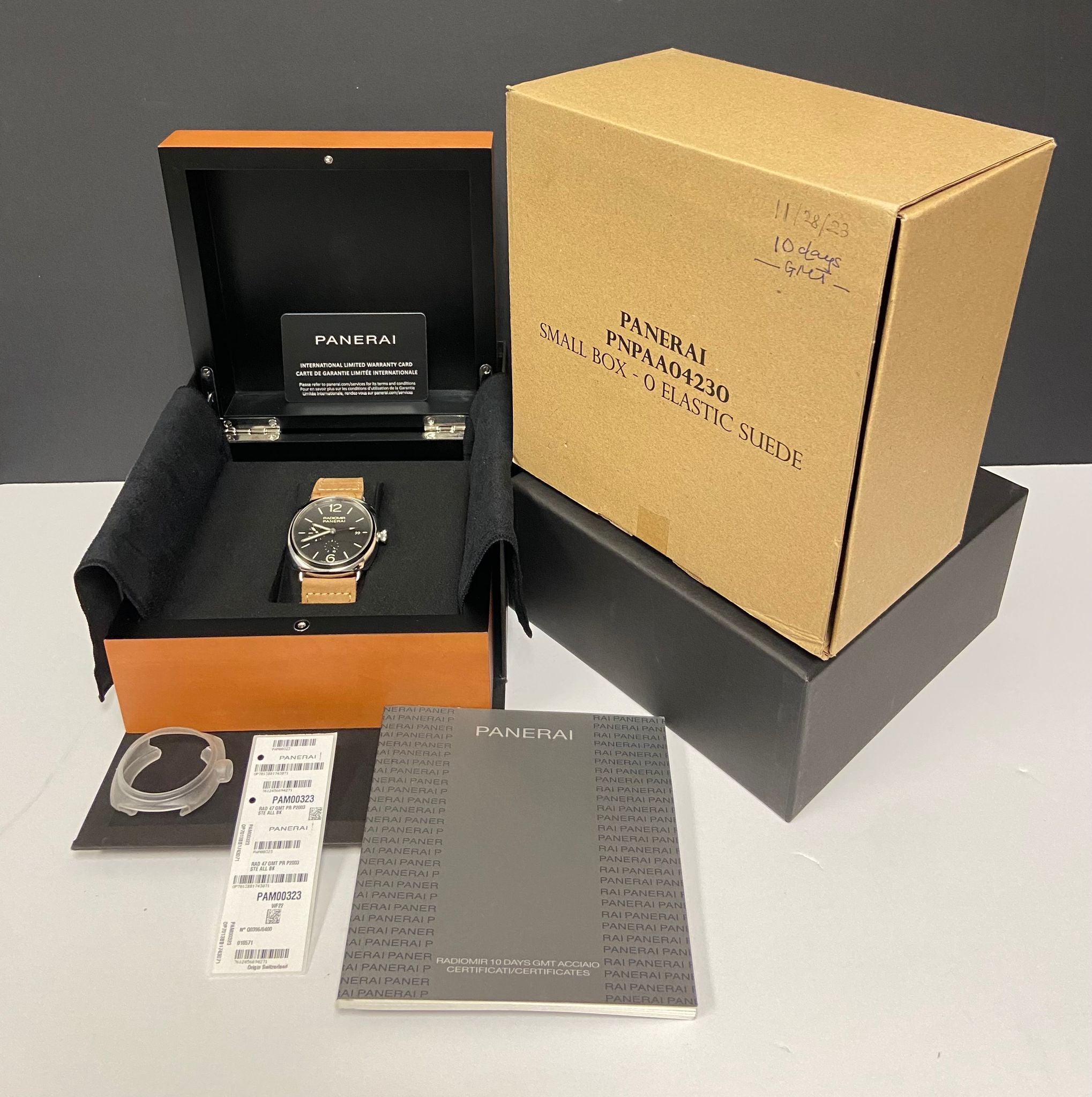 This pre-owned Panerai Radiomir 10 Days GMT PAM00323 is in excellent condition and comes with: original Panerai double box, booklet, stickers and matching warranty card. The minute hand has a few noticeable scratches on it - please see pictures. Max wrist size: 8.25 in.
