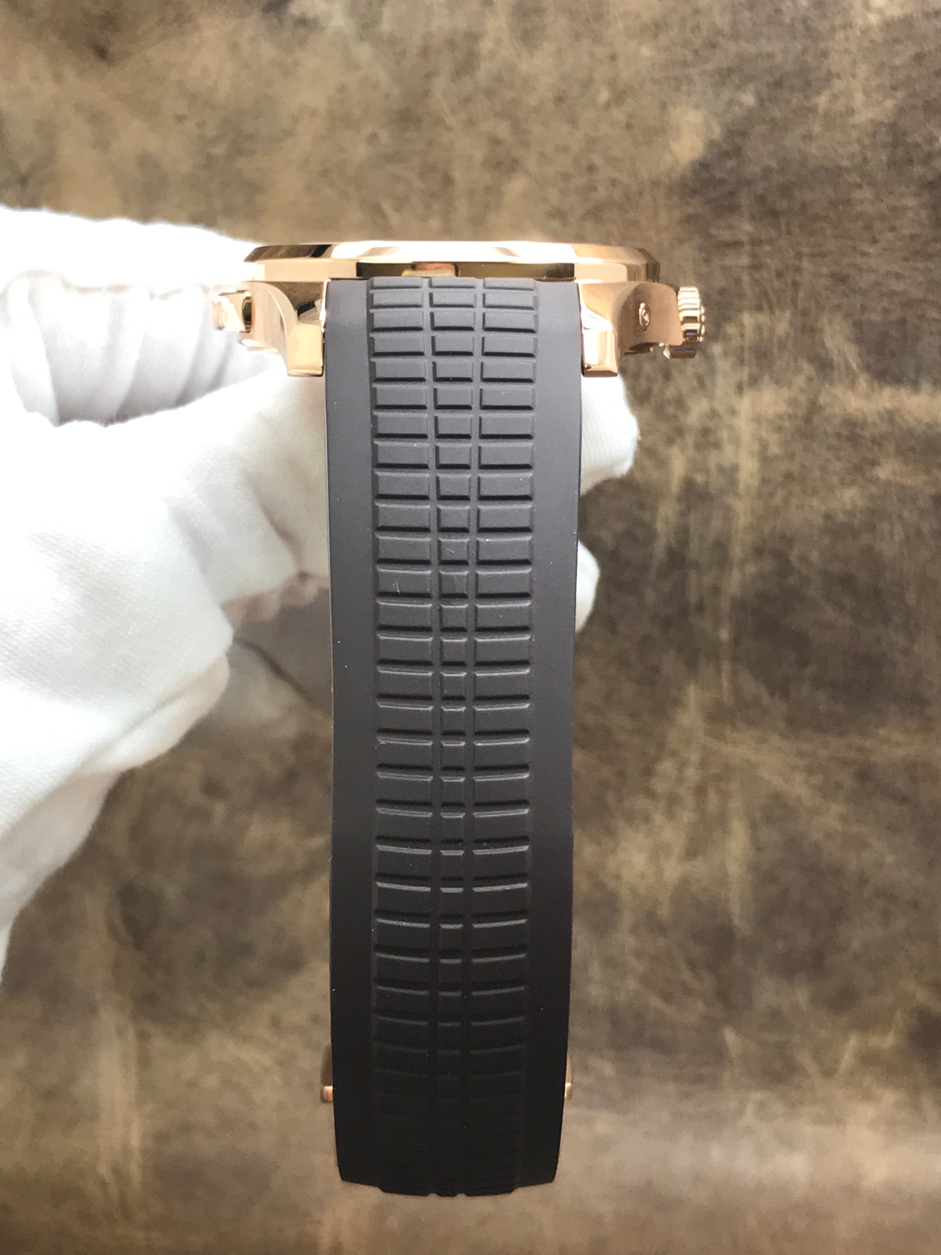 - Features Date; Second Time Zone; Hour; Minute; Second; gold; strap; rubber