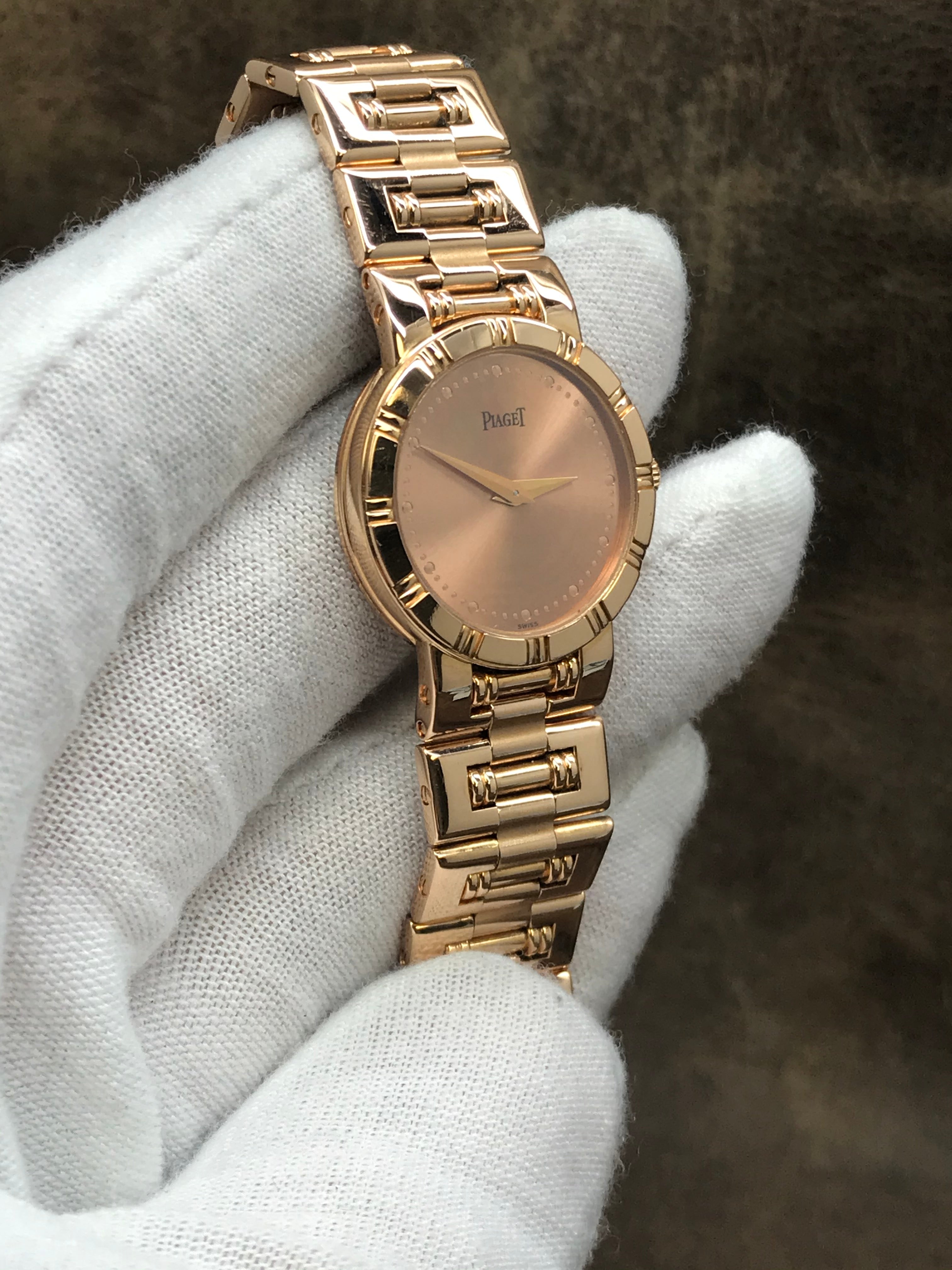 This pre-owned Piaget Dancer 18K Gold 80563/K81 is in excellent condition and comes with: NO box or papers. Max wrist size: 6 in.