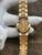 18kt yellow gold case with a 18k yellow gold bracelet. Fixed 18k yellow gold bezel. Champagne dial with yellow gold hands and index hour markers. Dial type: analog. Quartz movement with about of power reserve. Scratch resistant sapphire crystal. Push/pull crown. Solid case back. Case size: 23 mm. Case thickness: 4 mm. Round case shape. Band width: 14 mm. Folding clip clasp. Water resistant at 30m/100ft. Functions: hours, minutes. Piaget Dancer 18K Gold 80563/K81 Champagne Dial Quartz Women's Watch.